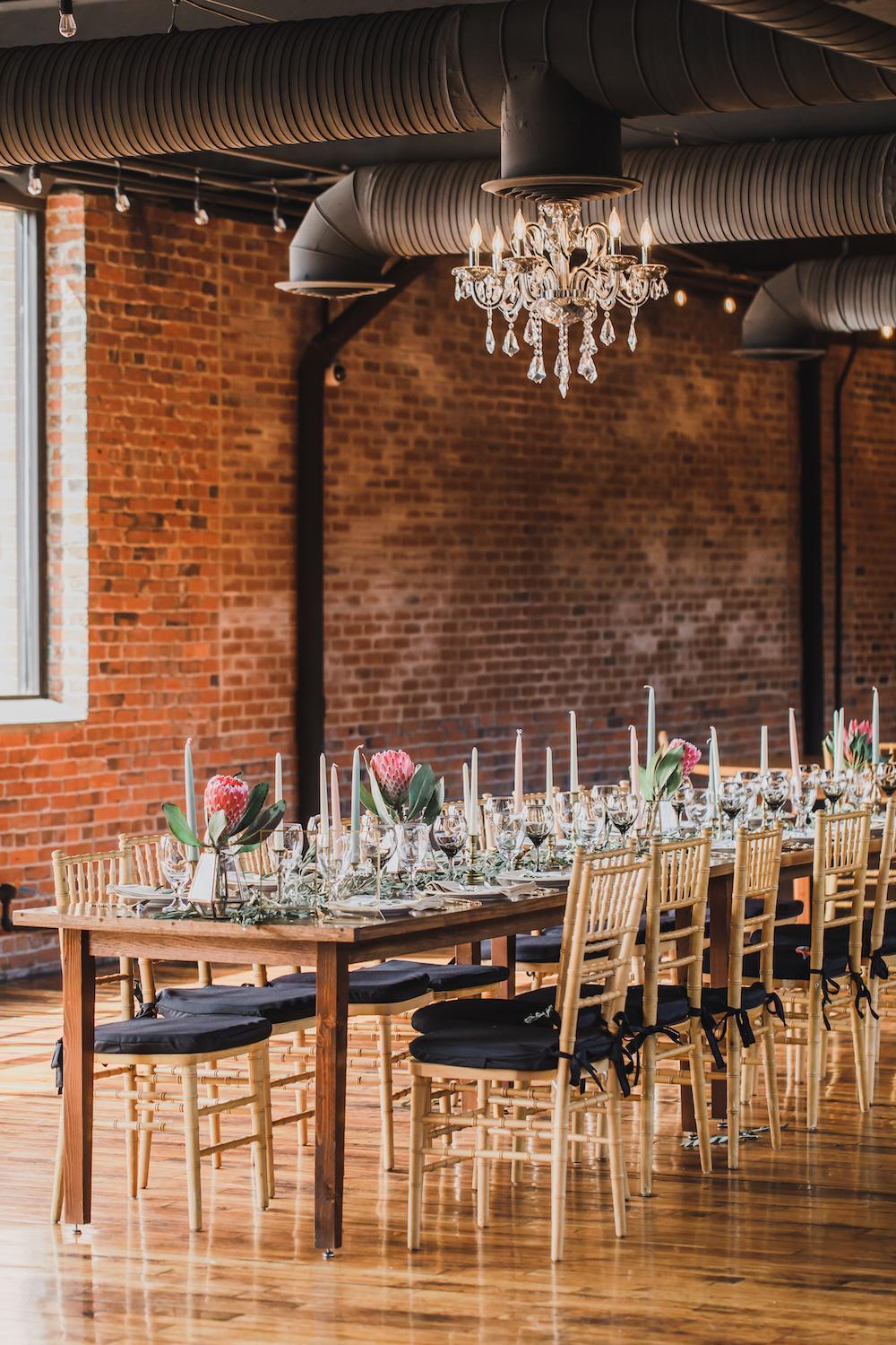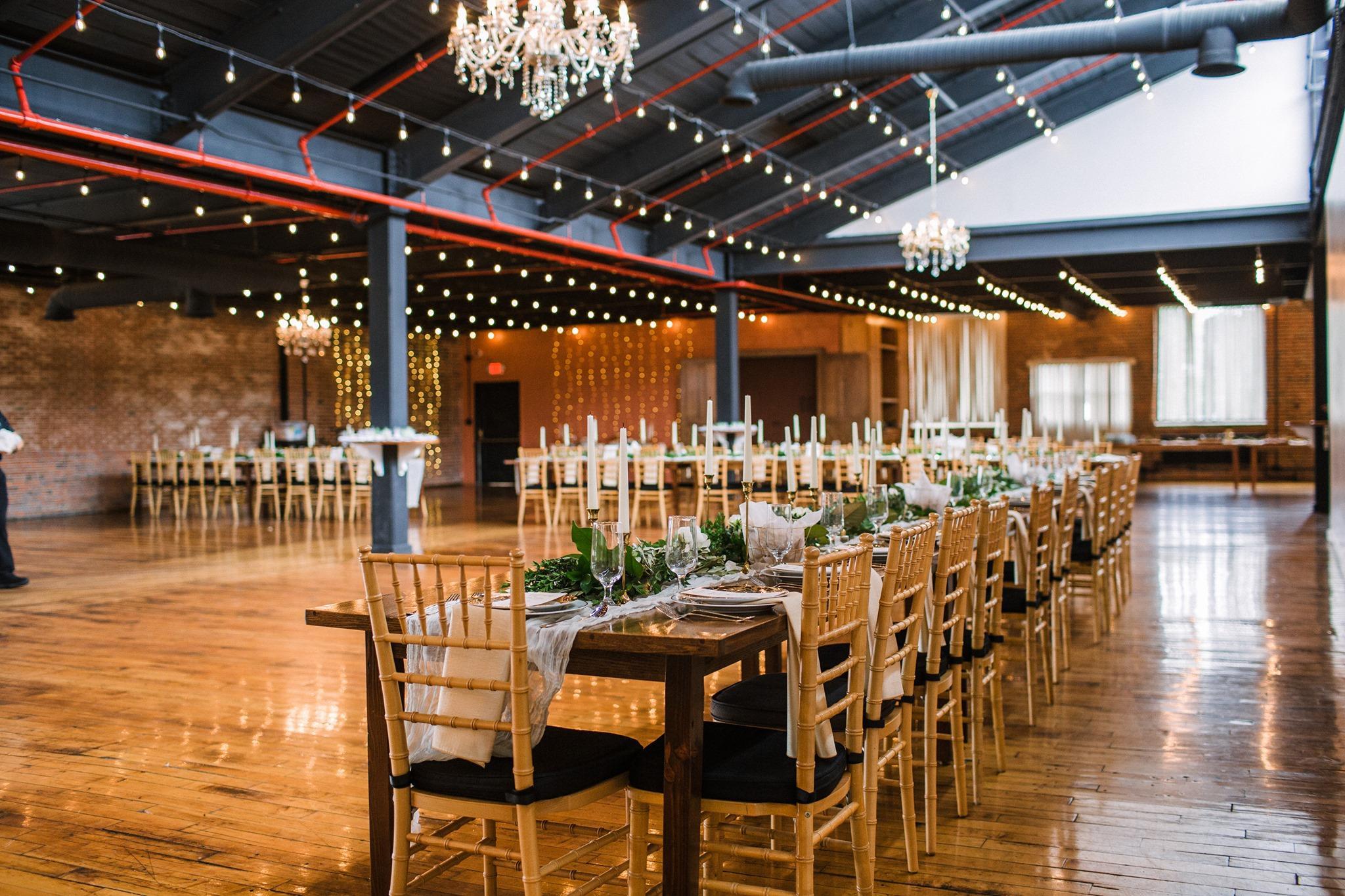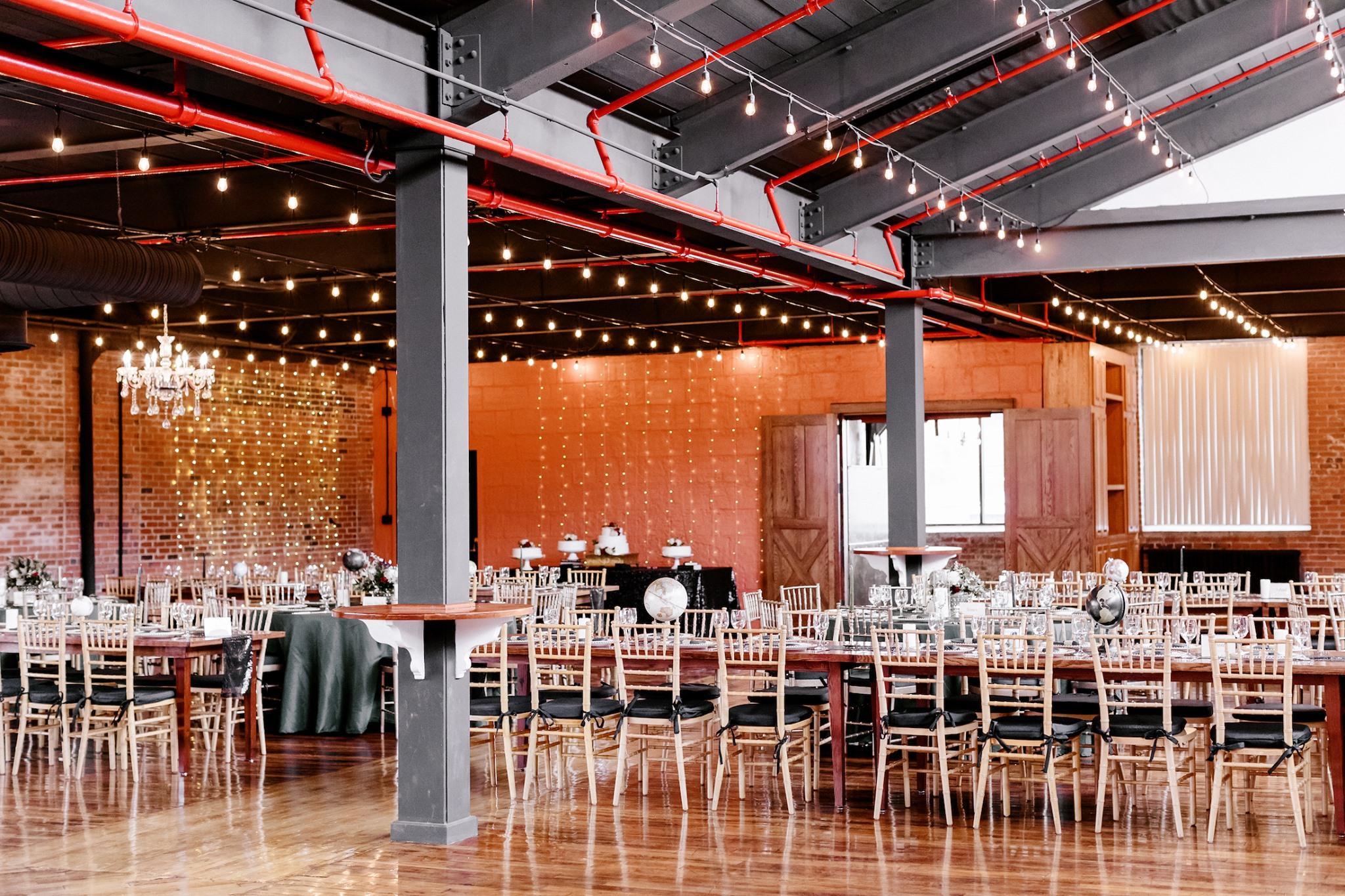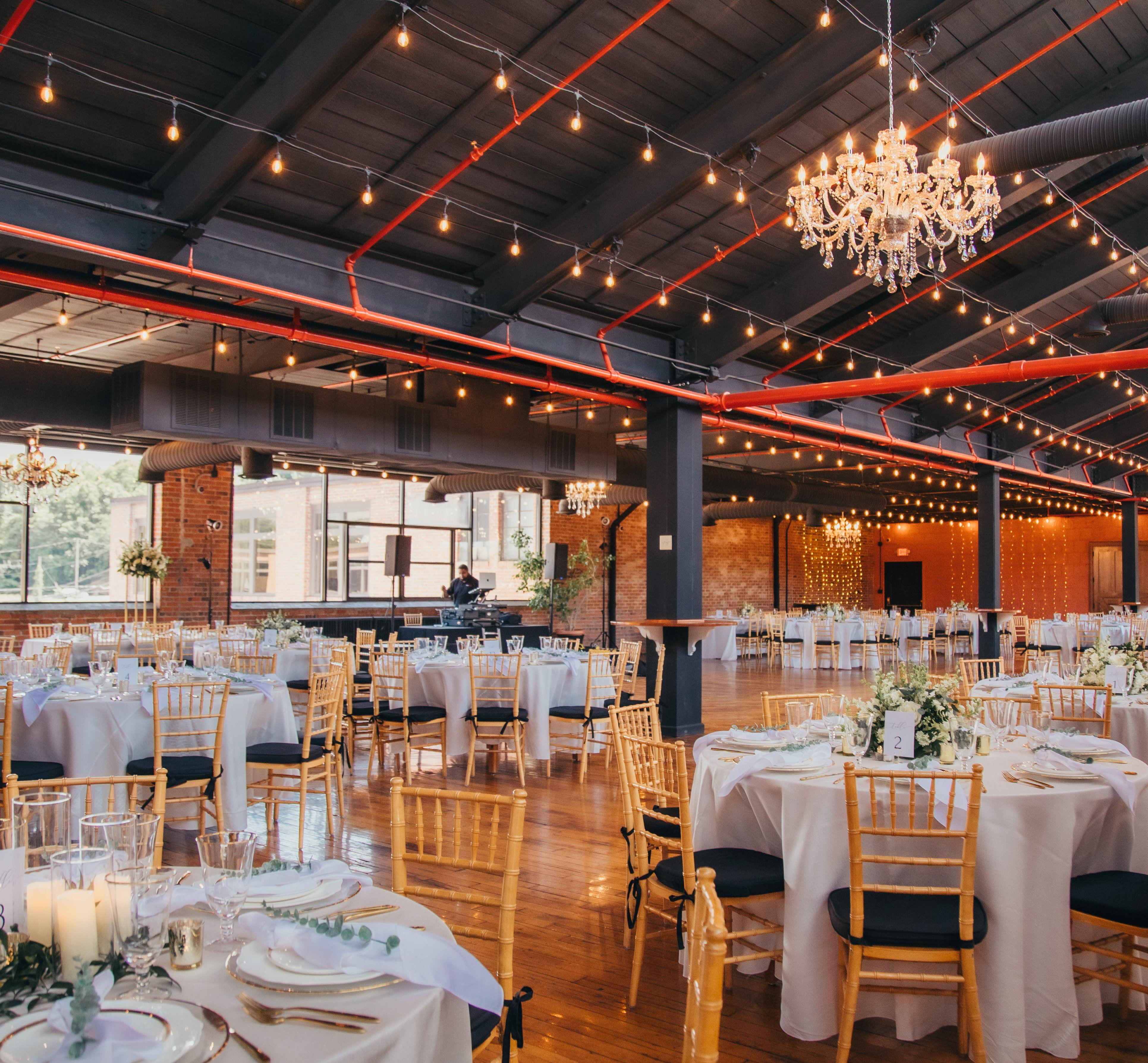 This space features over 7,000 square feet of event space in a historic silk mill. With string lights, chic black ceilings, exposed brick, and original hardwood floors dating back to 1929, yours guests are going to fall in love with this space. We have done events from 30 guests to 500 guests in this beautiful space.