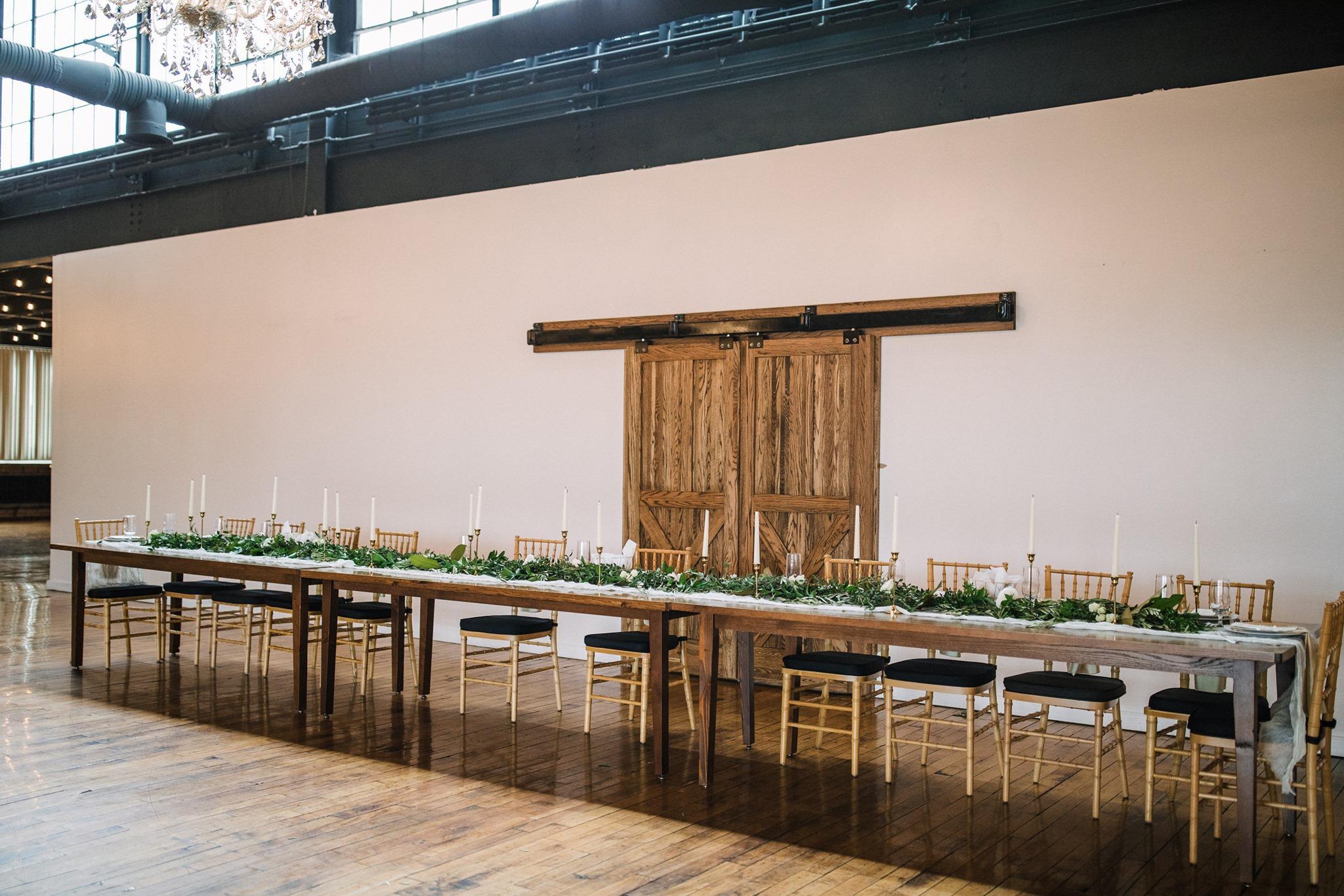 Handmade wooden farm tables Handmade wooden round tables in 3 sizes Handmade wooden cocktail tables Chiavari Chairs 2 getting ready rooms 2 built in bars Plenty of restrooms Dimmable chandeliers and adjustable lighting Historic freight elevators for surprise reception entrances!