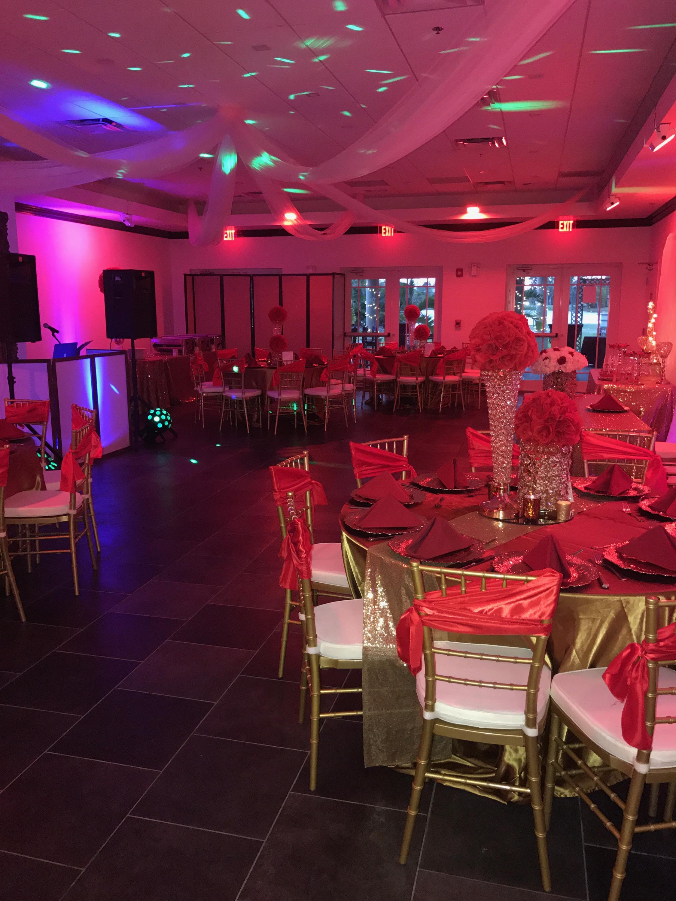 Room-enhancing lights to match your decor, color-matching table linens and napkins, please see our all-inclusive packages for more information.
