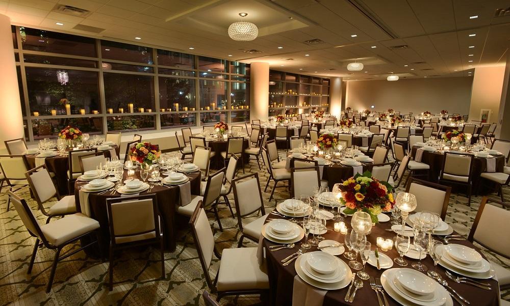 This space features floor to ceiling windows with LED candlelight over looking Downtown and the Old Post Office