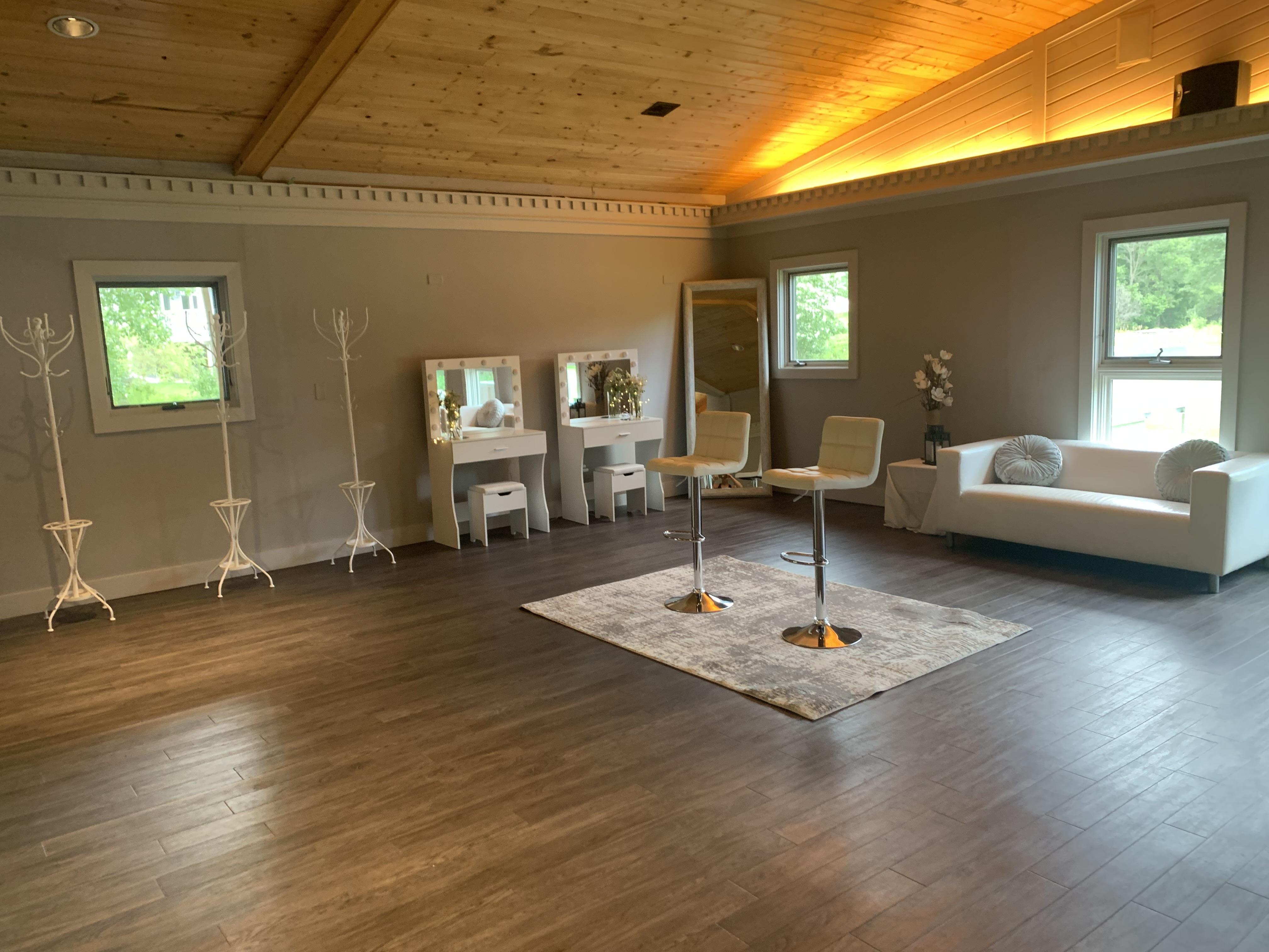 This space has enough room for your entire bridal party to get ready. Hair, makeup, cocktails and breakfast/lunch all in one area.