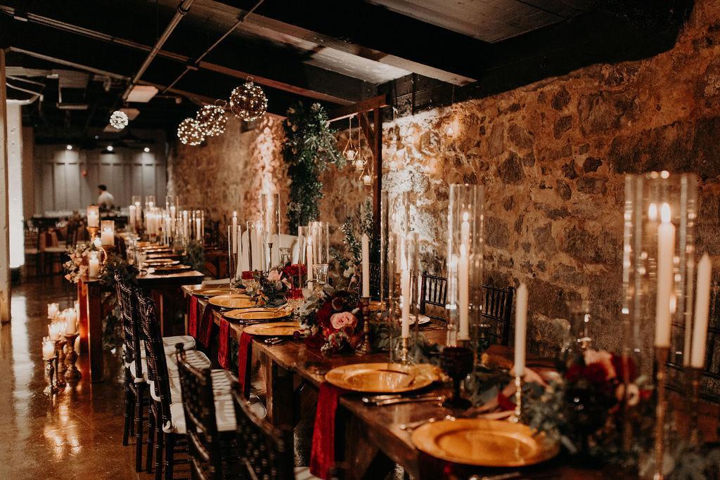 The largest single space in the venue, this main room is perfect for an indoor ceremony, as well as reception dining and dancing. With stunning stone walls, accent barn doors, and various chandelier and bistro lighting, this space offers both enough character to stand on it's own and enough space to allow for a personal touch!