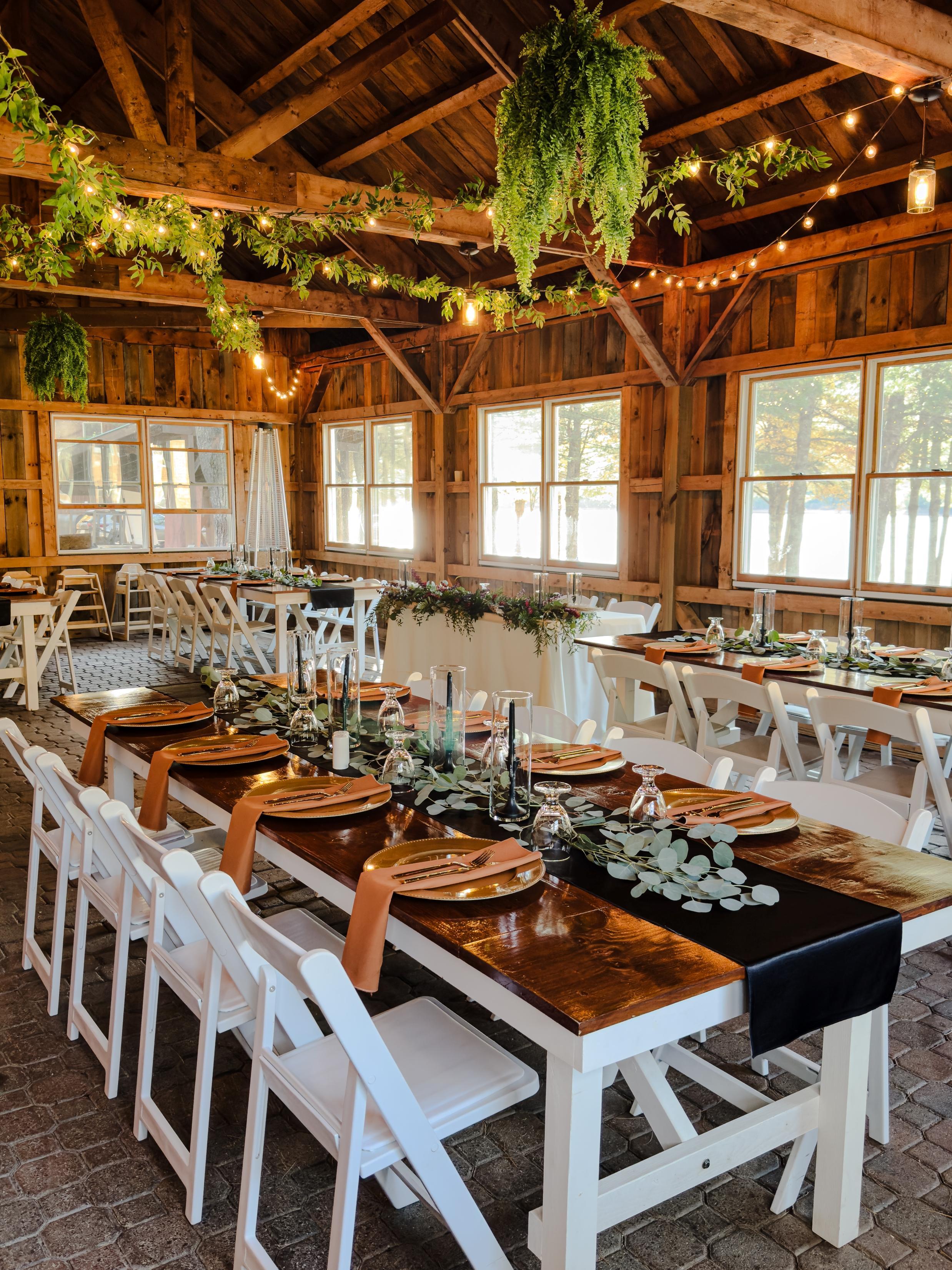 Perfect for smaller gatherings, our rustic barn exudes charm and warmth, creating an intimate atmosphere for cocktails, dinner, and dancing.