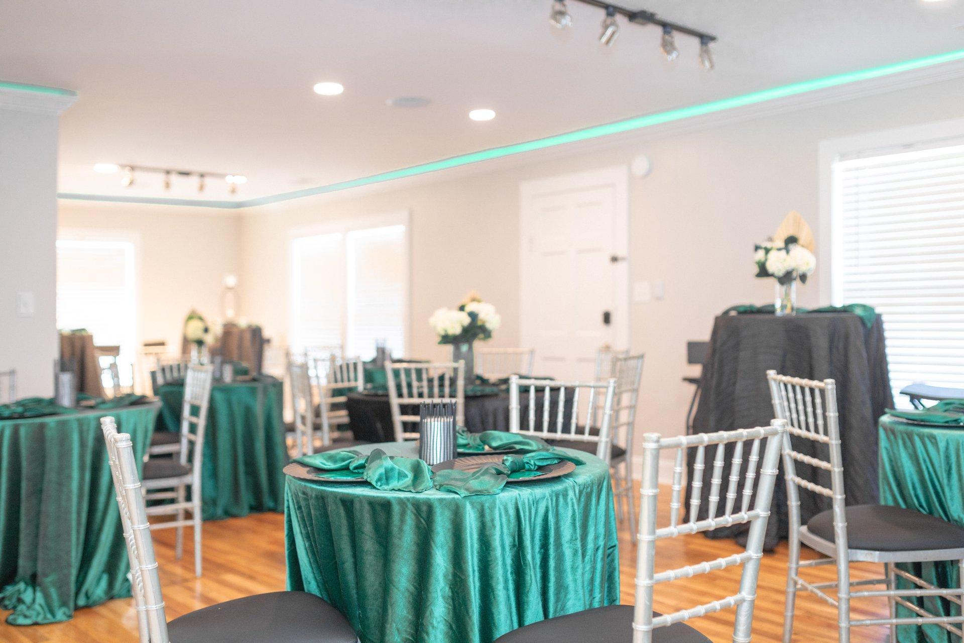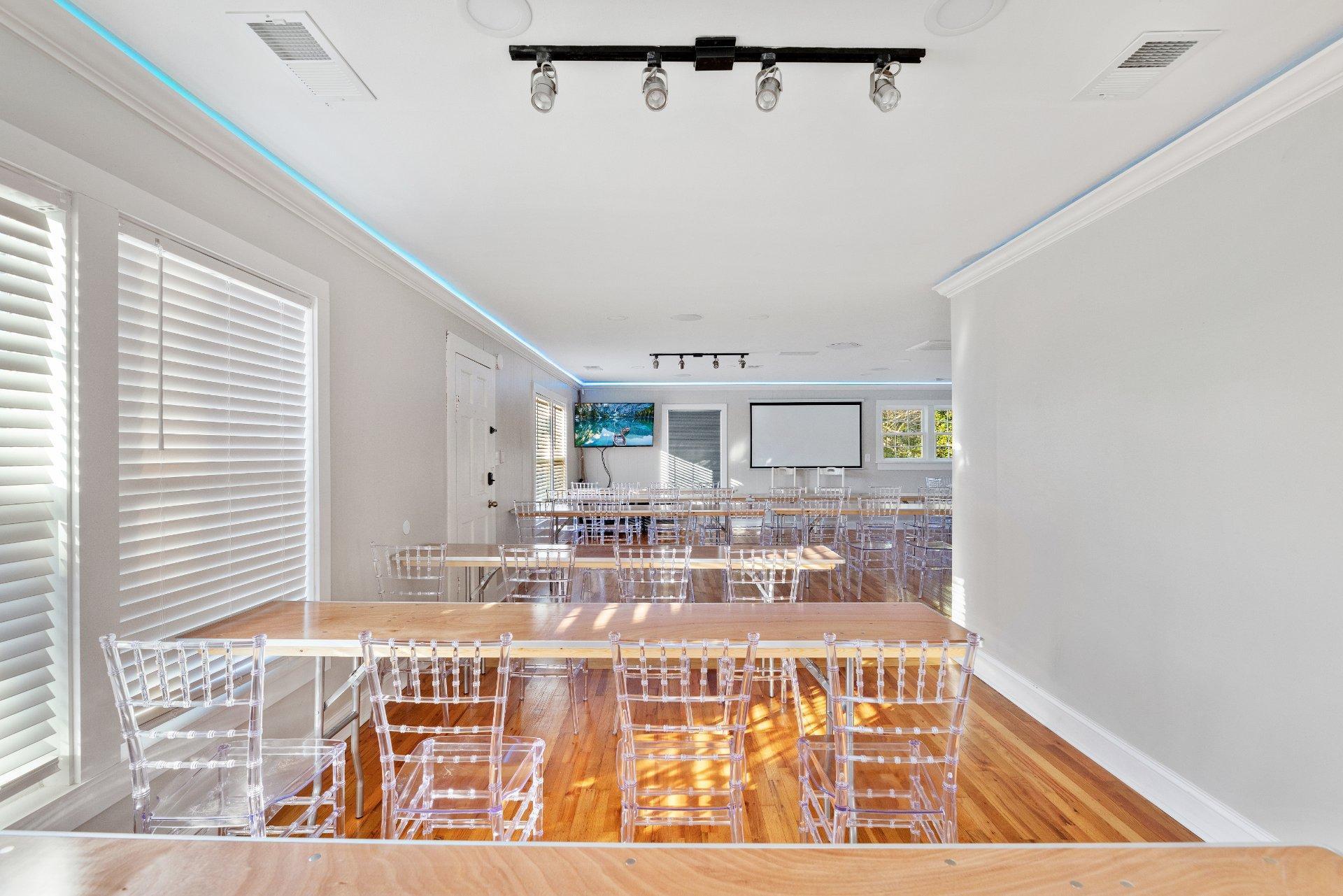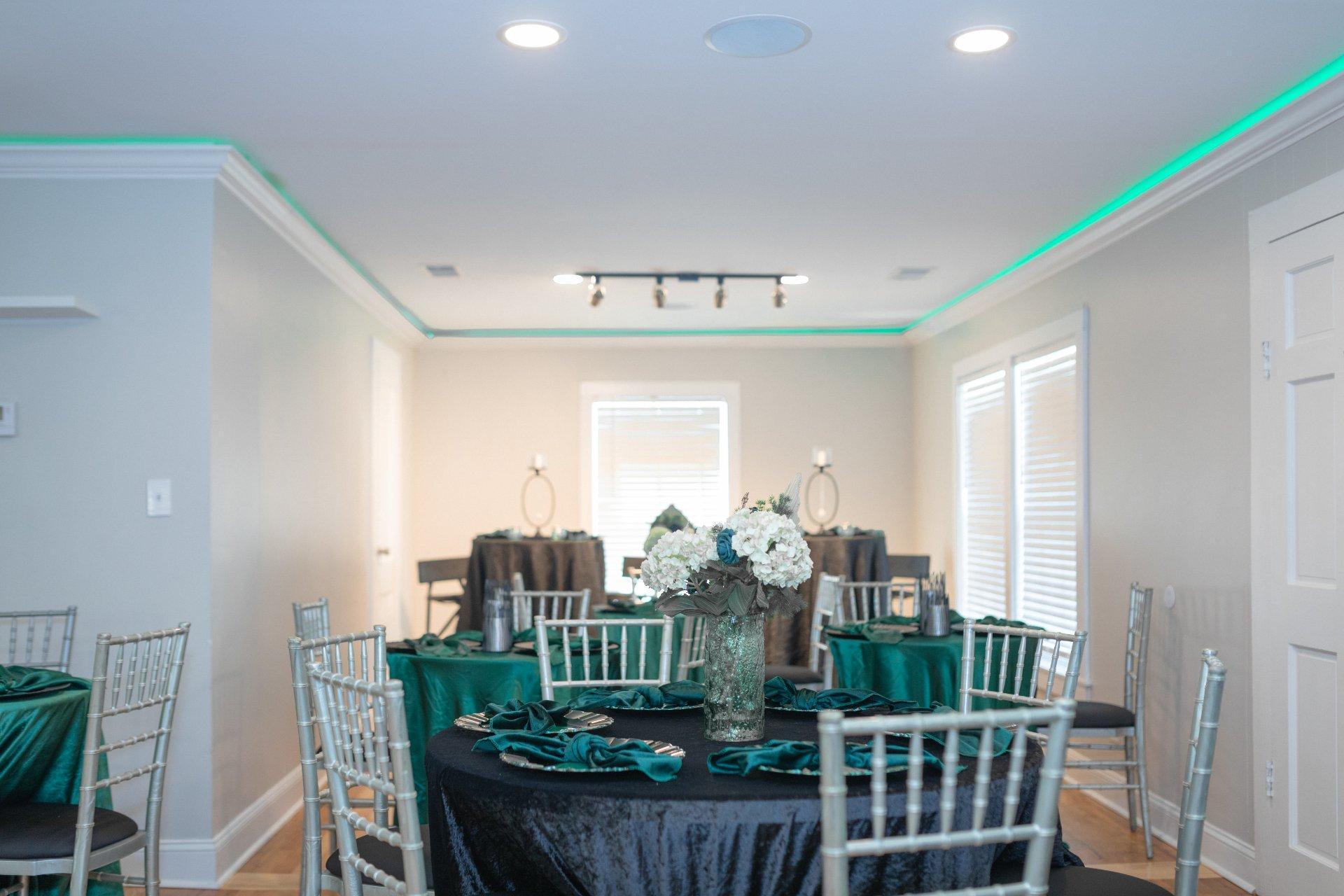 Step into elegance with our inviting indoor venue, featuring upscale clear Chiavari chairs and tables for up to 50 guests—a luxurious touch valued at $1,200, included at no extra cost. Elevate your celebration with a state-of-the-art sound system and captivating RGB LED ceiling lights, perfect for transforming the space into a dynamic dance floor. This flexible, chic venue is ideal for hosting bridal showers, rehearsal dinners, intimate weddings, and more. Make your special event memorable.