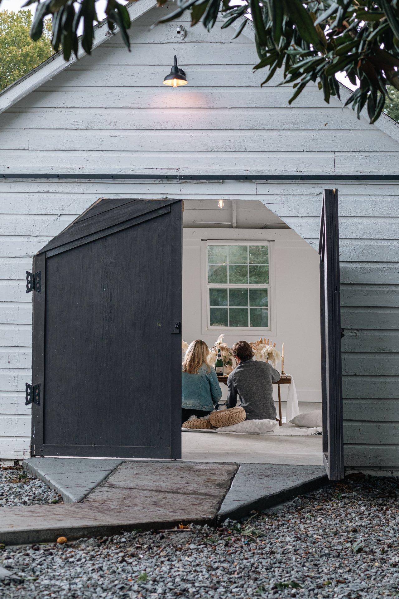 Open space with a relaxed feel that will surprise you with it's beautiful wide barn door, higher ceiling with cozy string lights. unheated area.