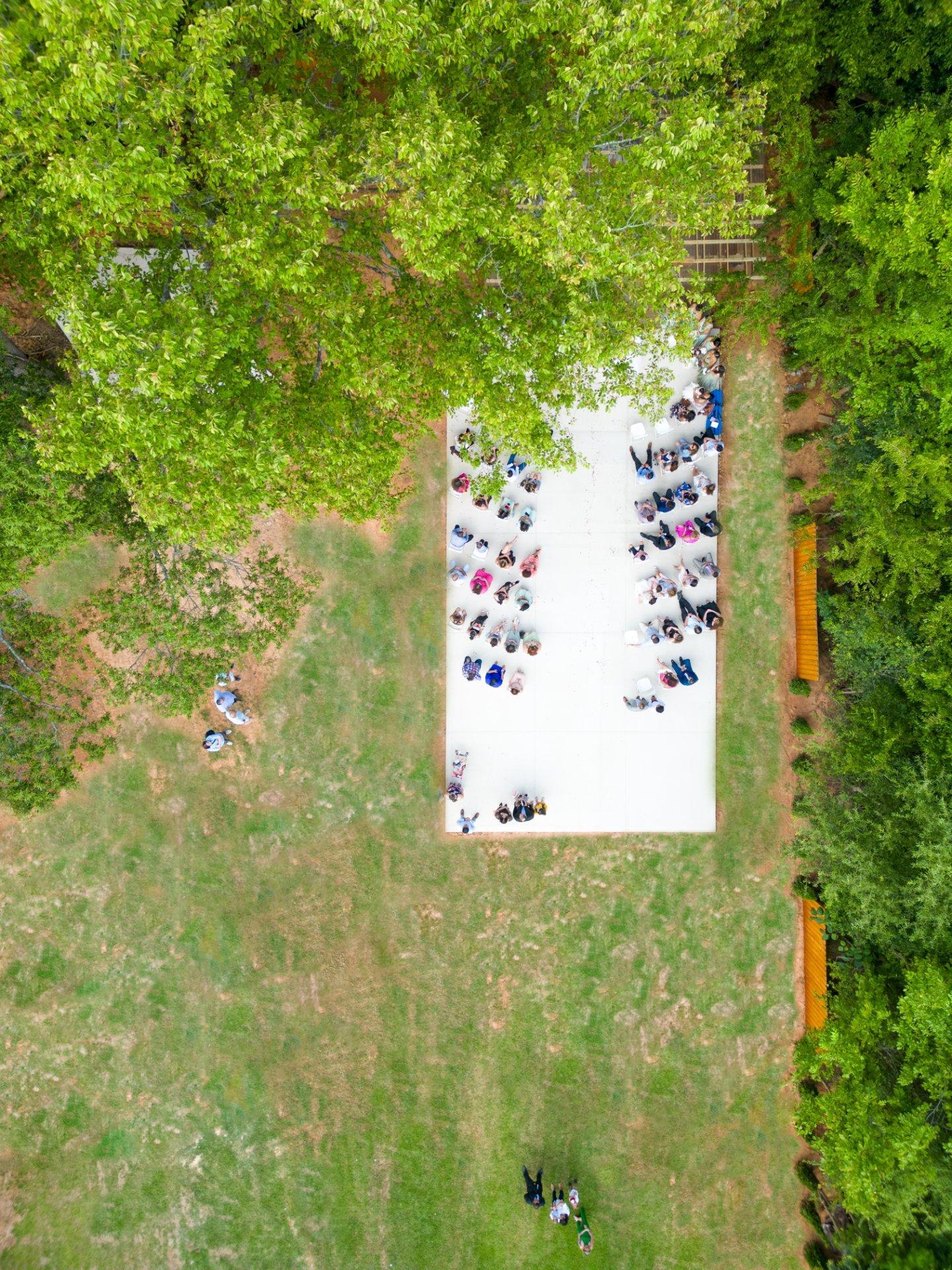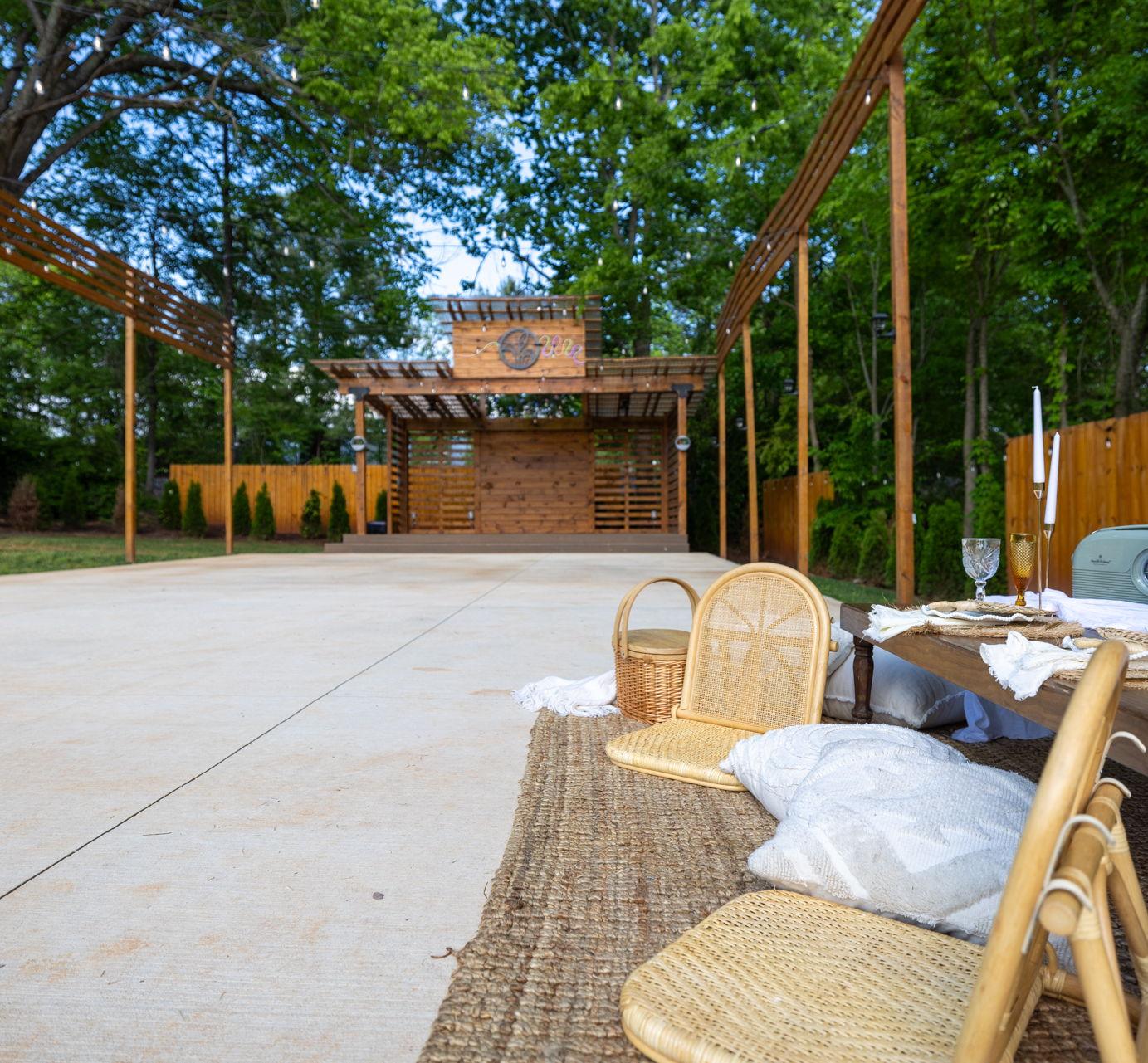 Stage with 30x50' concrete in front, Ceremony Area, -Open Green yard space -Private and wooded