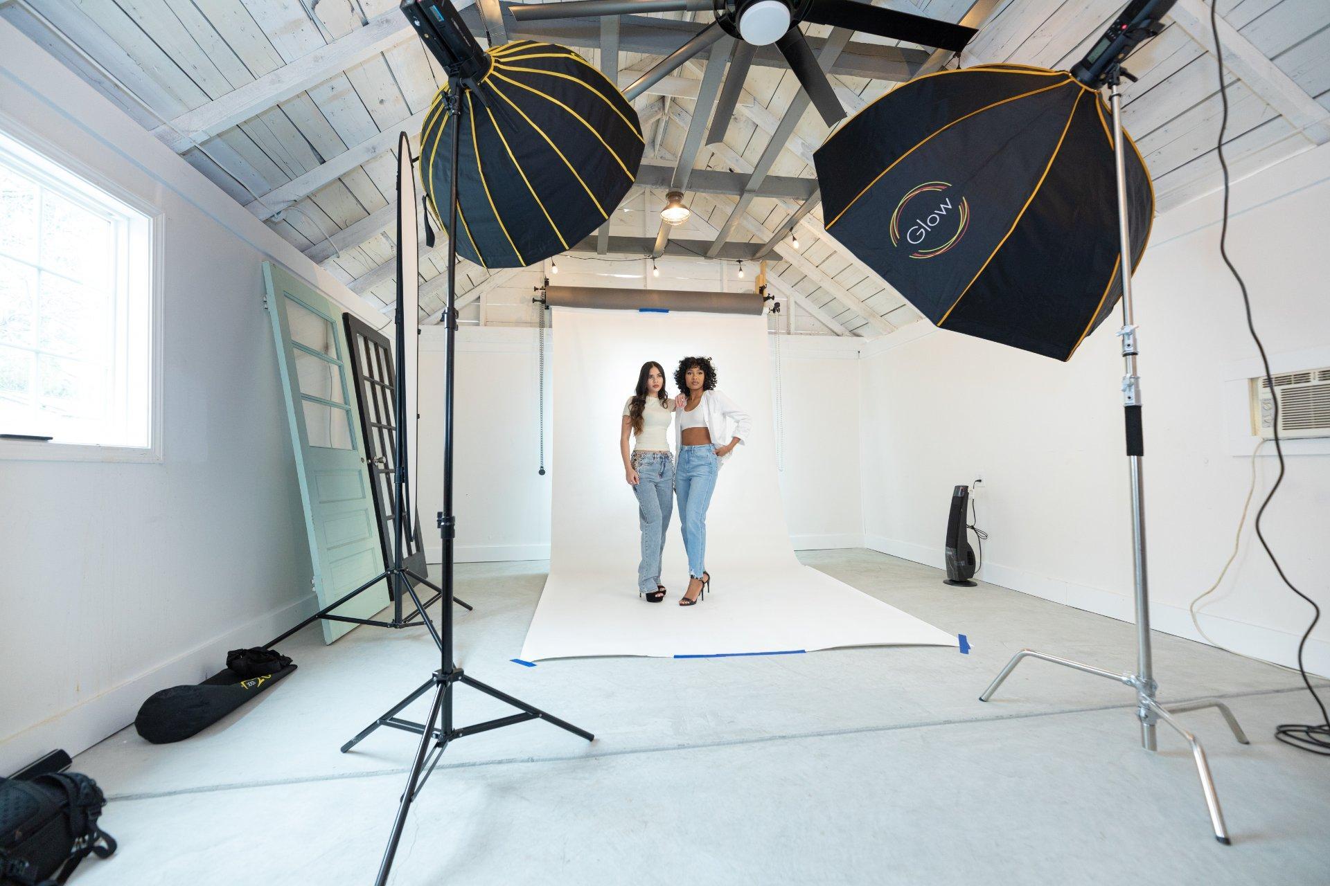 This space features a beautiful open ceiling with string lights, concrete floor, plenty of daylight, barn door style building that has good airflow. Right under the tree makes it cozy and plenty of shade yet natural lighting.