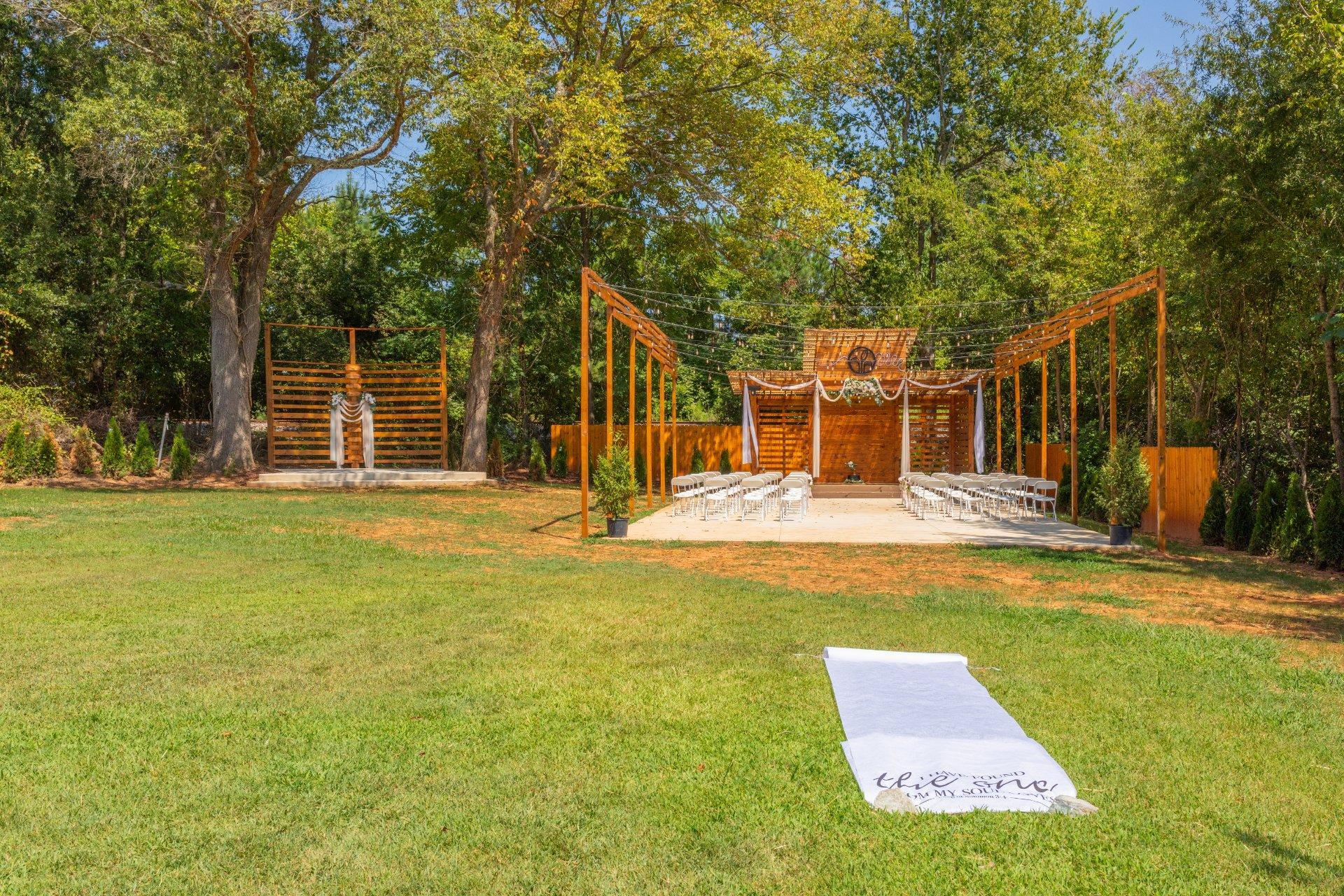 This is a open yard space backed to the railroad, plenty of greenery, trees and privacy guaranteed. Great place for outdoor wedding.
