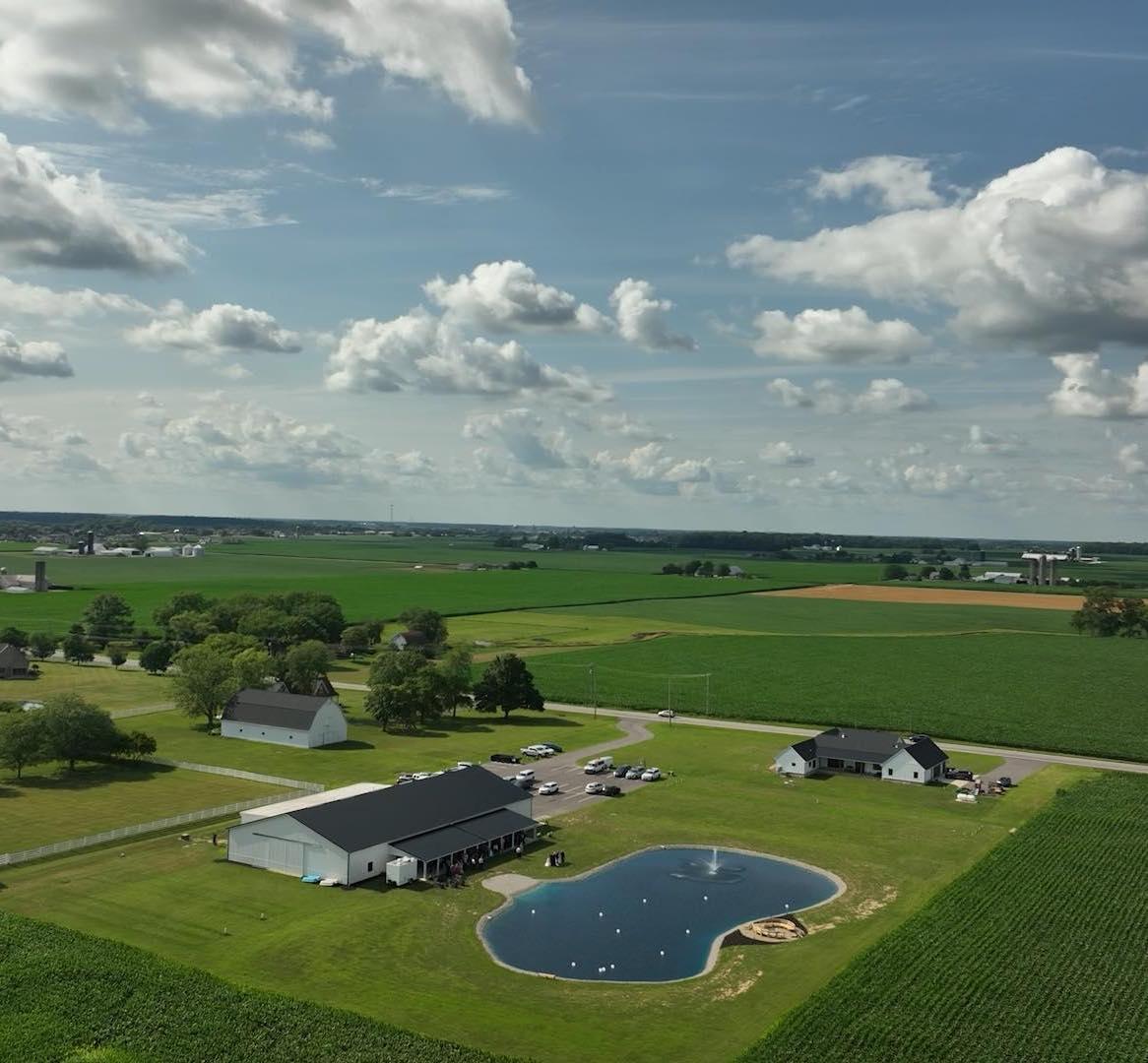 Maple Lane Retreat sits on 3.5 acres surrounded by farmland. The newly renovated horse arena provides 8,500 sq. ft. for events of all sizes large and small. Newly added barn restrooms and additional parking lot expansion provide enough to easily accommodate up to 350 guests. Attached to the barn is a 1,800 sq. ft. patio that overlooks a 3/4 acre pond with color changing water fountain.
