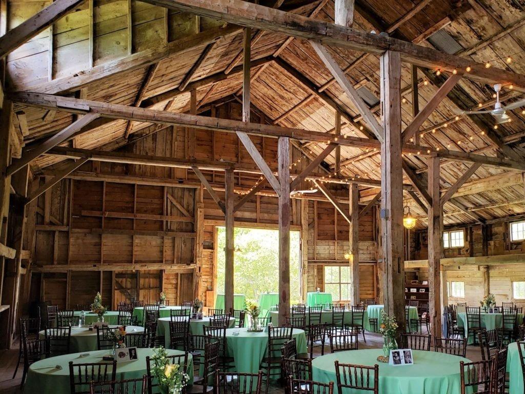 Picture this historic barn as the backdrop for your elegant wedding ceremony or rustic reception. The barn features its original framework with expansive high ceilings, glass doors opening up to the ground’s scenic orchards, and a tavern-like bar area perfect for serving your guests during your celebration.