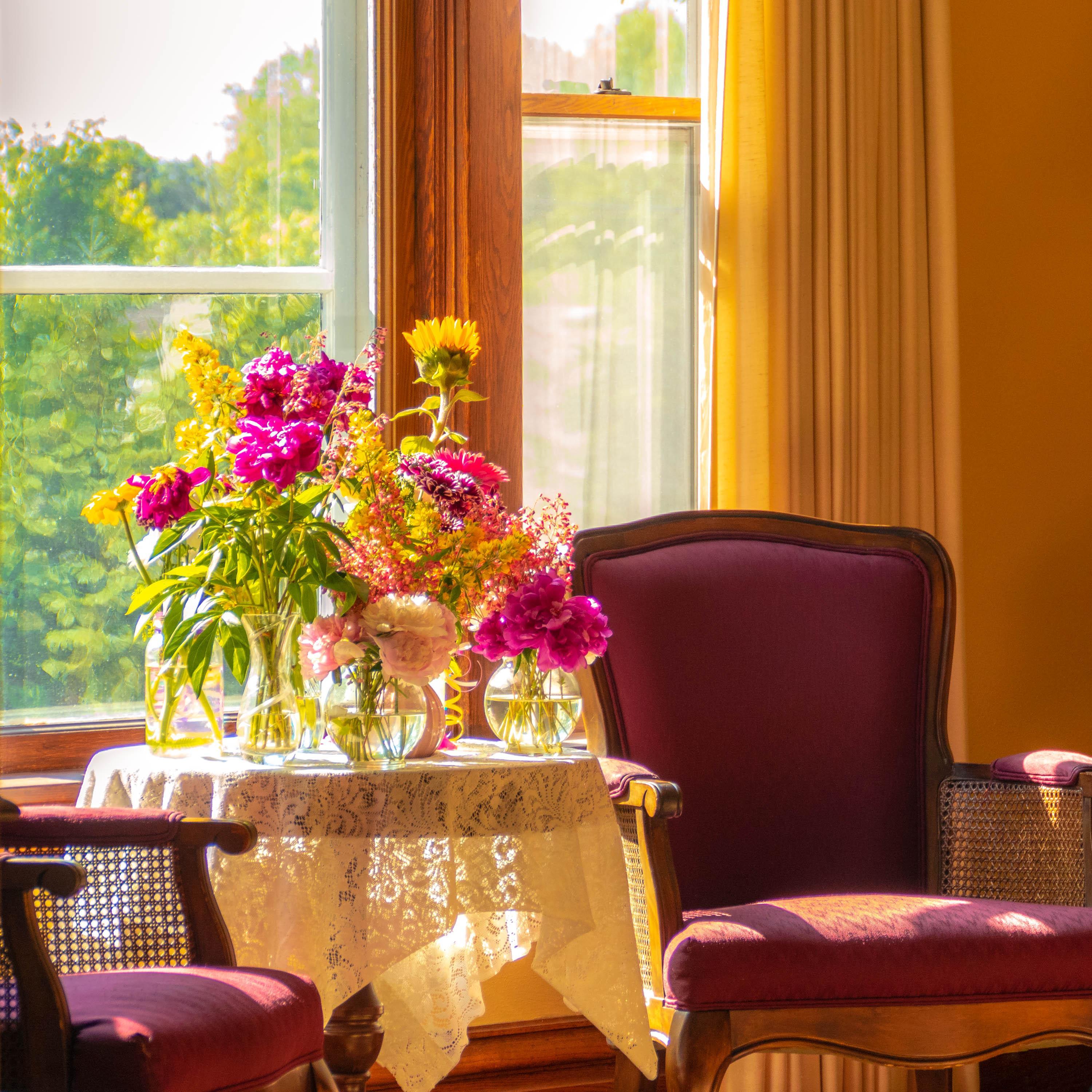 This 1912 farmhouse provides a spacious and cozy area for the bridal party to get ready for their special day. First floor of the farmhouse includes a Celebrant suite, a parlor, a 1912 themed dining room, a bathroom and full kitchen with a coffee or mimosa bar!