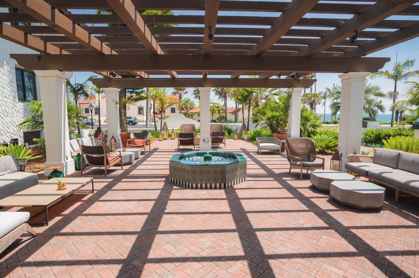 Ocean-front terrace with romantic fountain, fire-pits, and mixed seating make this space perfect for cocktail hour!