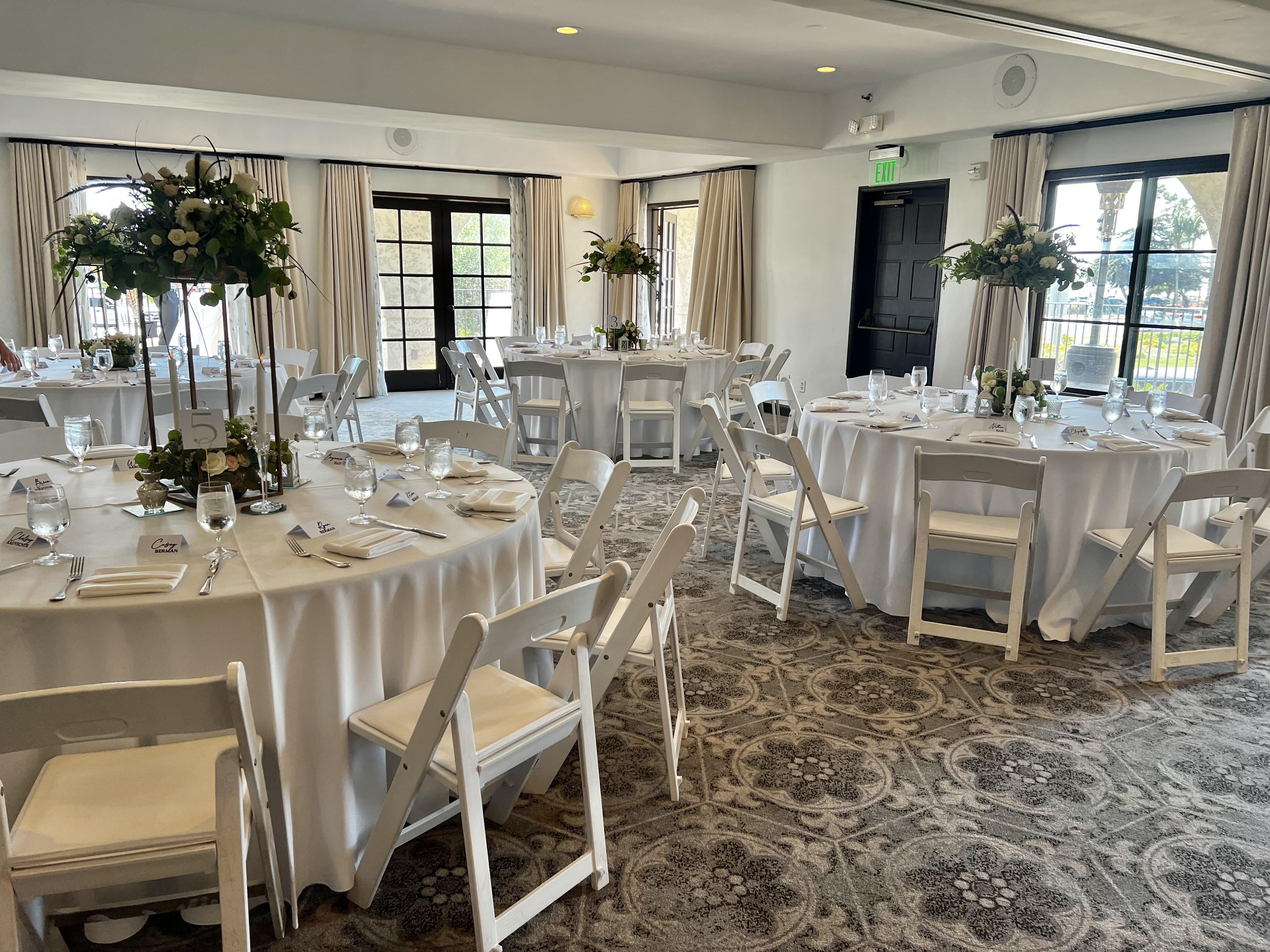 The Santa Clara is our starting package for groups of over 50+ adult guests. It is an all-inclusive food and beverage package for a five-hour reception that includes five hours of our traditional hosted bar + a choice of two passed hors D'oeuvres for your cocktail reception followed by a four-hour dinner and dance reception. The Dinner & Dance Reception includes our traditional hosted bar + a two-course plated dinner with your choice of a starter & choice of two entrées + a vegetarian entrée.
