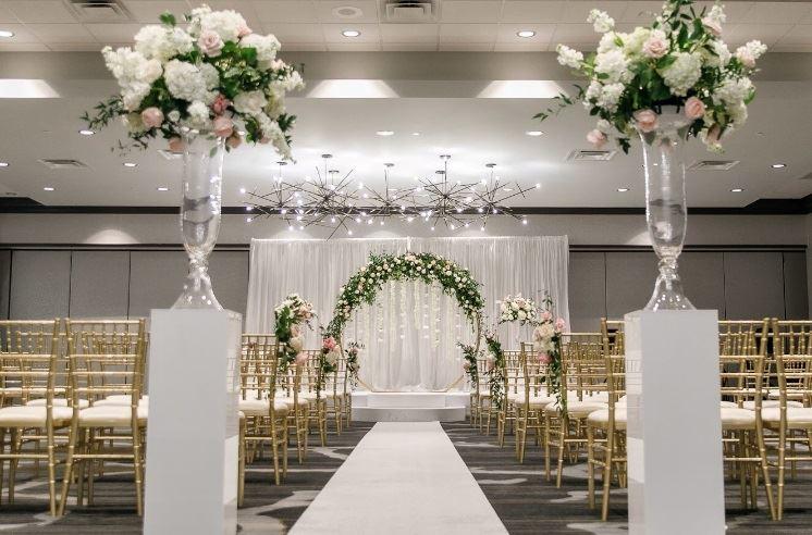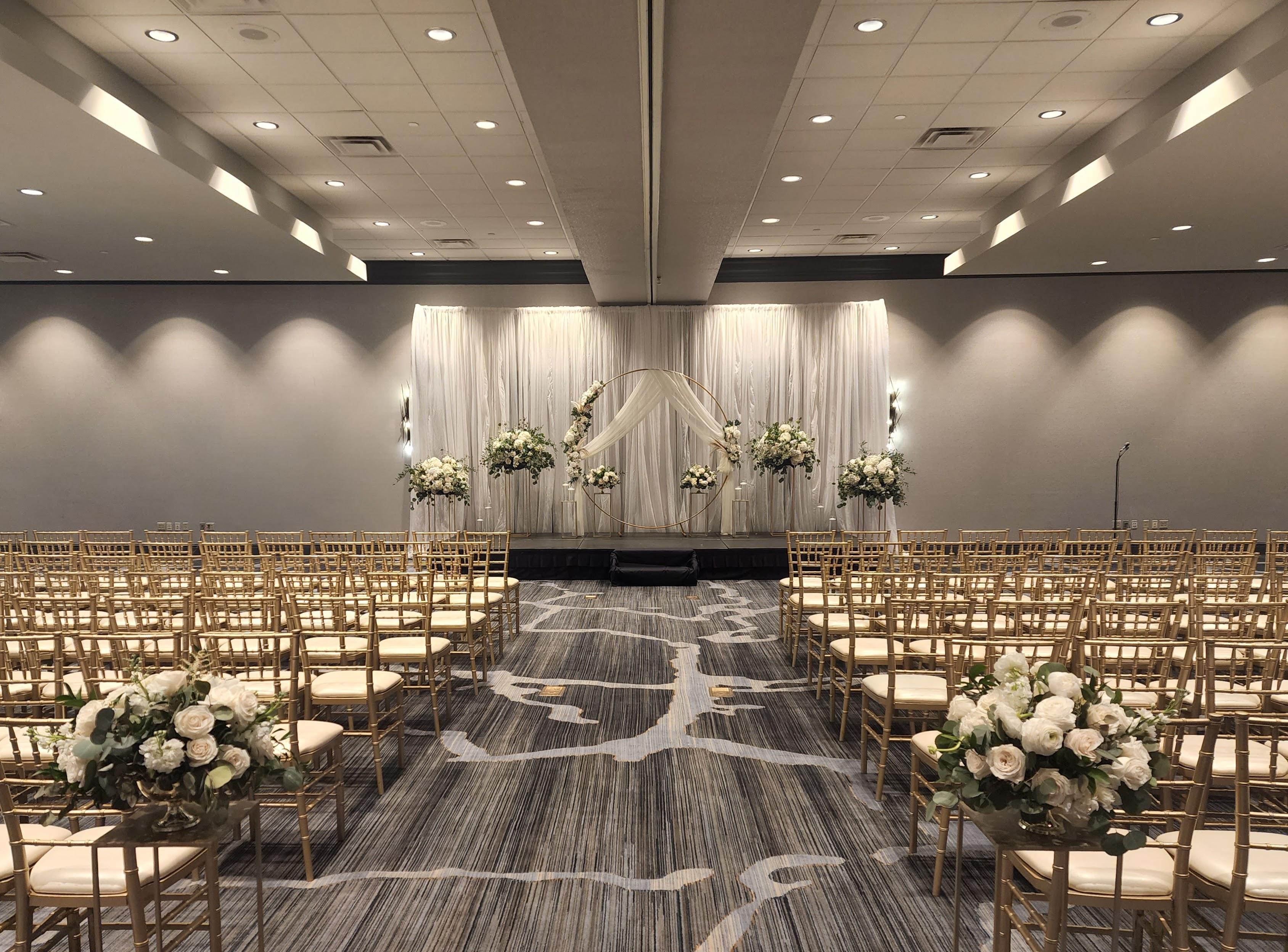 Couples can host their wedding ceremony in the beautifully renovated Grand Ballroom. Cocktail hour in the open-air atrium with Skylights and then dance the night away in the Grand Ballroom featuring brand new decor and lighting. This venue provides essential items for couples’ weddings and has three different packages to choose from or can even provide a customized package designed for your needs.