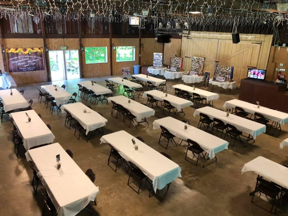 Venue Base Price (Wedding barn & includes ceremony site; chairs & arch not included)……….$2,000 In House DJ (Includes dinner music & an additional 5hrs after)………………….$600 Venue base price with out our DJ and or Catering (you bring your own)………….$3,000 Catering available (3 course meal w non alcoholic drinks, buffet style)………..……….$17.00 per person
