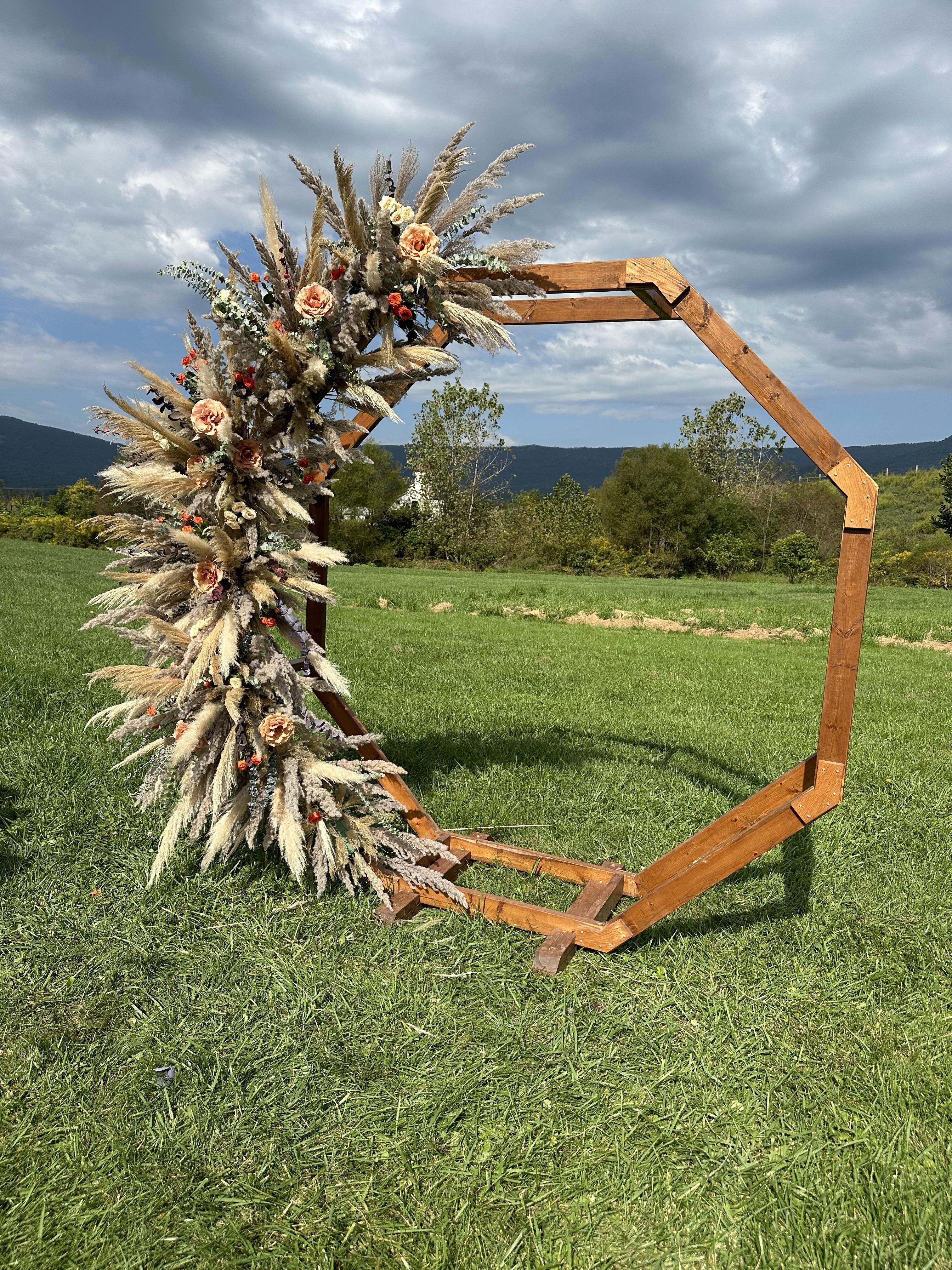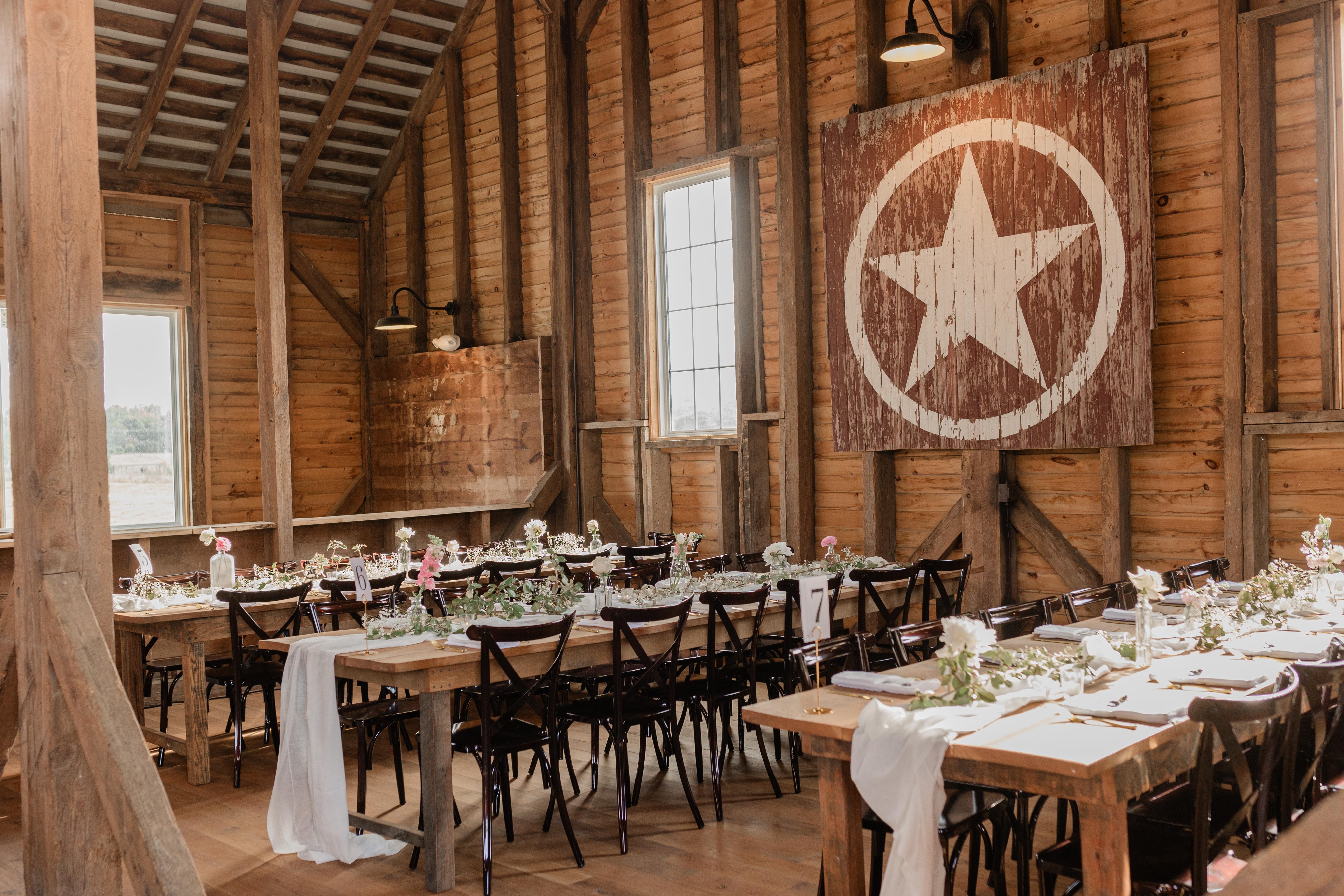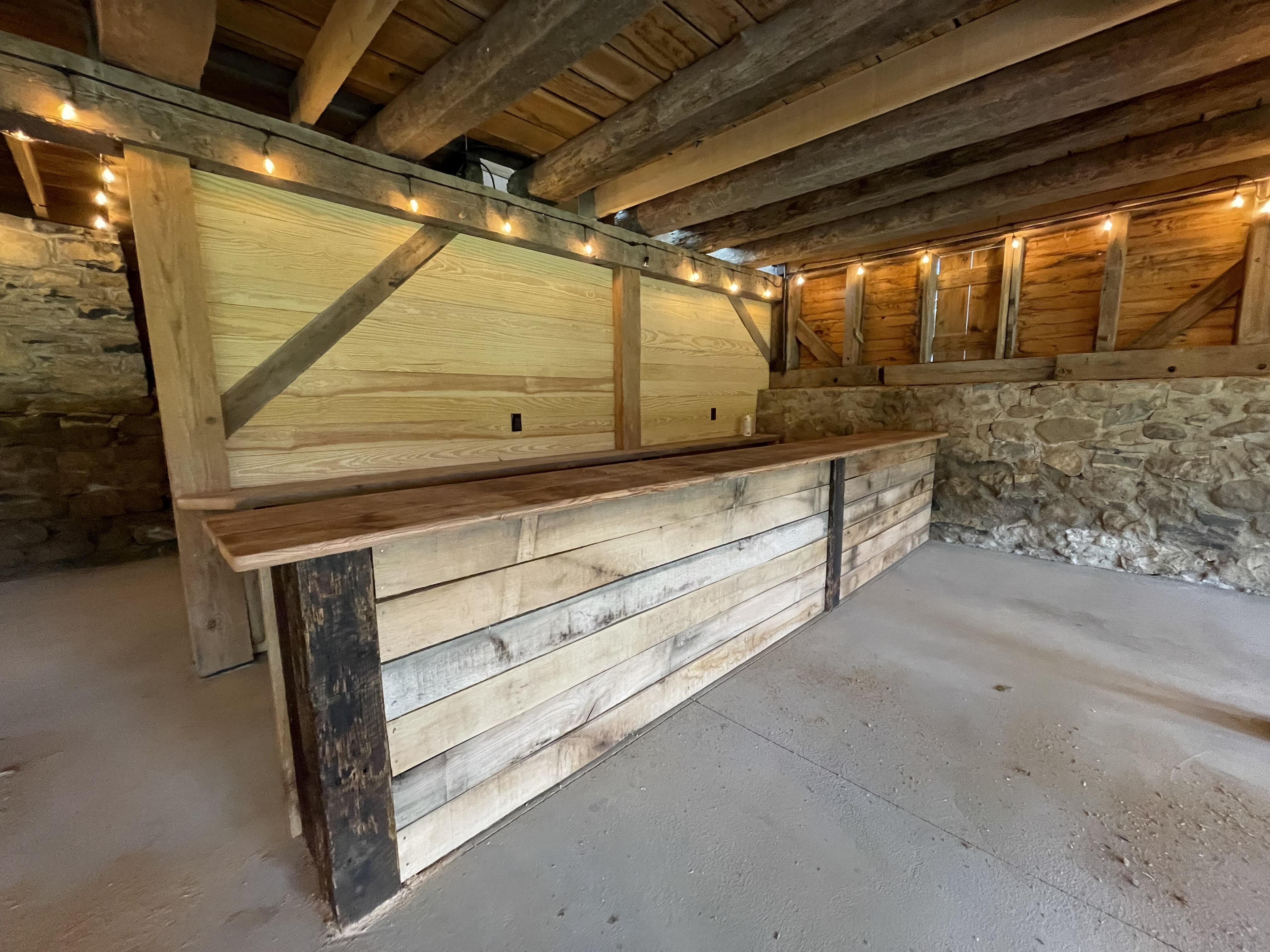 We provide: Farm wooden tables and round tables. Two set of chairs for indoor and outdoor. Bourbon Barrel. Bars in both levels Buffet table. Cake table. Sweetheart table. Hexagon arbor. Copper arbor. Bathrooms facilities.
