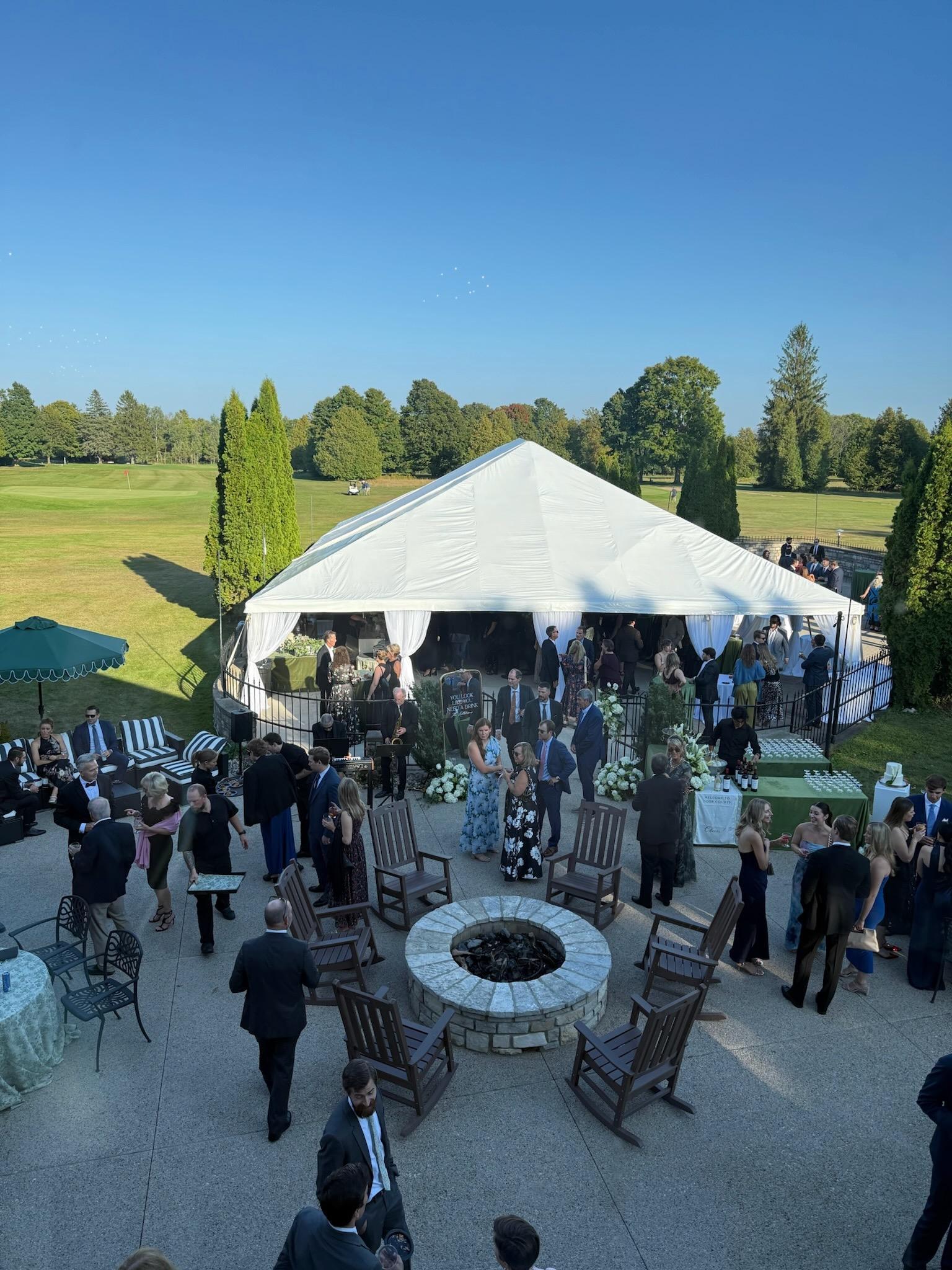-12 round patio tables, 60 patio chairs -Use of the full patio, grassy areas, and fire pit area -*Bar at an additional rental price*
