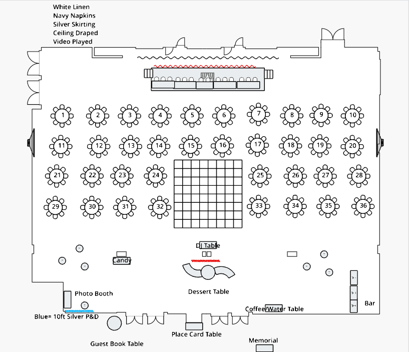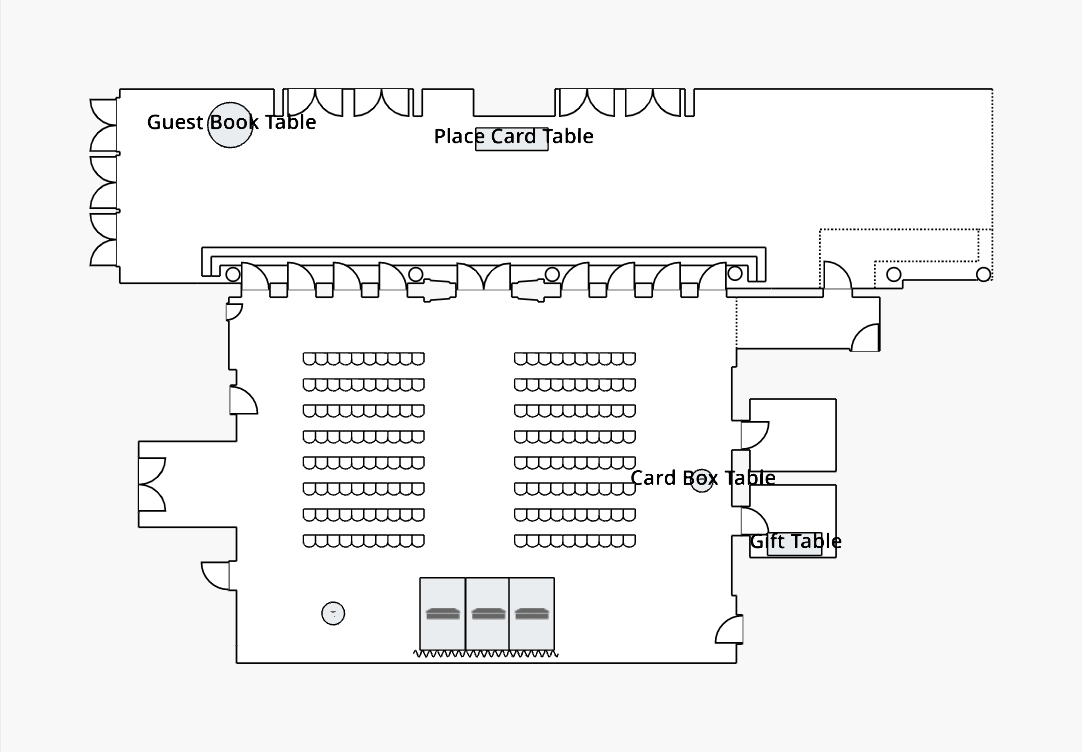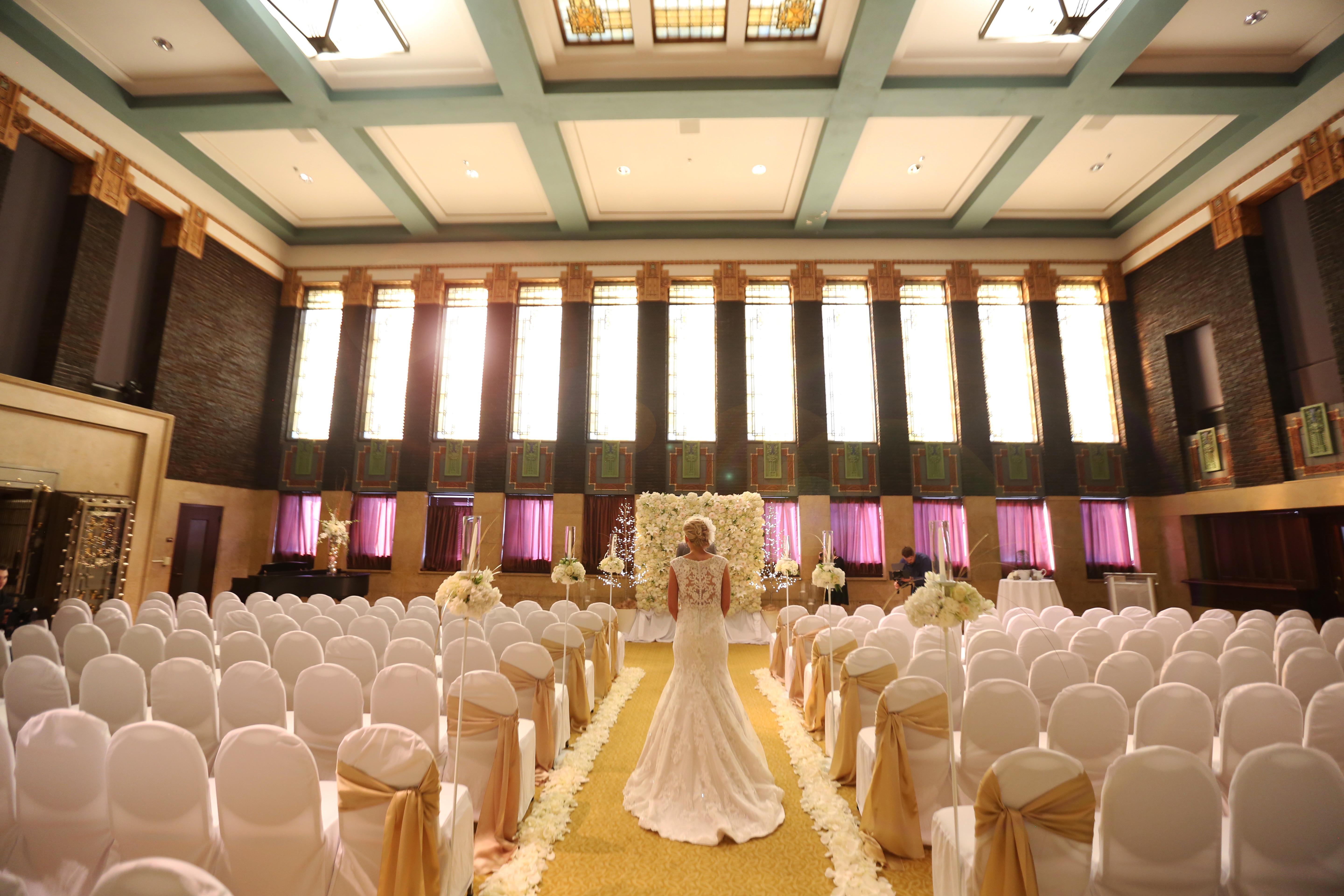 The Banquet Hall is a spacious room featuring high ceilings and is located adjacent to the Reception Hall, which provides the perfect flow from your ceremony or social hour to your dinner or reception.