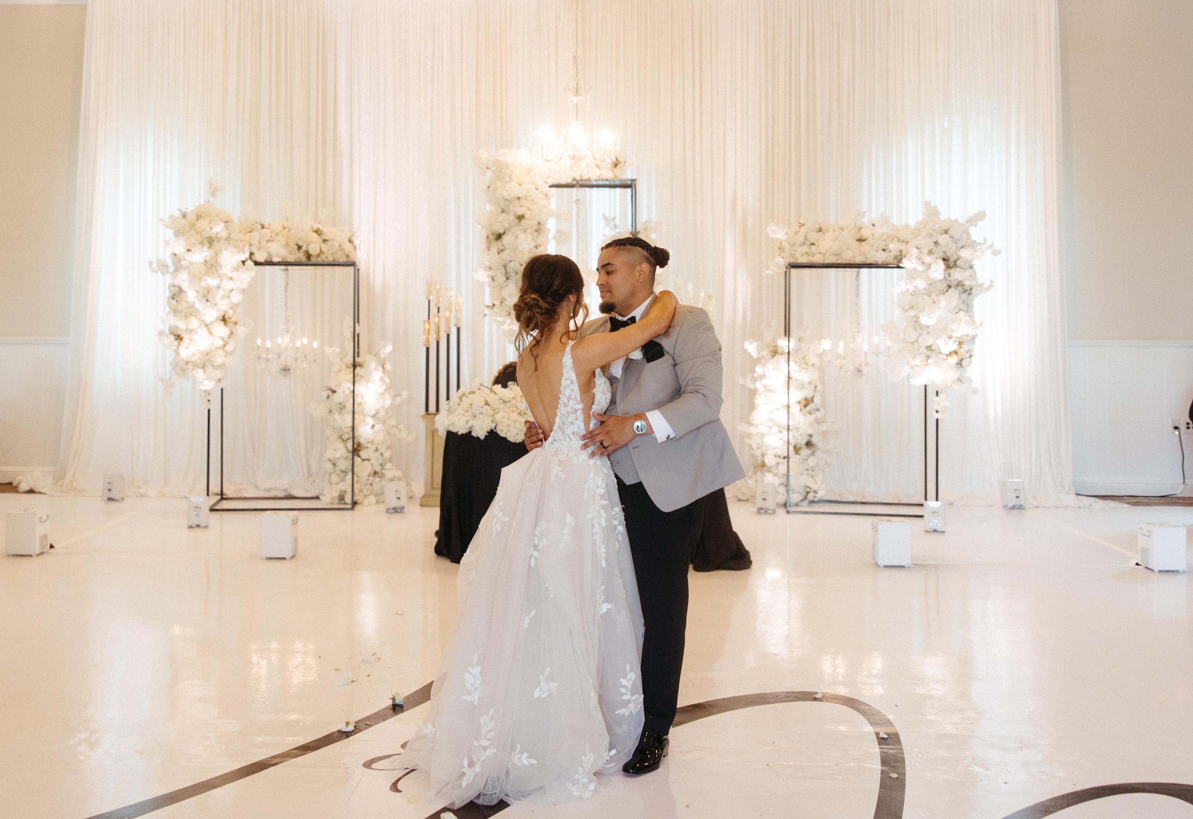 This space features 4000 sq ft of event space with a large barrel wall with string lights, chandeliers, to make for a beautiful ceremony or reception room.
