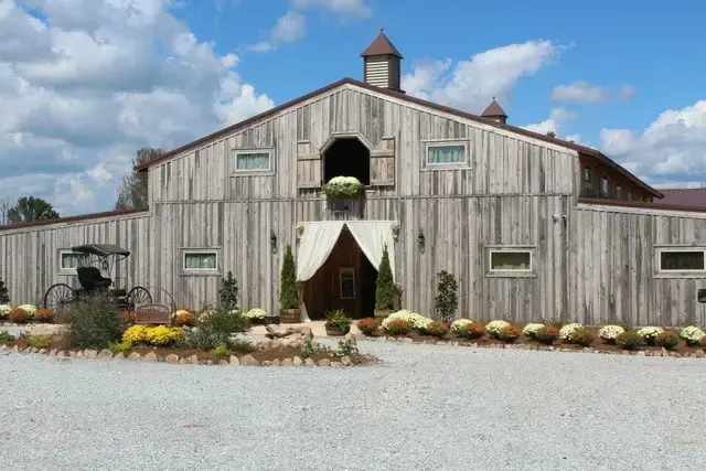 Meadow Creek Farm offers 49 acres of gorgeous landscape for your special day and a rustic barn for your ceremony or reception. The barn is 84 feet wide by 60 feet long and comes equipped with a dressing area, loft, and full catering kitchen. Overall, this venue accommodates up to 250 guests, making it the perfect location for medium-sized and larger wedding parties. Outside of the barn, couples will fall in love with the venue's spacious pavilion. The barn offers rustic wood walls for a charming indoor setting which can be decorated according to your unique vision. Couples can also choose to have an outdoor ceremony overlooking a gorgeous pond. The outdoor stone fireplace is sure to warm you and your guests up during a crisp evening and likewise add to your wedding’s rustic charm. The pavilion overlooks a two-acre pond, which provides a magical, charming, and all-natural backdrop that is sure to make for breathtaking photography on your special day.