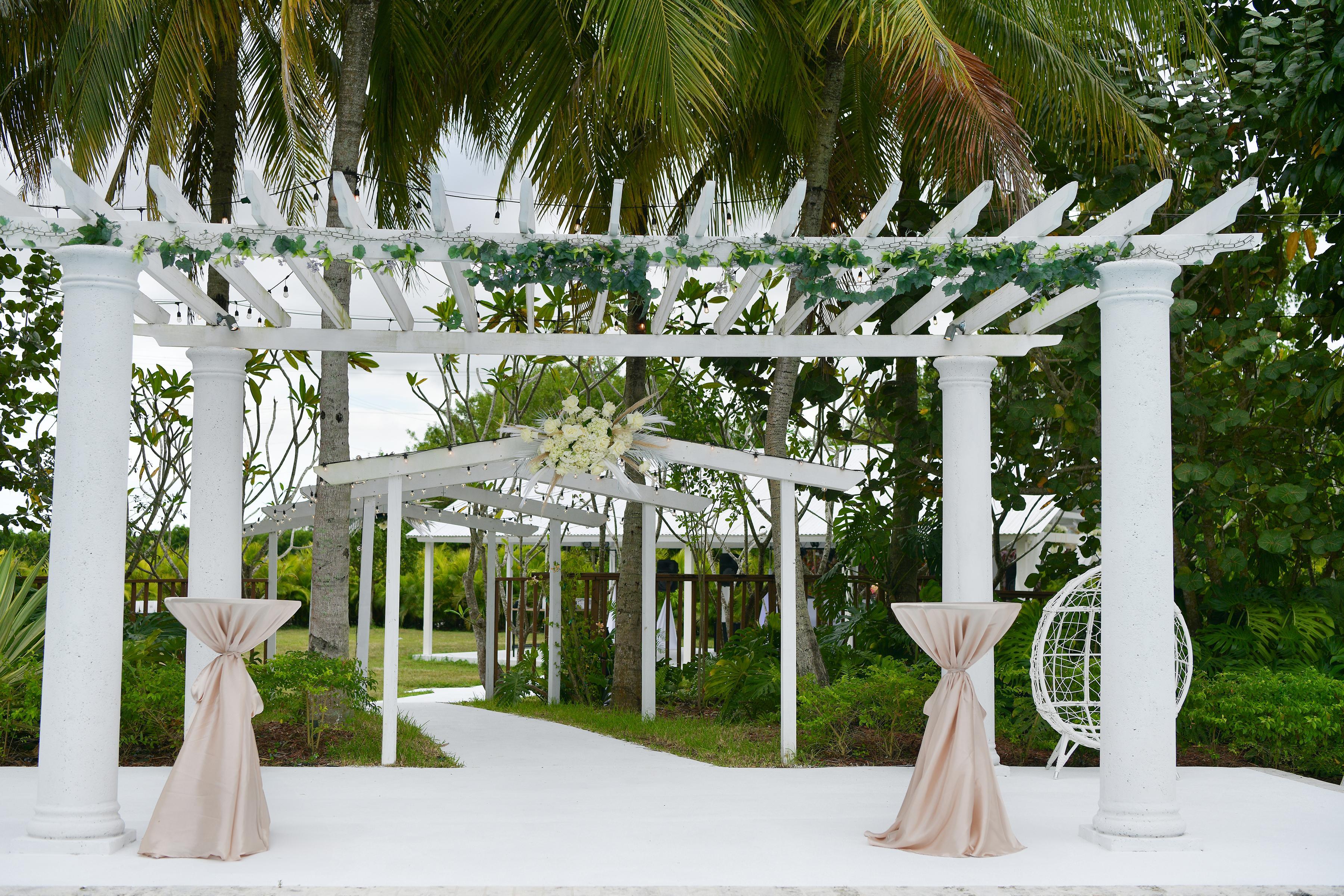 Venue for events and photo shoots, indoor and outdoor available. A large tropical garden and multiple areas for events and photos where your guests will feel very comfortable. Enjoy a warm sunset in the purest Florida style while your wedding is celebrated in front of your family and guests so that everyone witnesses an unforgettable moment.