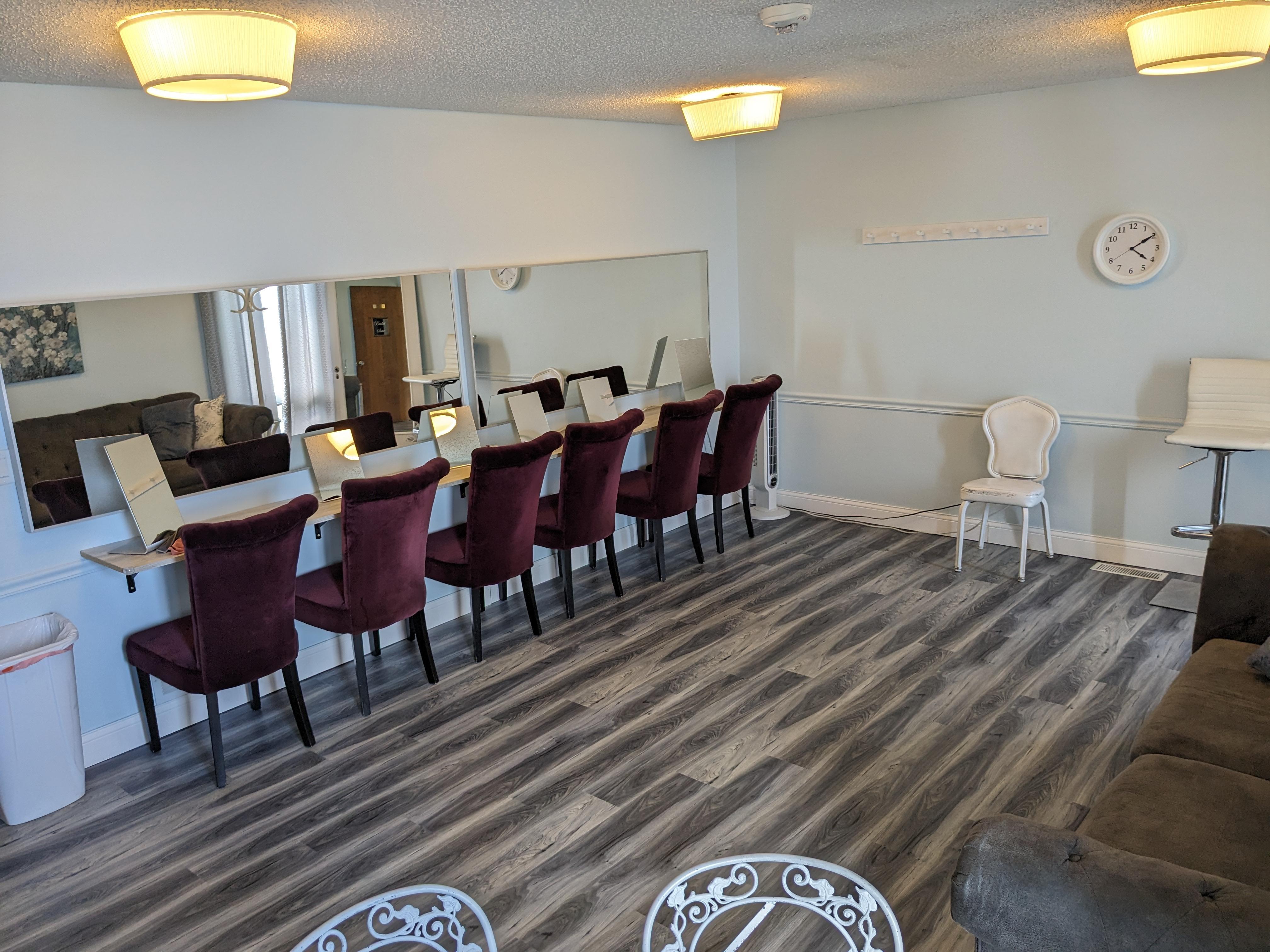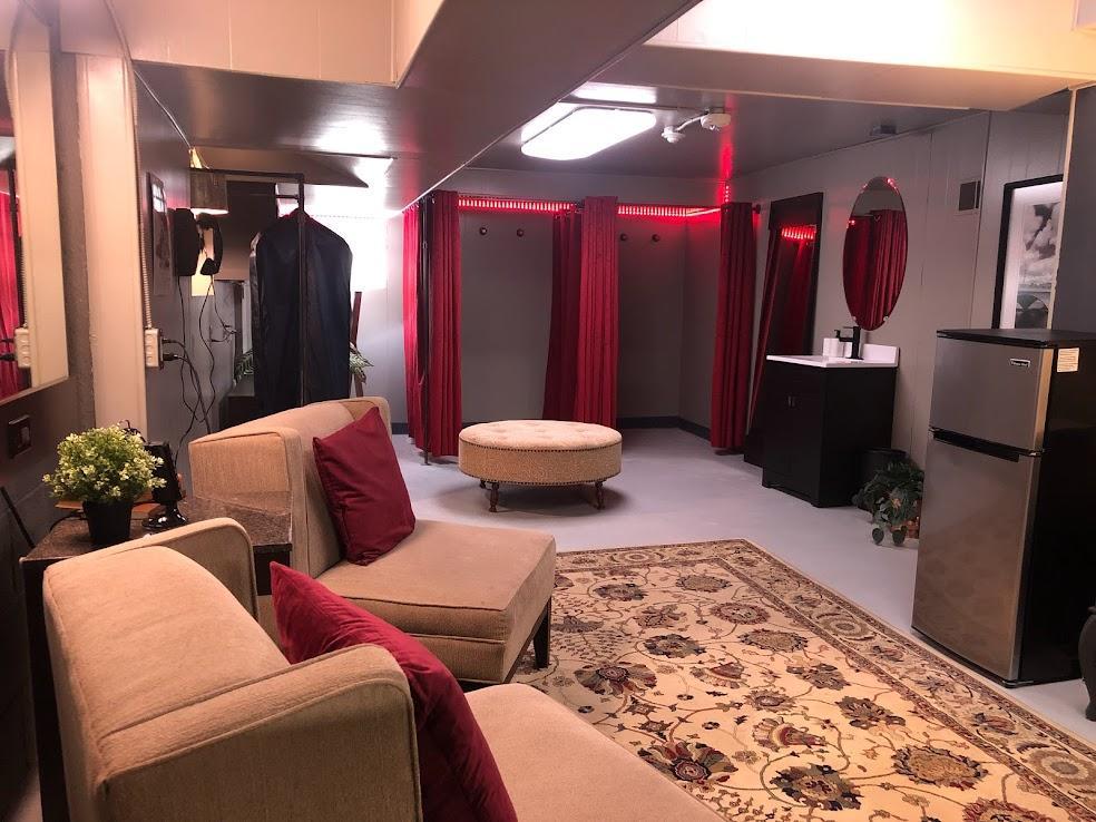 Pool Table, Foosball Table, Private Dressing Room, Large Screen TV, Restrooms, Access to the outside