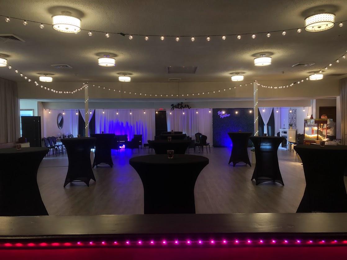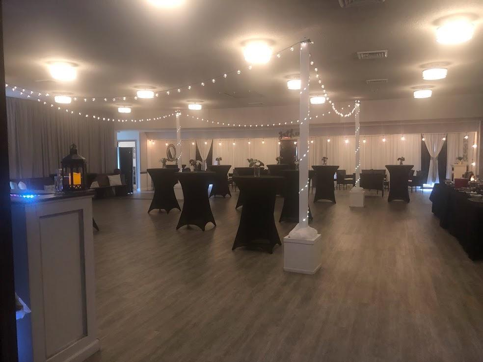 Large Screen TV for slideshows or videos, Cocktail Tables, dance lights, Full Size Bar, Sound System, Full Kitchen right off the room, access to a large fenced-in yard
