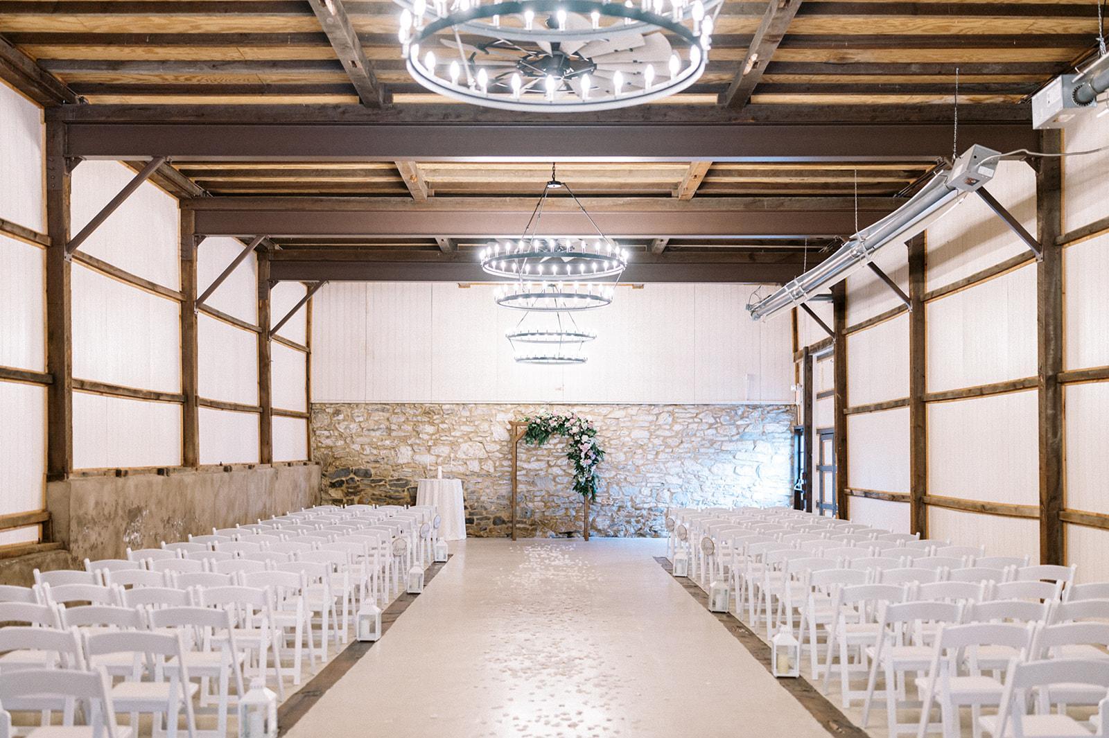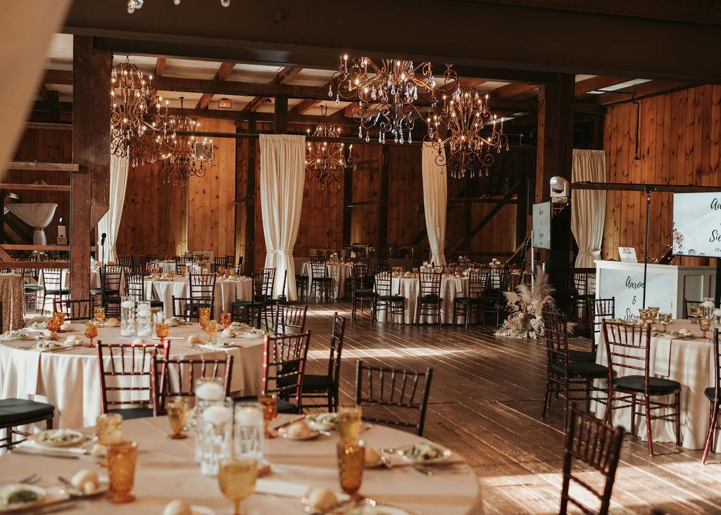 The Tobacco Barn is the perfect indoor wedding ceremony option. Offering a separate space from where our indoor cocktail hour and indoor ceremonies are held, The Tobacco Barn eliminates the need to stress about inclement weather on your wedding day. Complete with ivory painted floors also featuring original wooden accents, 4 large tiered circular iron dimmable chandeliers, full climate control and movable walls. This is the perfect indoor ceremony venue!