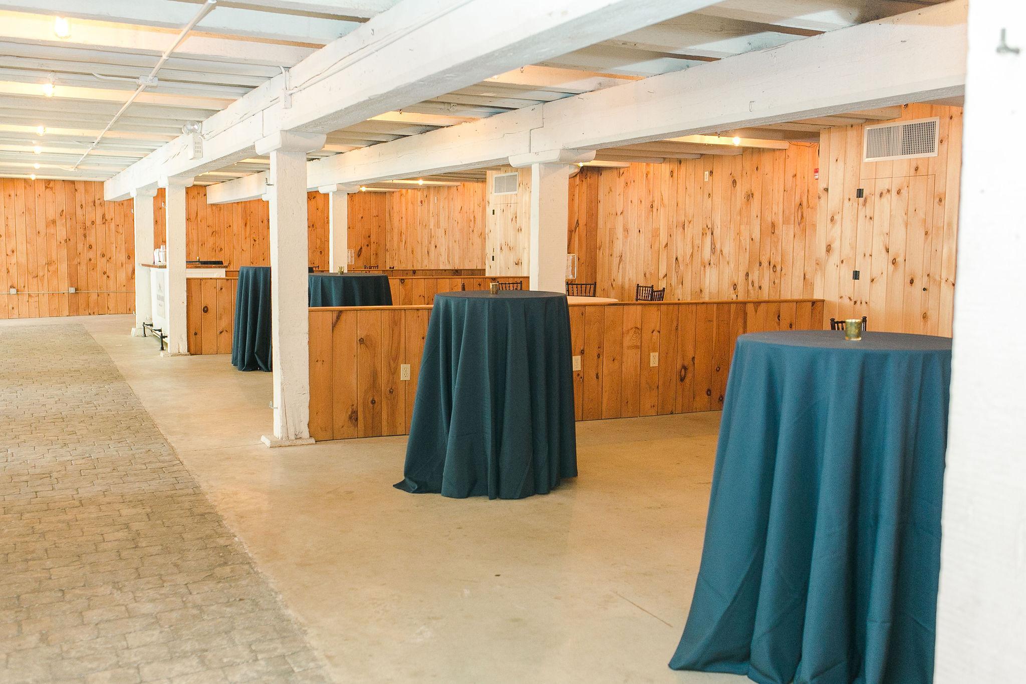 This space features 15,000 sq ft offering the perfect indoor option for the cocktail hour portion of your special day. The Stables features original wooden beams, ambiance lighting, full climate control, portable copper topped bars. The original stable walls also create the perfect areas for appetizer stations, gift and guestbook tables and areas for your guests to gather and mingle!