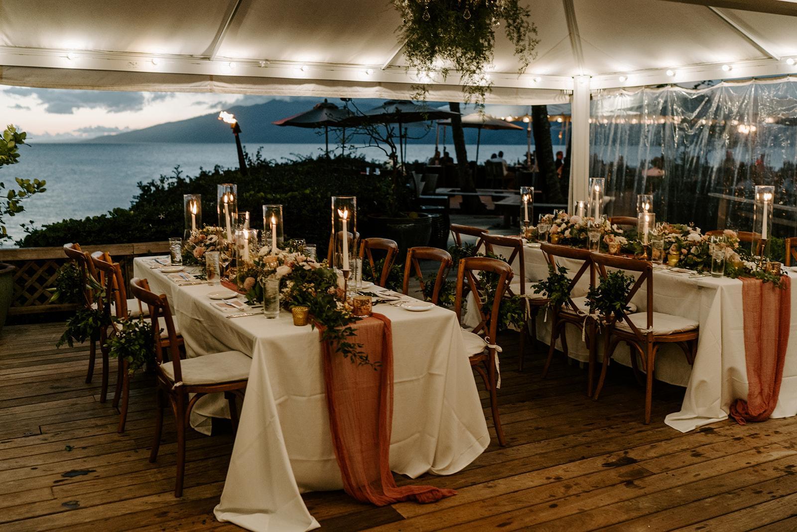 Merriman's Kapalua is located between Kapalua Bay and Napili Bay with panoramic ocean views. With multiple event locations, the venue can accommodate guest counts of various sizes. Enjoy Merriman's fine dining and service while celebrating your special day! Merriman’s provides in-house coordination services. The team provides coordination and booking of vendors, food and beverage, staffing, and setup. They are on-site the day of your wedding to ensure your timeline is followed and the event runs smoothly.