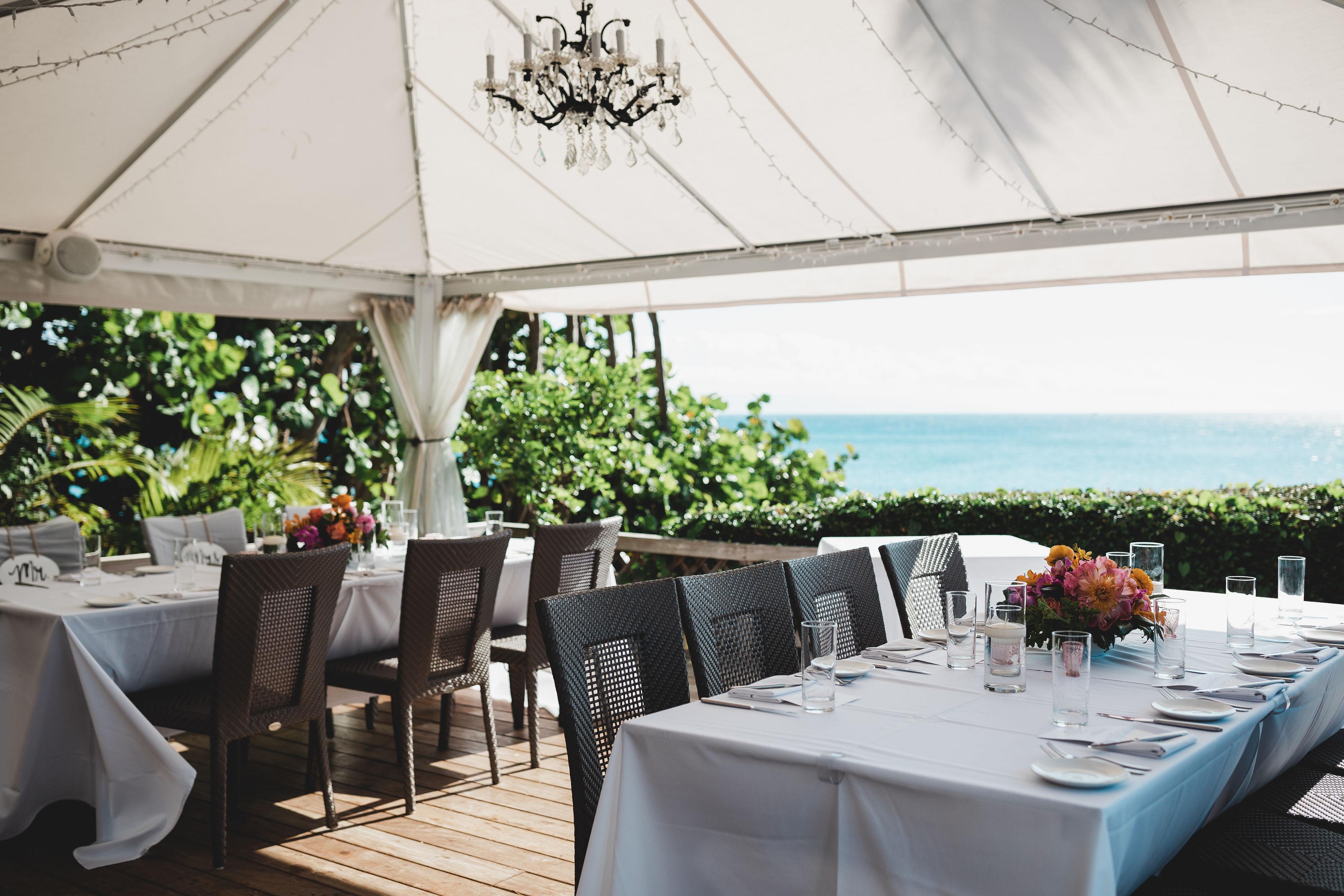 Located on our Kapalua Bay Deck the Private Cabana is the perfect location for your intimate reception dinner. It is covered from any inclement weather, but fully open air. It also includes beautiful chandeliers. We can seat a maximum of 40 guests in the space.