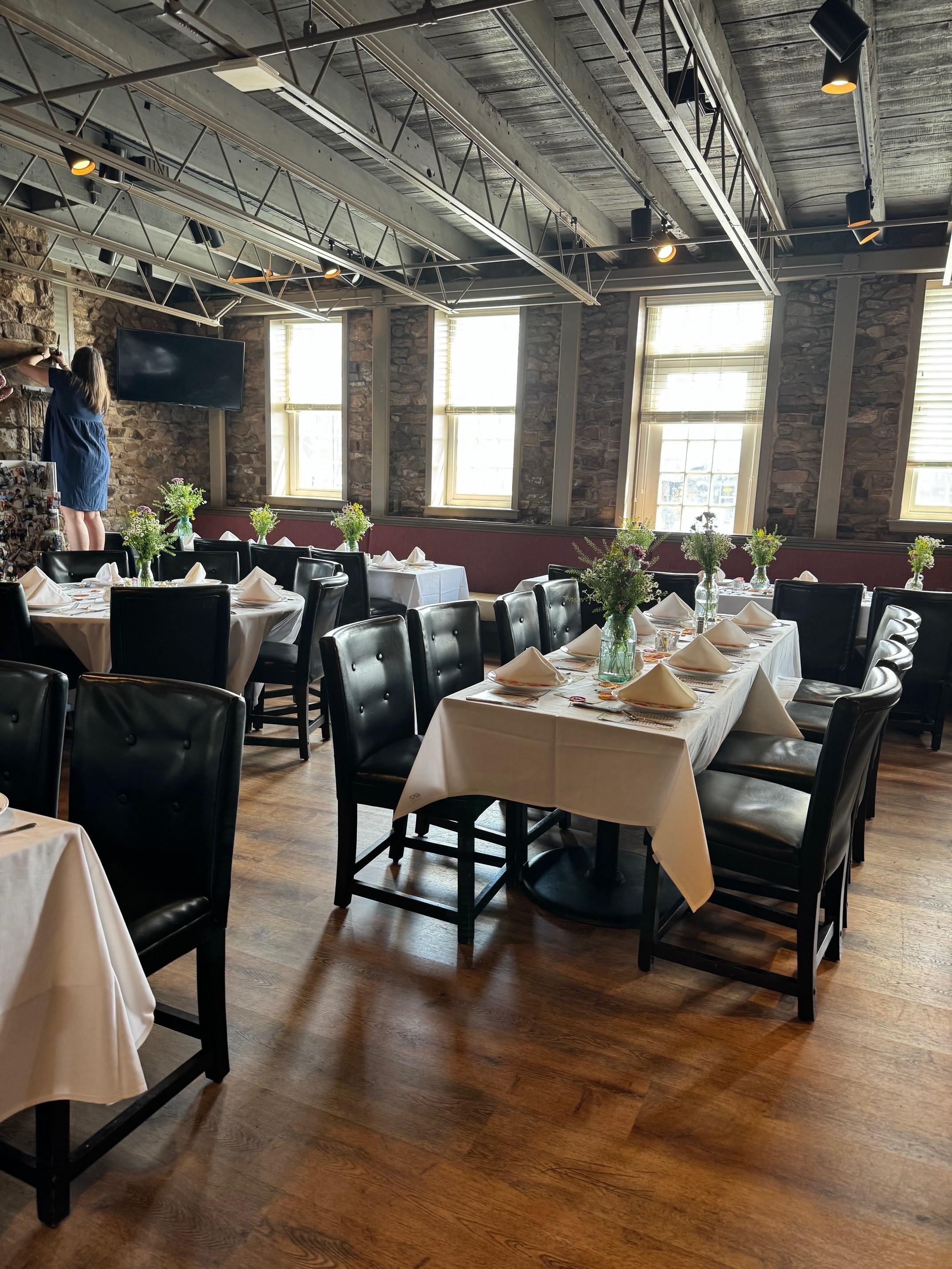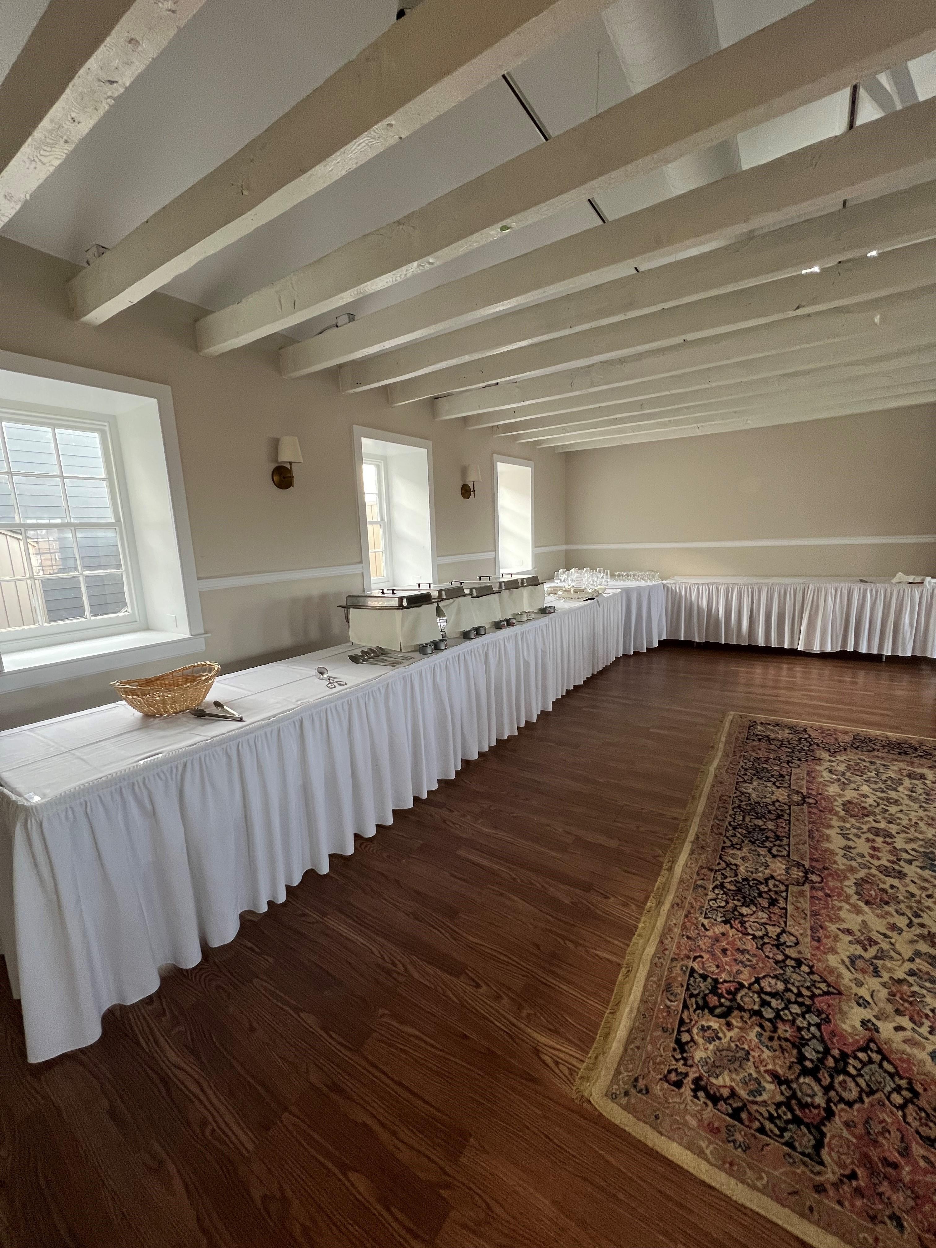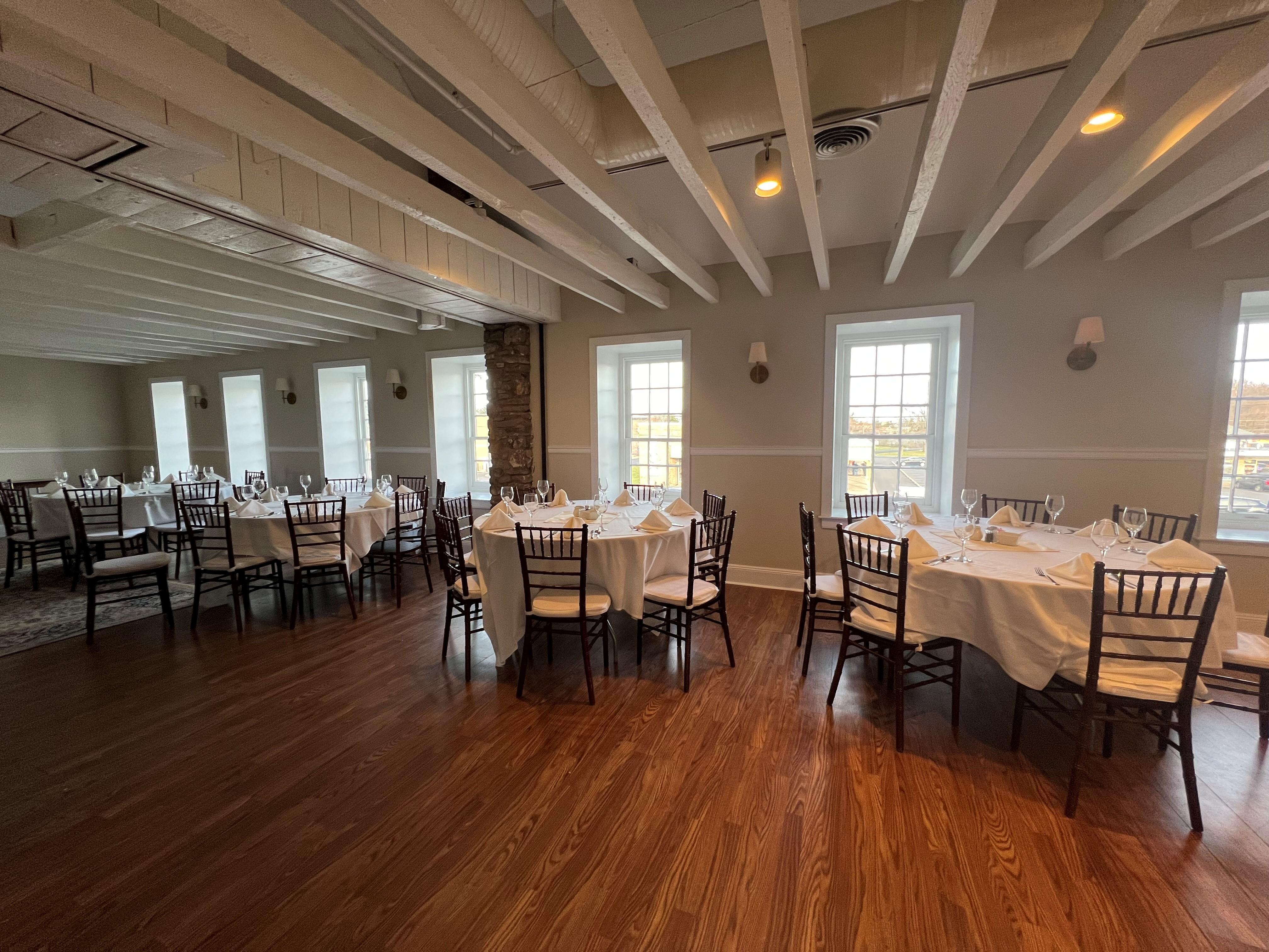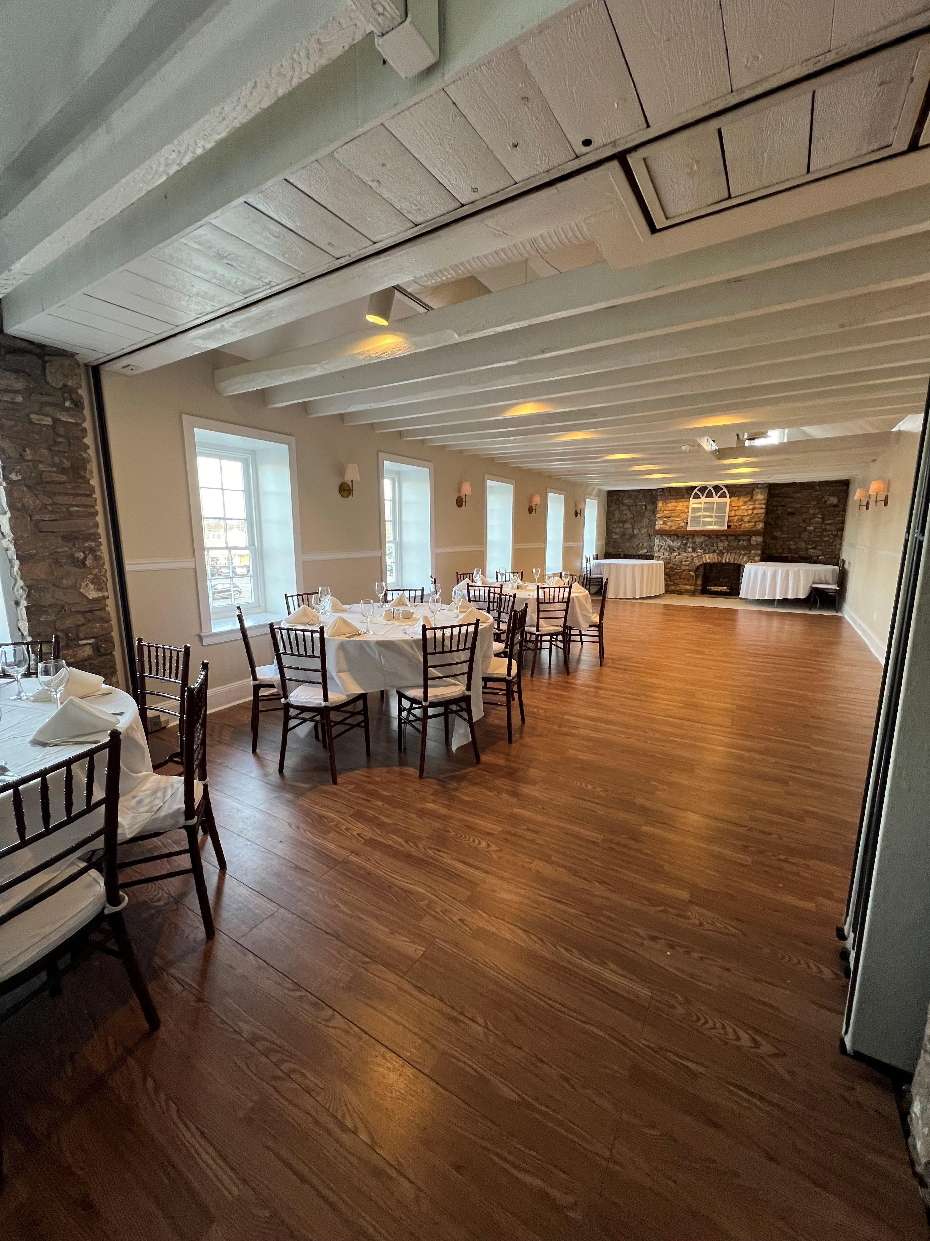 The larger of the two banquet rooms, this space offers a range of variety, uniqueness and history. Natural sunlight peaks through the original windows.