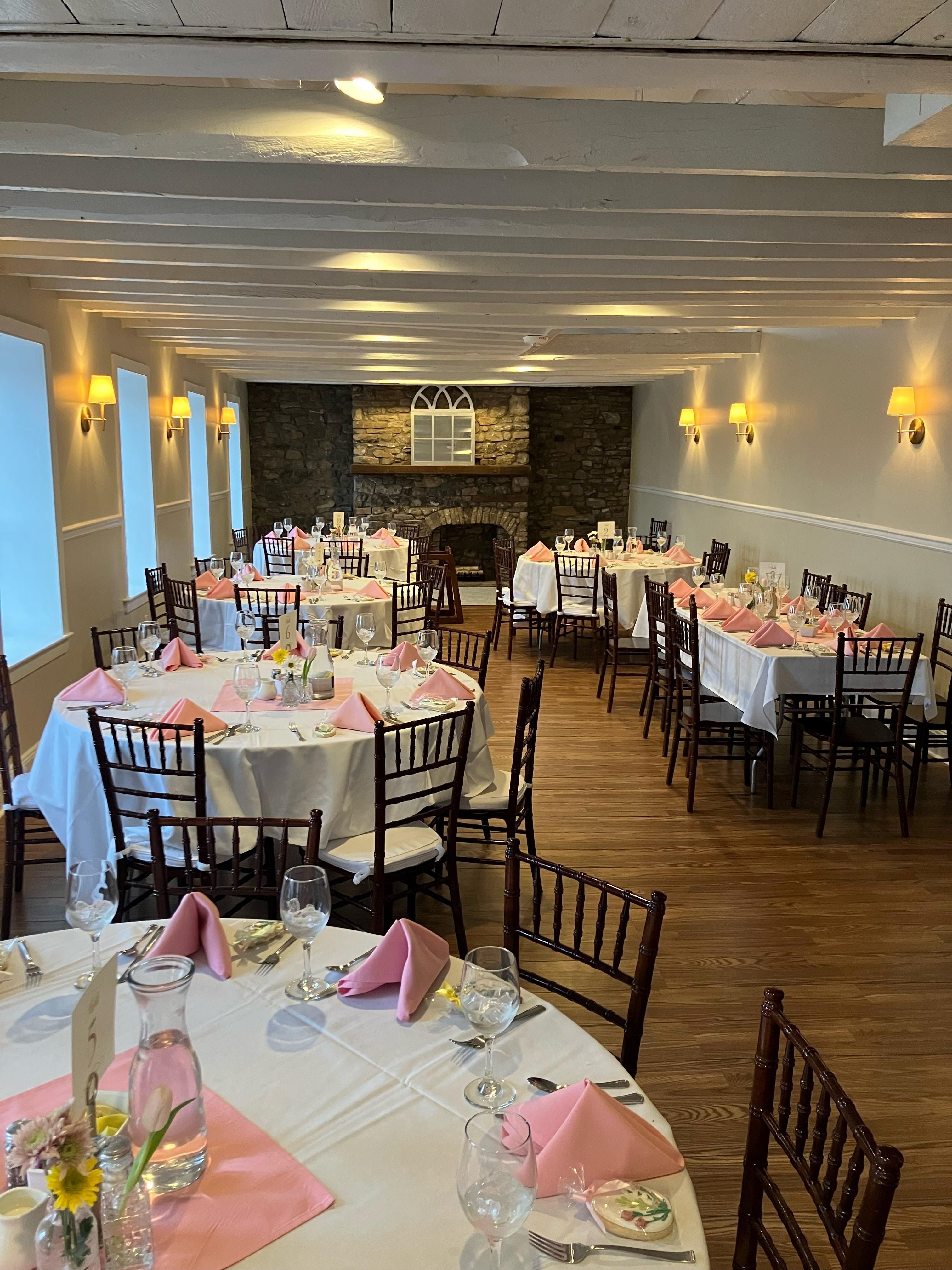 Music can be connected to our system to be played during your event. Large open fireplace Plenty of natural sunlight Views of our lower stone room