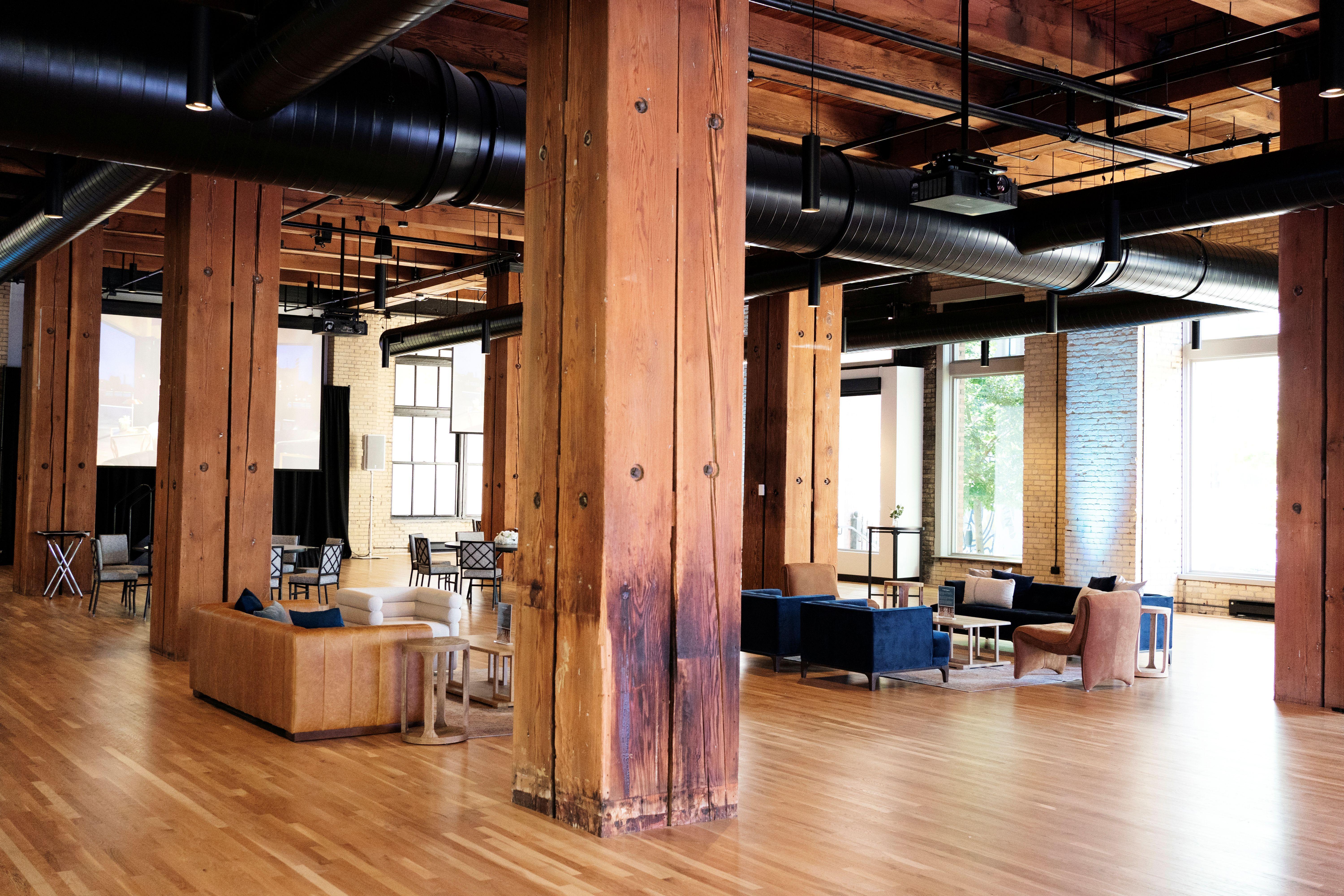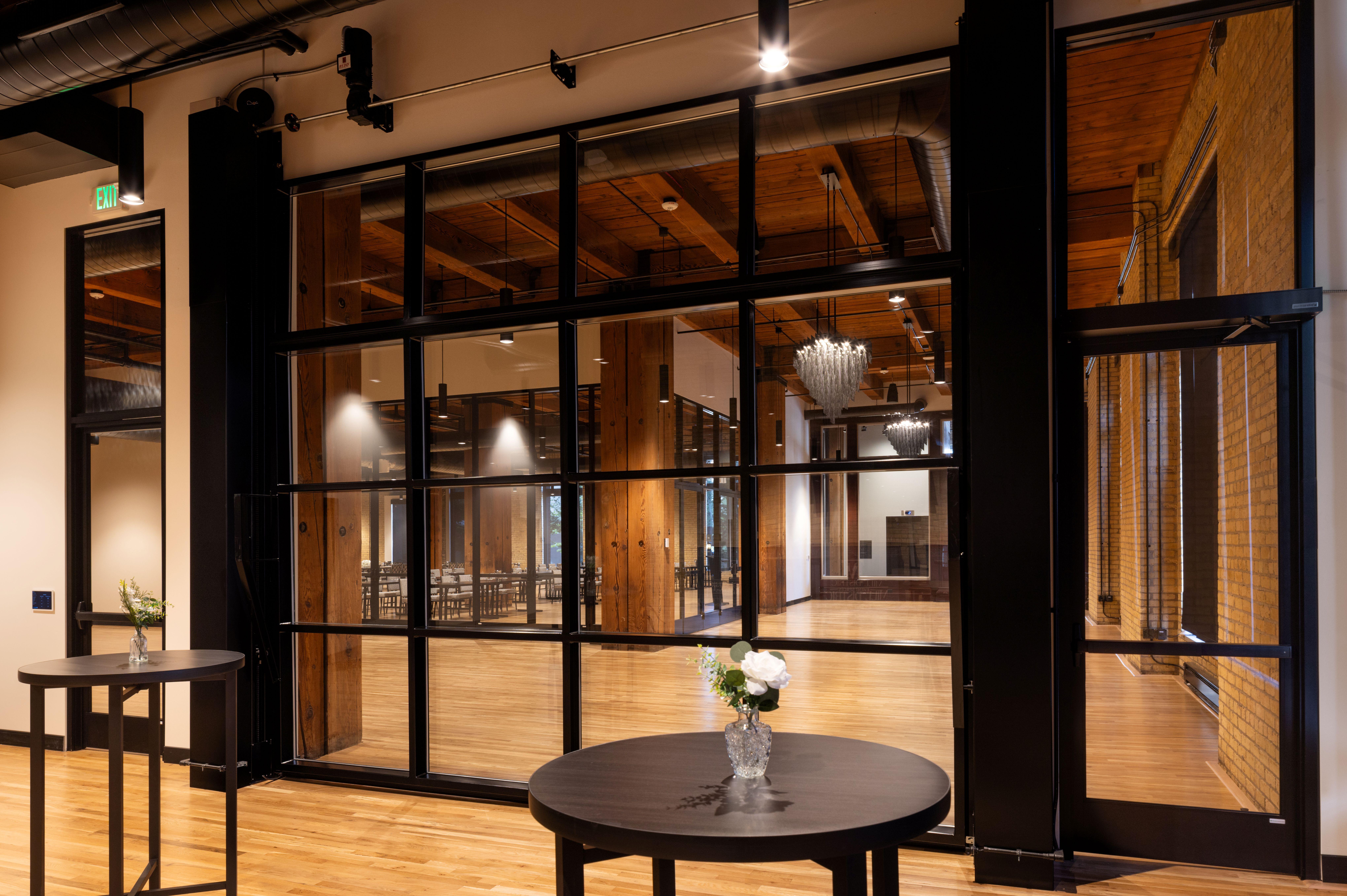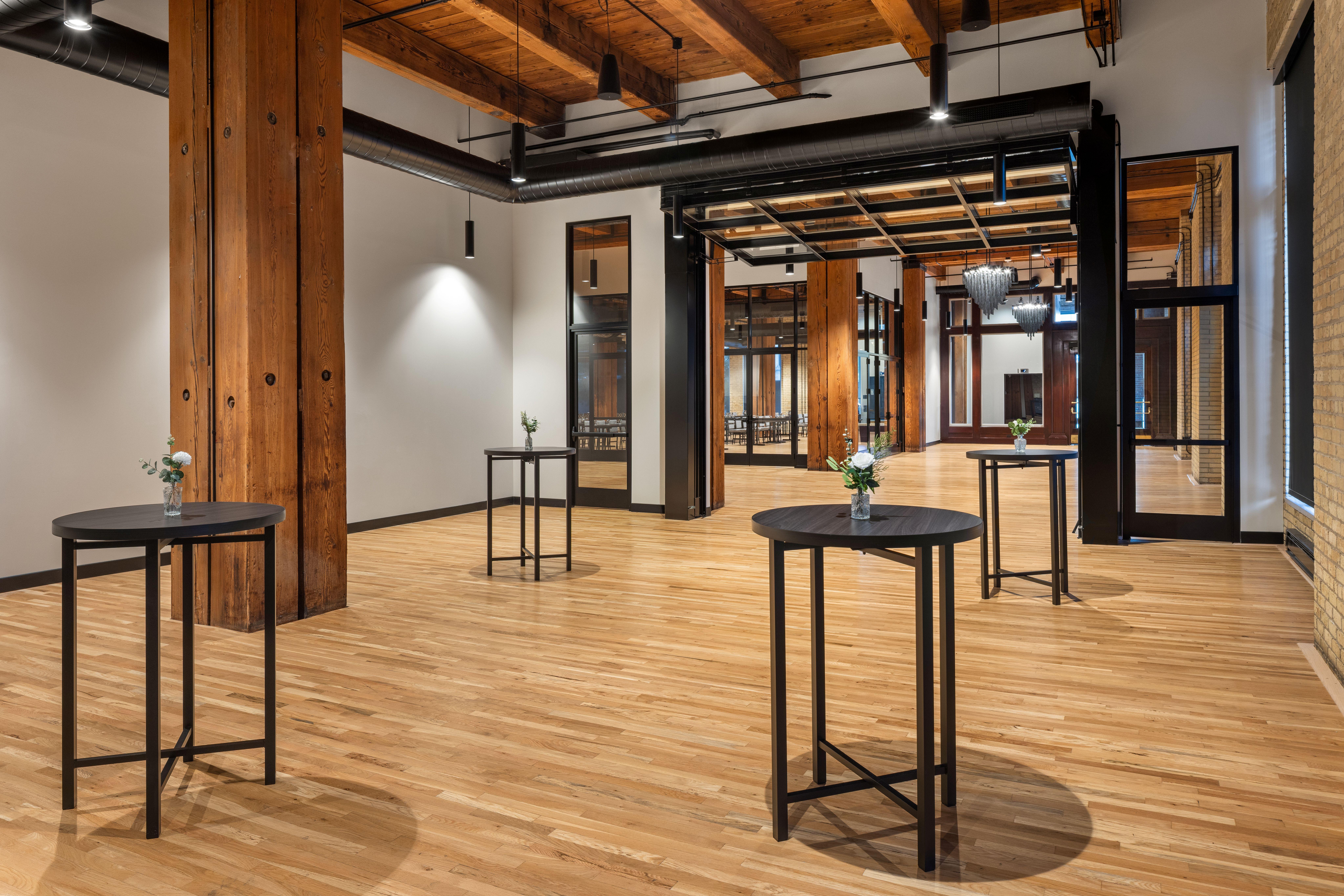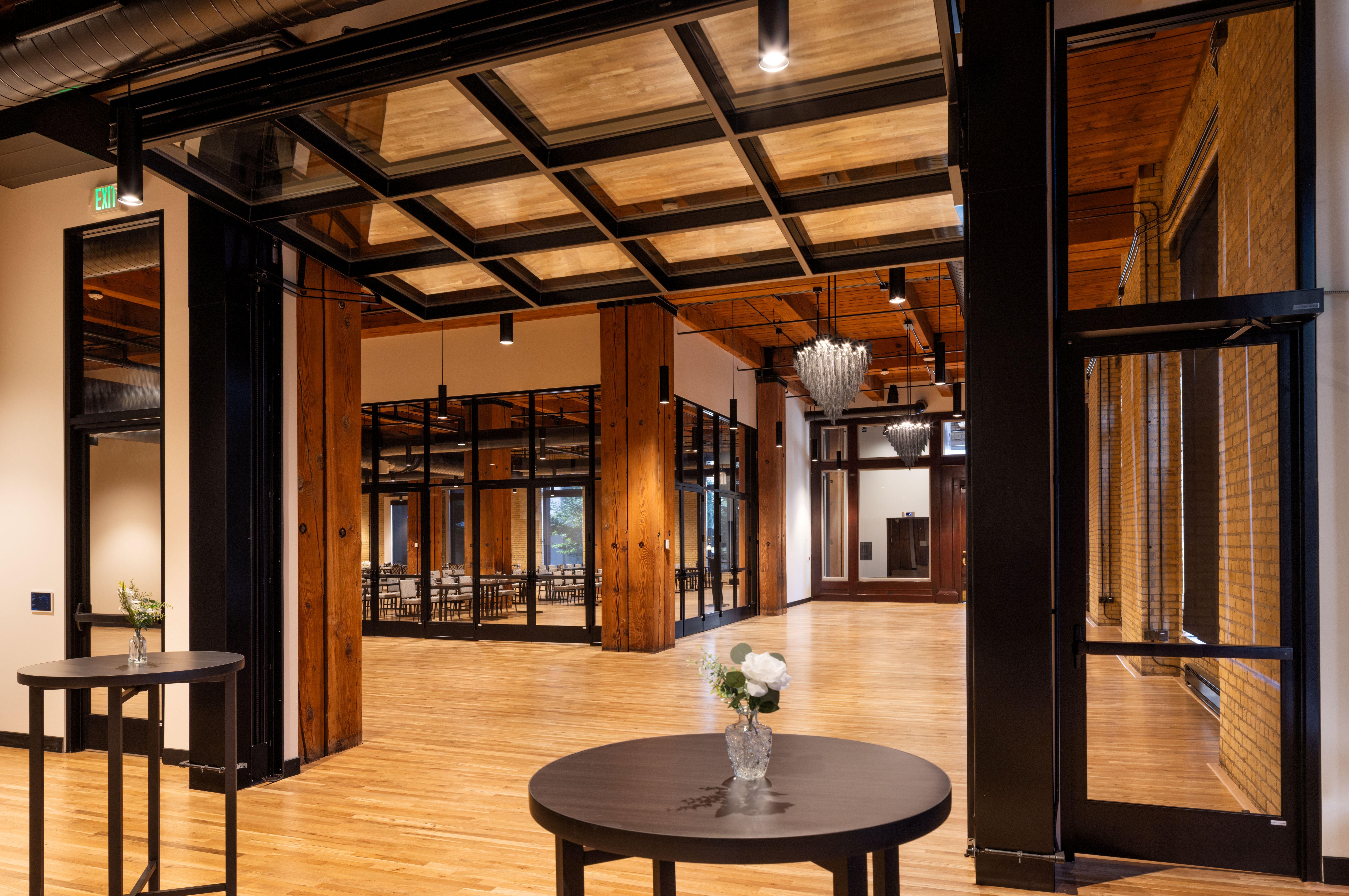 The Washington Room sits within the storied walls of the first floor of Mill District Event Spaces - a property that embodies historic architectural character. With soaring ceilings, expansive windows, and original industrial details like exposed brick and woodwork, the room reflects the building’s legacy while offering a sophisticated backdrop for modern events.