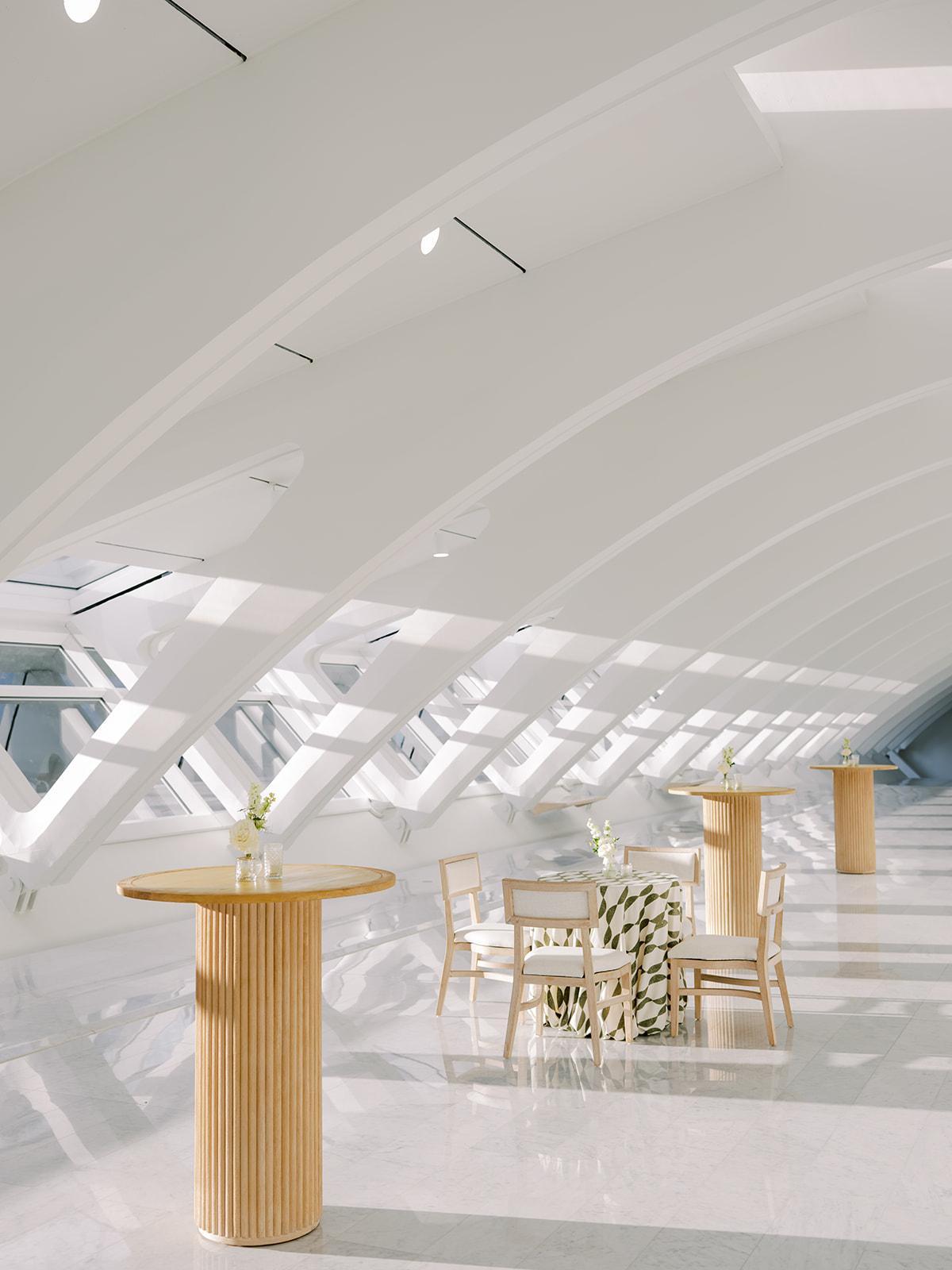 Unmatched in elegance and sophistication, the Santiago Calatrava–designed Quadracci Pavilion is a global architectural icon. Its immaculate ambiance and flawless Carrera marble floors set the stage for a truly upscale and unforgettable event. Surrounded by friends and family, celebrate your love amidst the stunning views of Lake Michigan and the majestic city skyline. Quadracci Pavillion includes Windhover Hall, Baumgartner and Schroeder Gallerias, and Baumgartner Terrace.