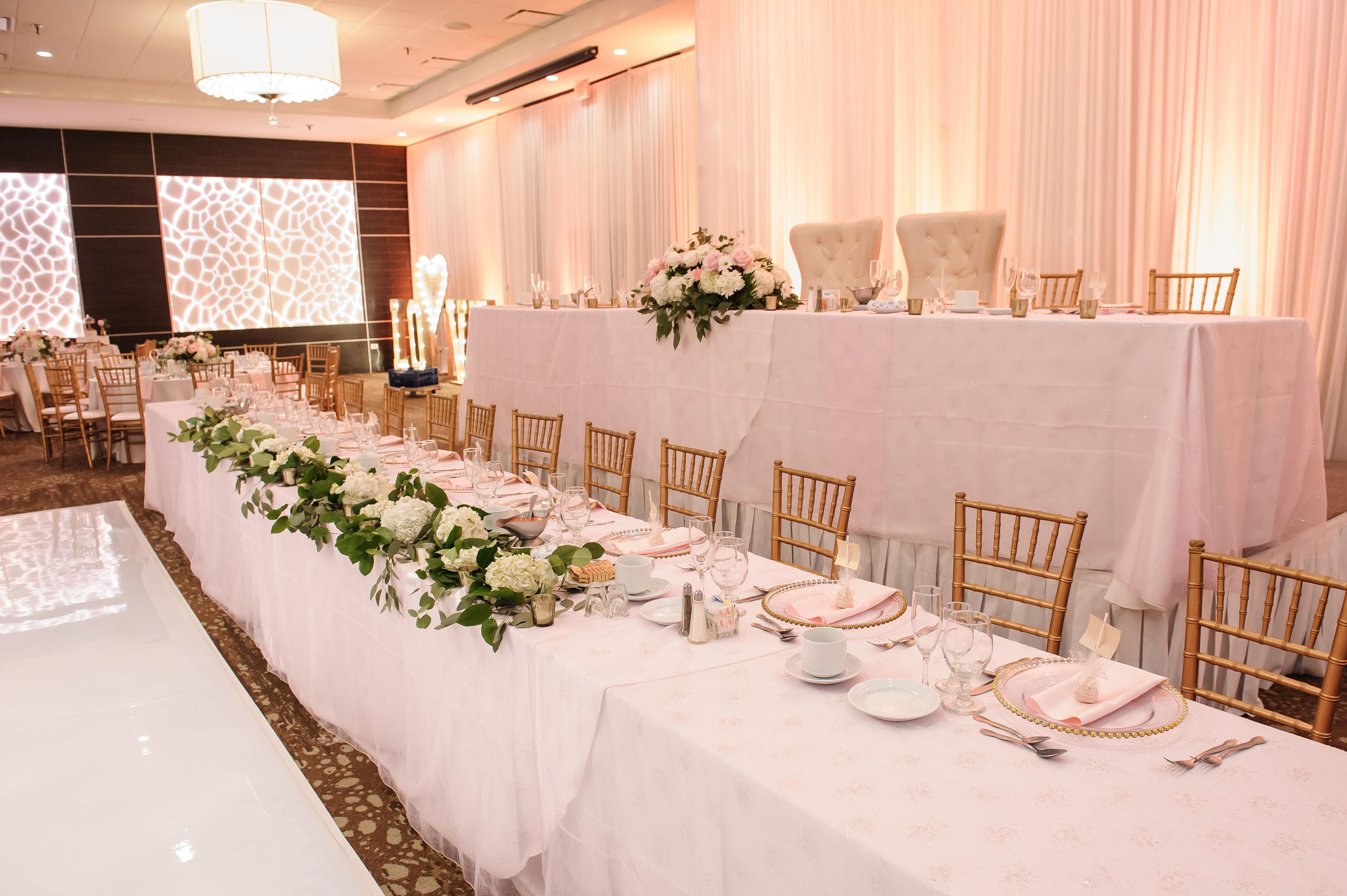 Hosted reception for 6 hours with a 5 hour open Premium bar to pair with your first hour service of butler style Hors d' Oeuvres followed by a 7 course meal service for your guests. Wedding Cake, beautiful linen selection, and glamorous centerpieces for your tables. Overnight accommodation with Champagne in room as well as complimentary breakfast in the morning. Free parking in our onsite lot offering convenience and ease for all attendees throughout your event.