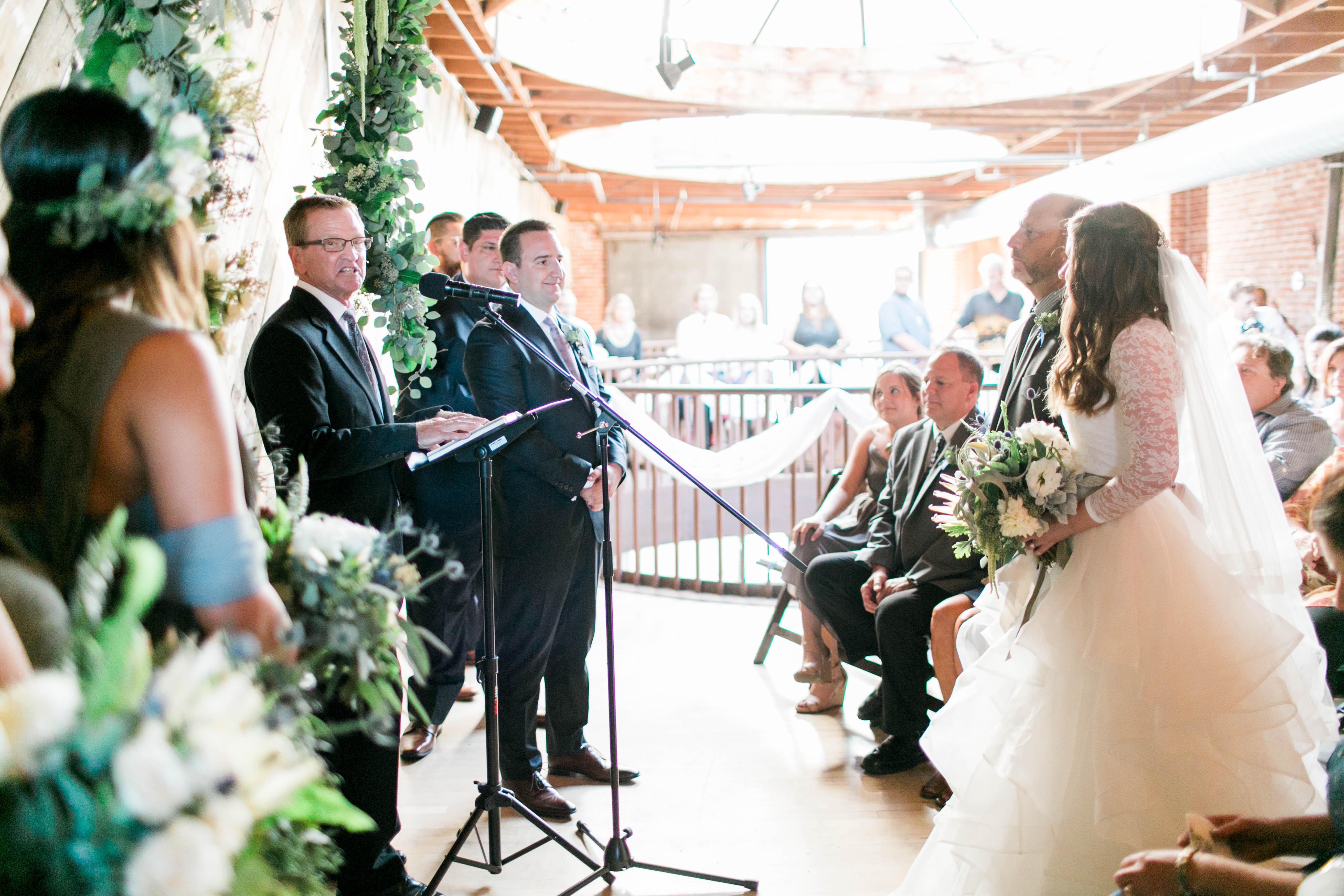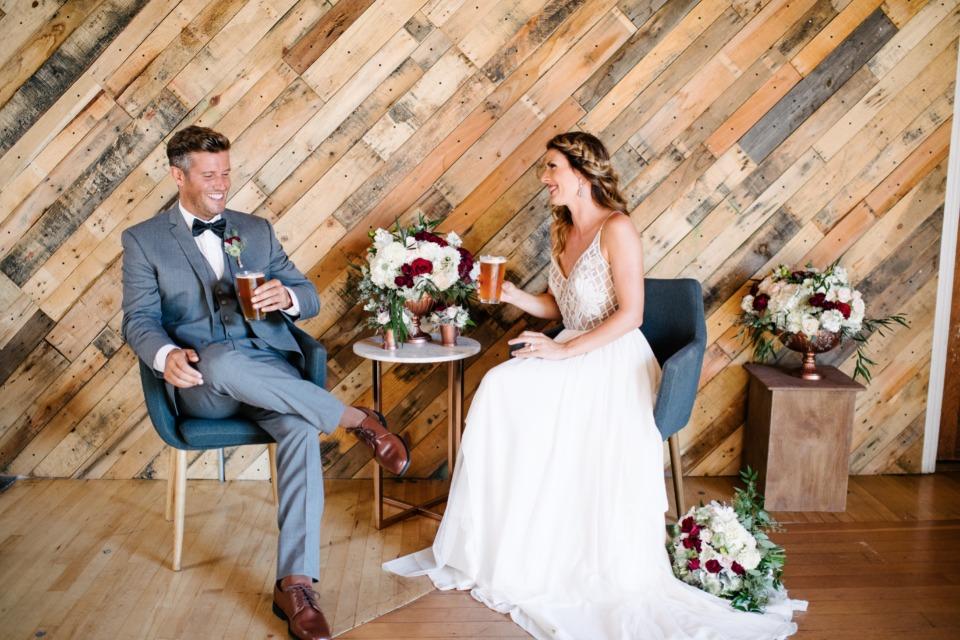 Our upper-level Loft is most appropriate for a ceremony + reception of 30-80 guests. Due to COVID, in 2020 we moved our Brewery Tasting Room into our downstairs event space permanently. You can rent the Loft, while we remain open to the public downstairs, for a very affordable room fee. We are also perfect for a reception only, rehearsal dinner, engagement parties, etc. We do allow for full buyouts (up to 200 guests).
