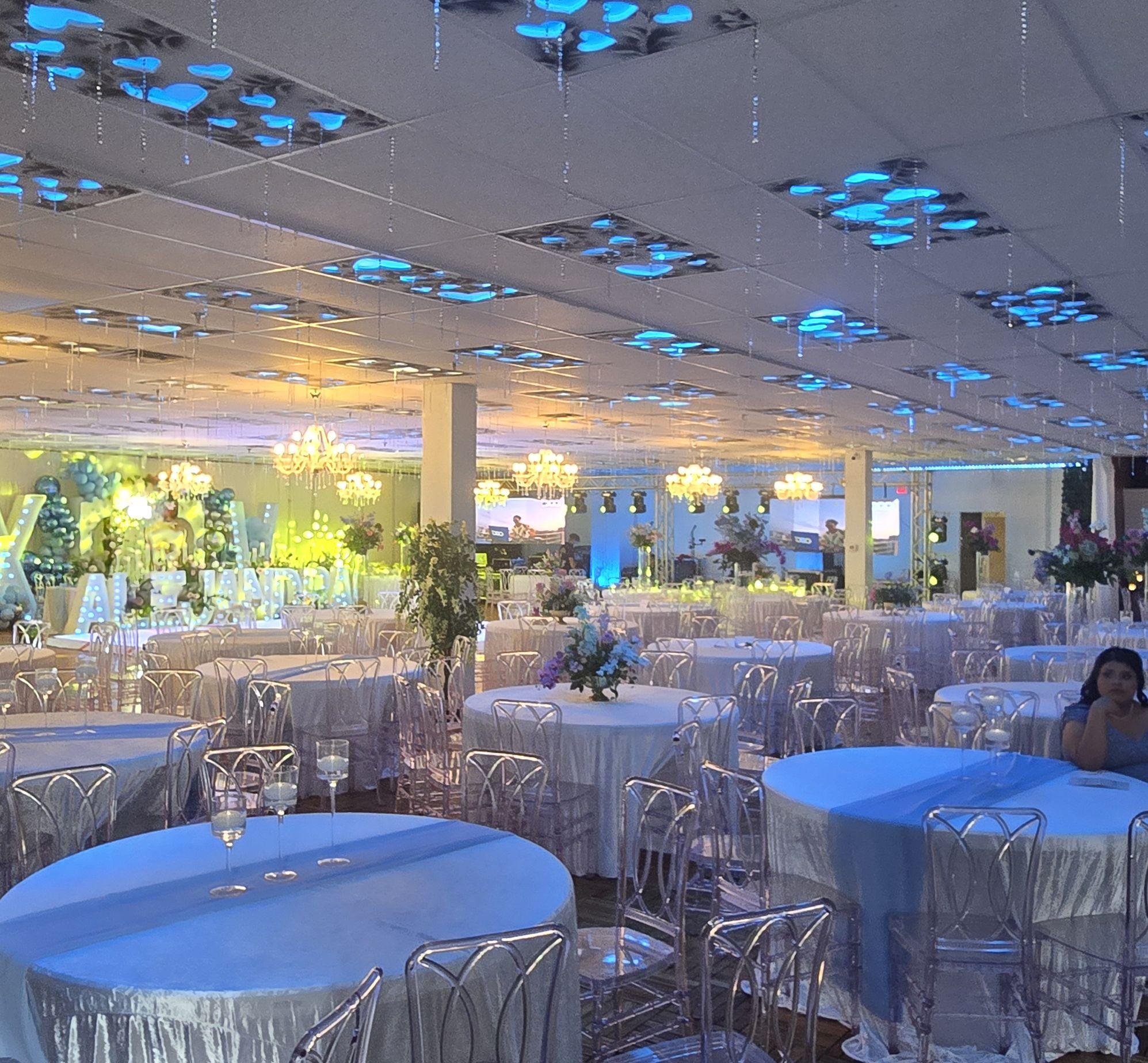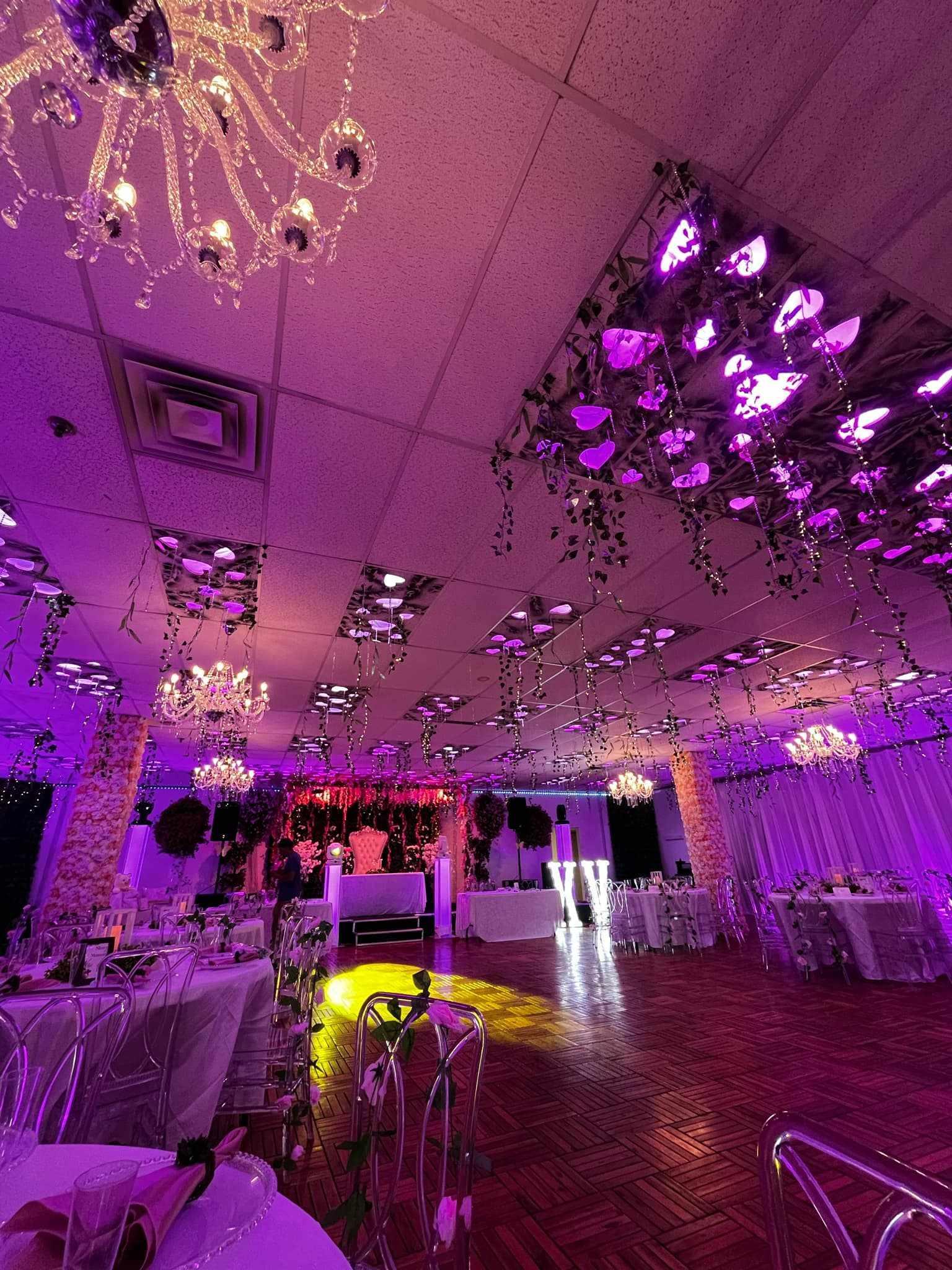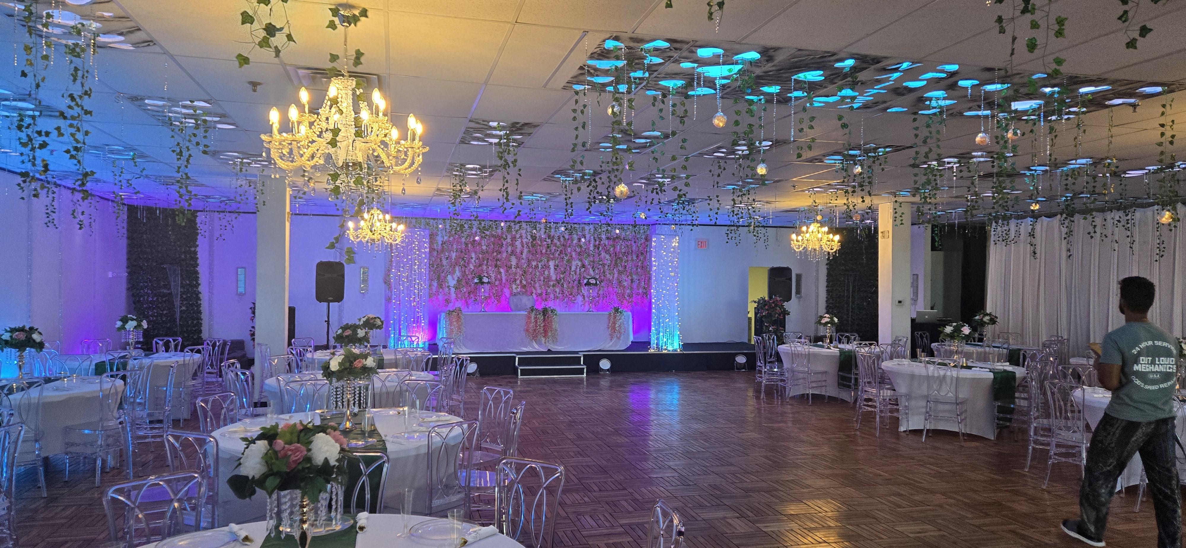 We were voted in the top 3 fanciest halls in Wisconsin. Some of our unique features (not found anywhere else in the midwest!) include a 50ft outdoor arch, in-ceiling customizable tiles, decorative pool, waterfalls, fountains, $170,000 custom ceiling with lighting system, Acacia wood floors, 1500ft dance floor, and much more! We have over 1300 decorative options.