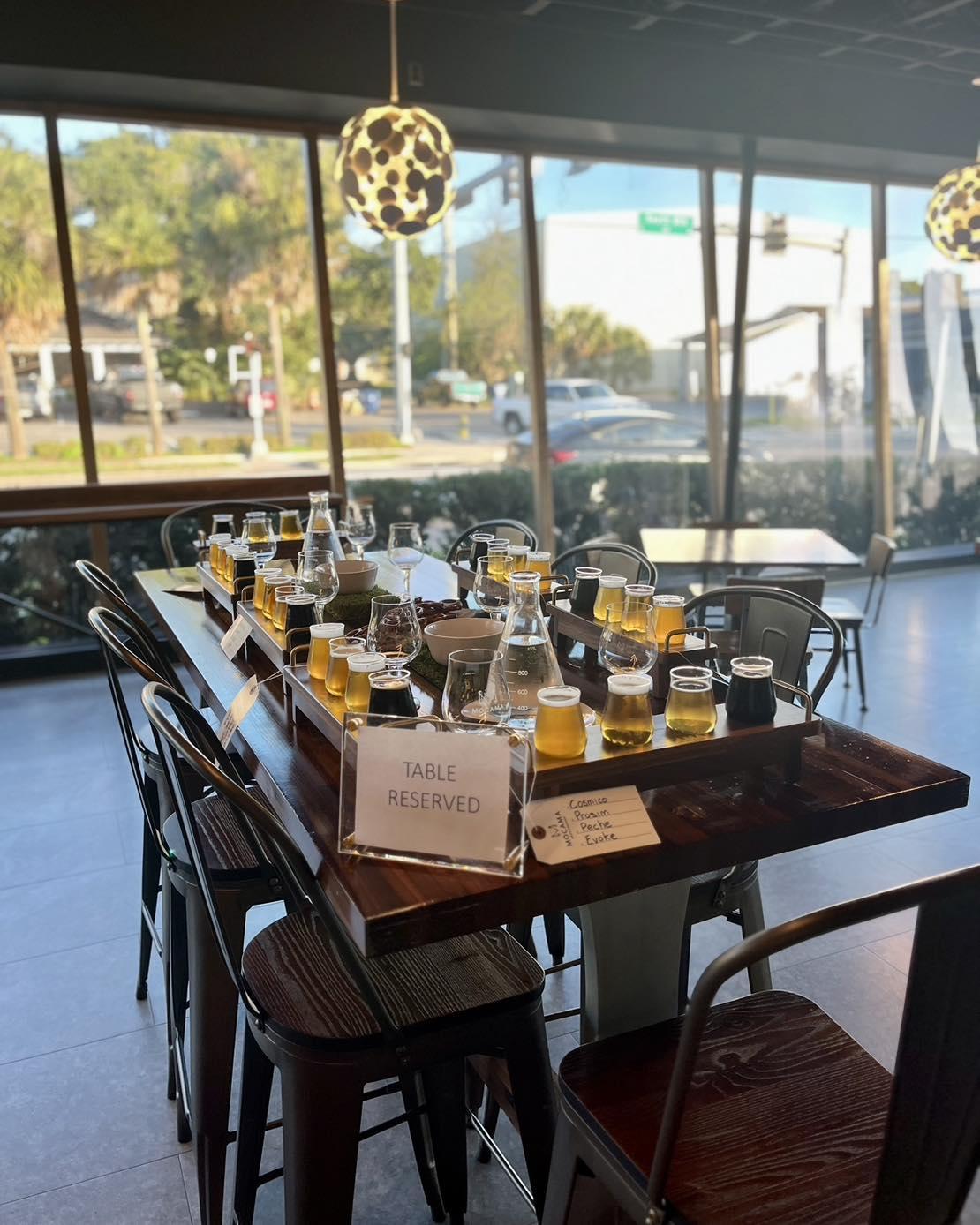 Mocama Beer Company offers an experience curated for seekers, blending classic design, future vision, and attention to detail in everything we do. Finding beauty in the pursuit of perfection, our goal is to engage the senses while creating opportunities for connection. Founded by four friends, Mocama Beer Company was born out of a shared desire to brew distinctive beers in a unique space on Amelia Island. We found home a few blocks from historic downtown Fernandina Beach in the former Lasserre Motor Company building. Originally constructed in 1954, the 18,000 square foot building has been transformed into an elegant mid-century taproom. Nowhere else on Amelia Island can you celebrate, entertain, and dine in such a comfortable, uniquely crafted setting. Designed to host a wide variety of events, including weddings, parties, live music, showers, receptions, dinners, and presentations, we accept reservations for parties of up to 200.