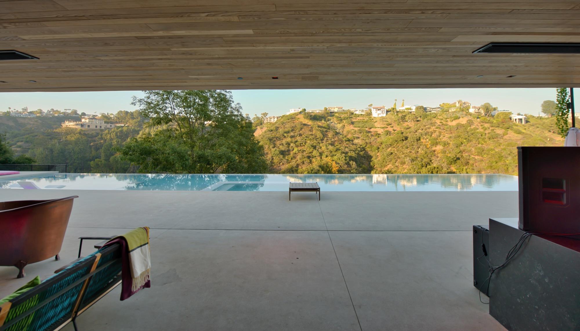Chic pavilion and infinity pool with panoramic canyon-to-city views