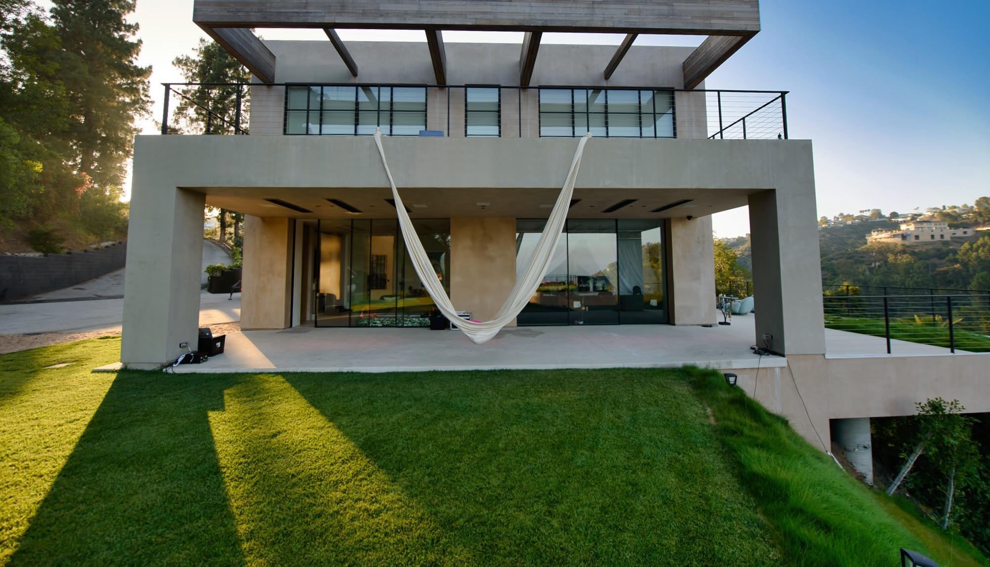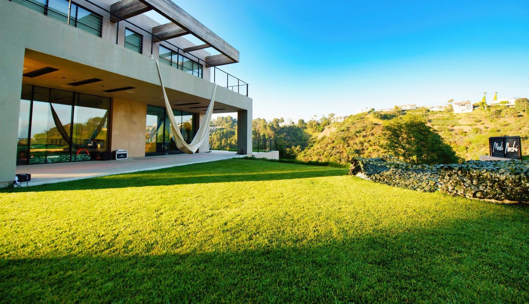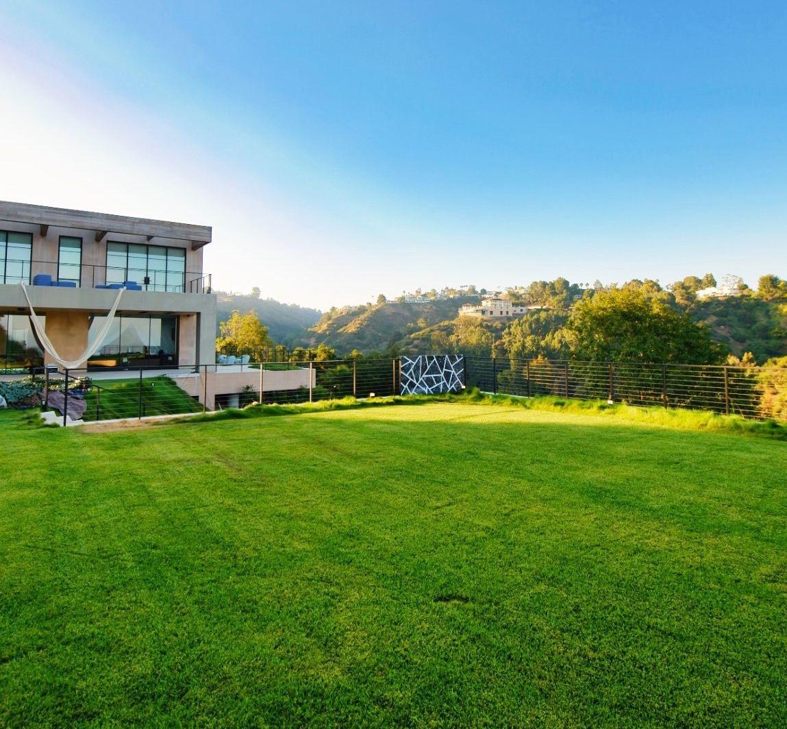 A beautifully manicured, open green lawn framed by sweeping canyon views—perfect for ceremonies, outdoor dining, or sunset cocktails. The expansive space offers a serene, natural setting while still feeling connected to the home’s modern architecture, making it an ideal canvas for everything from elegant floral arches to vibrant lounge setups.