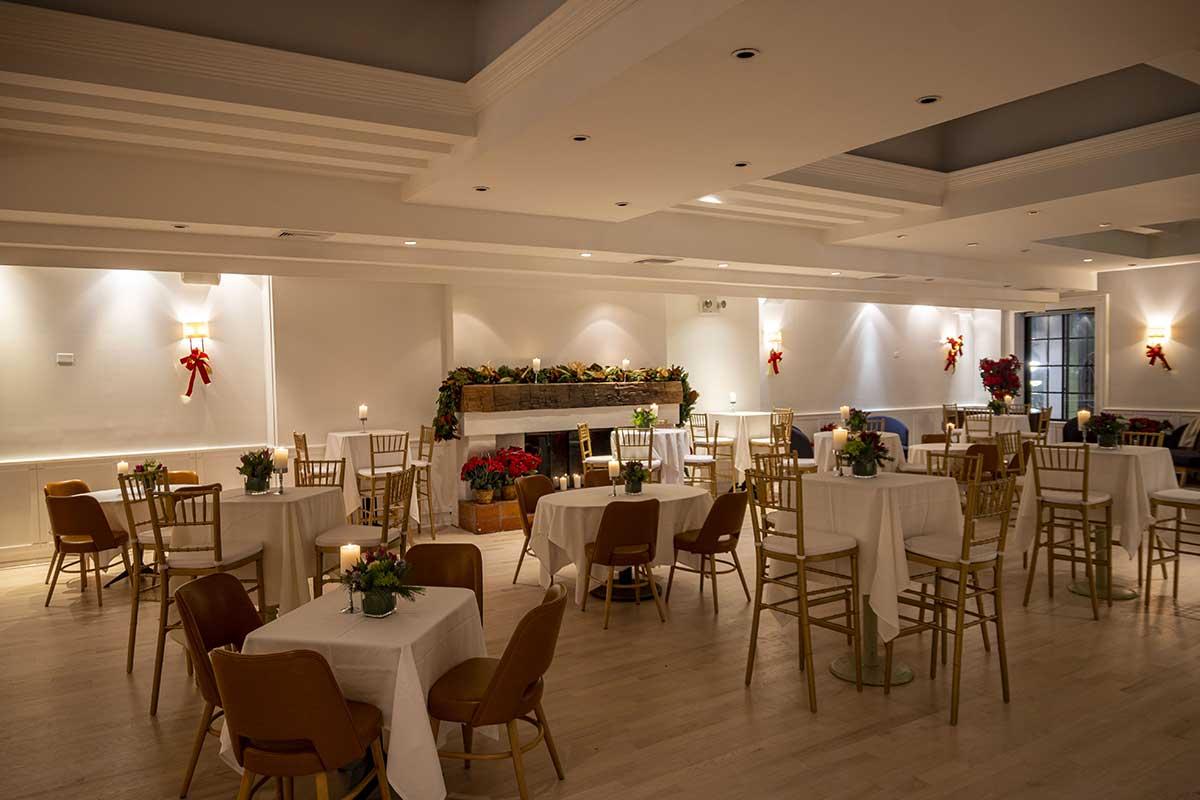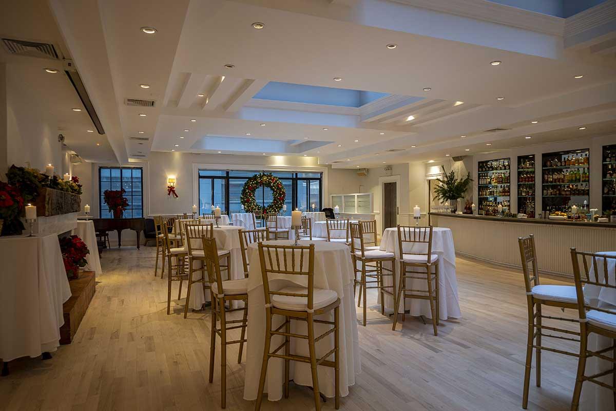 Our largest private dining room located on the third floor accessible via private elevator or by stairs. This room has a fully stocked bar, state-of-the-art audio-visual capabilities, private bathrooms, and a dedicated kitchen.