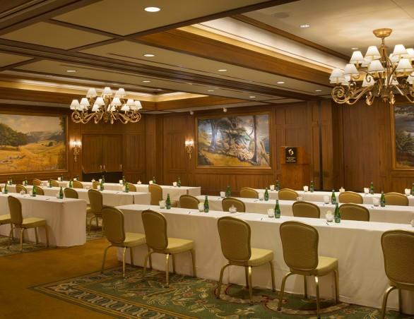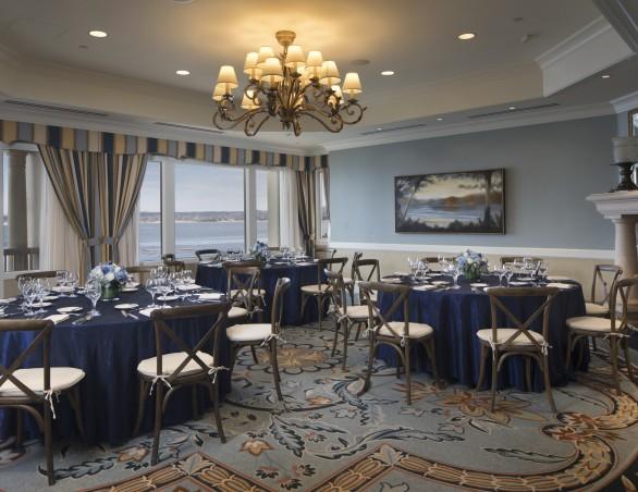 With Brazilian teakwood, sprawling chandeliers and hand-painted murals illustrating the local Monterey and Carmel scenery, the Cypress Room is formal, elegant and grand.
