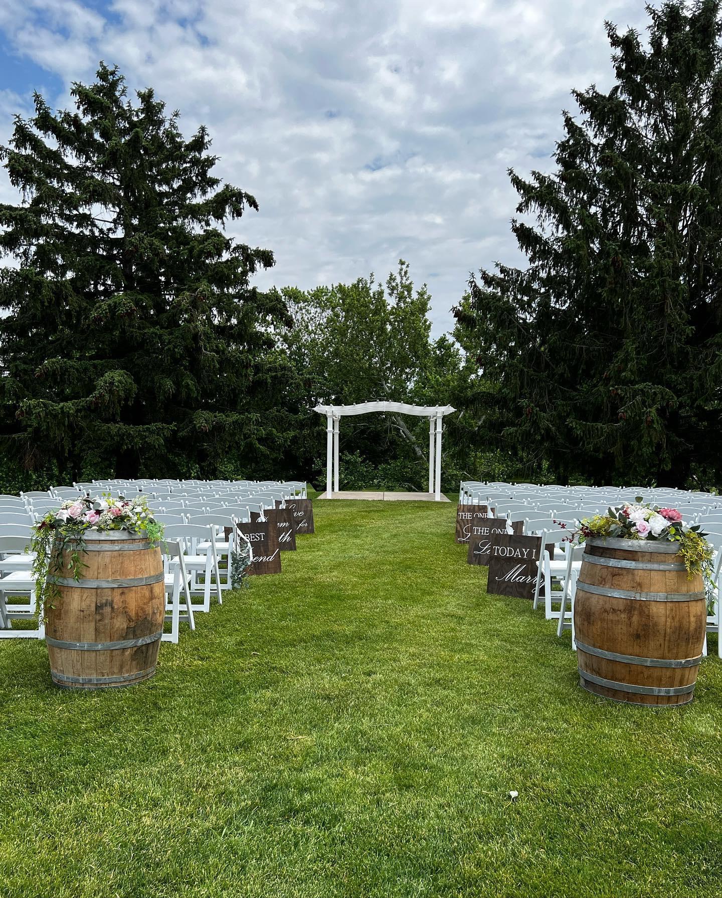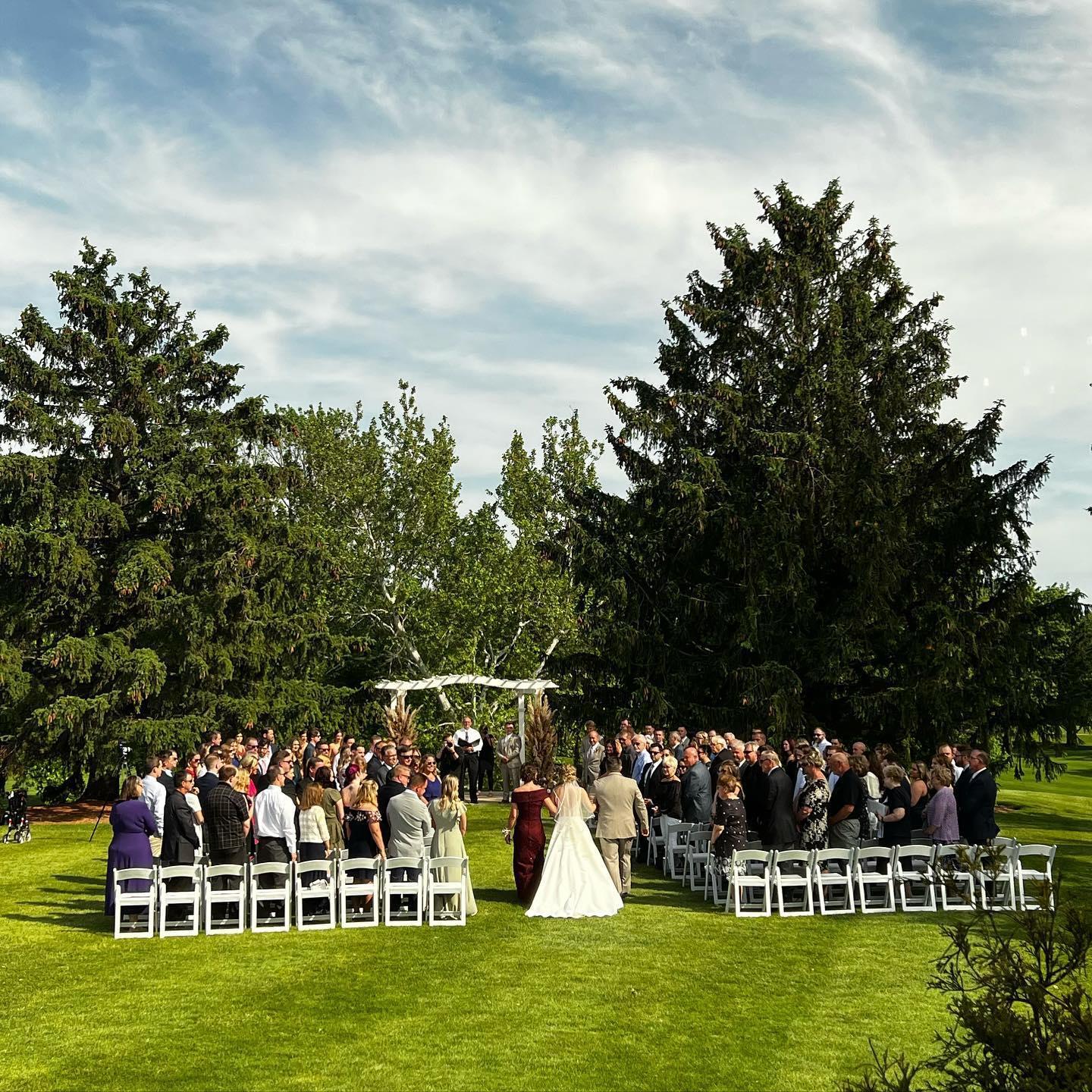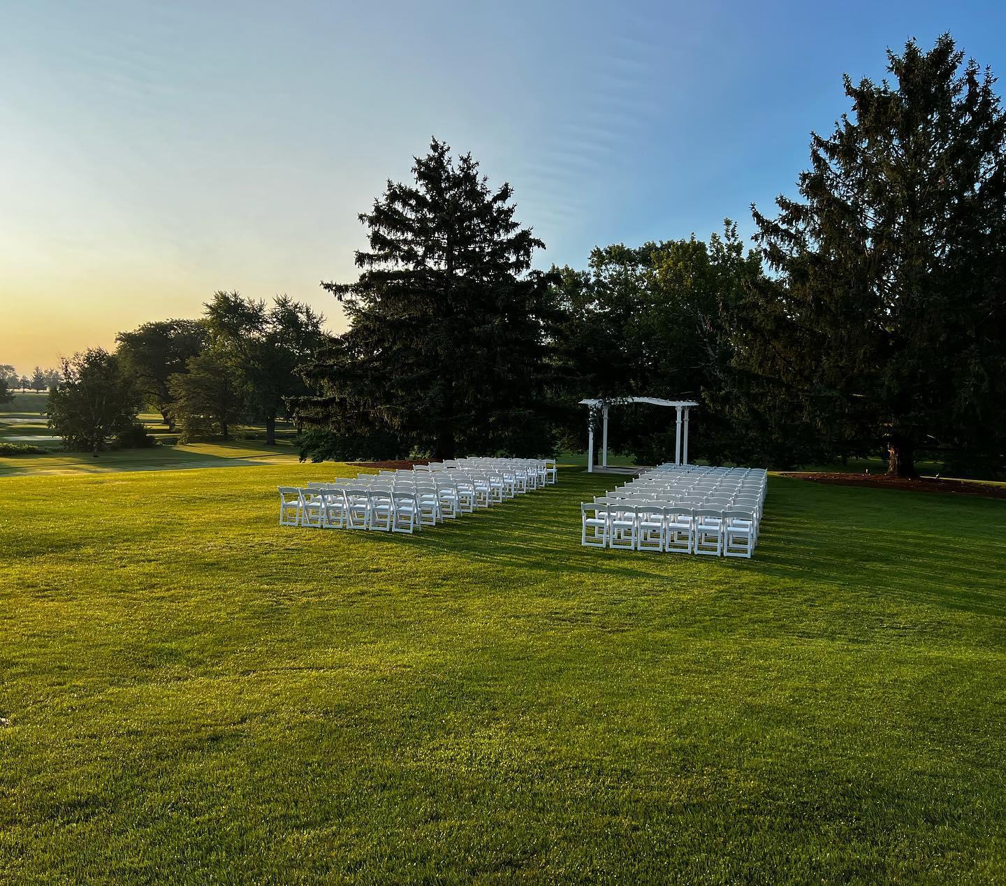 Say your vows in our backyard overlooking our breathtaking golf course. Seating for 150 included in the site rental. Additional chairs can be rented.