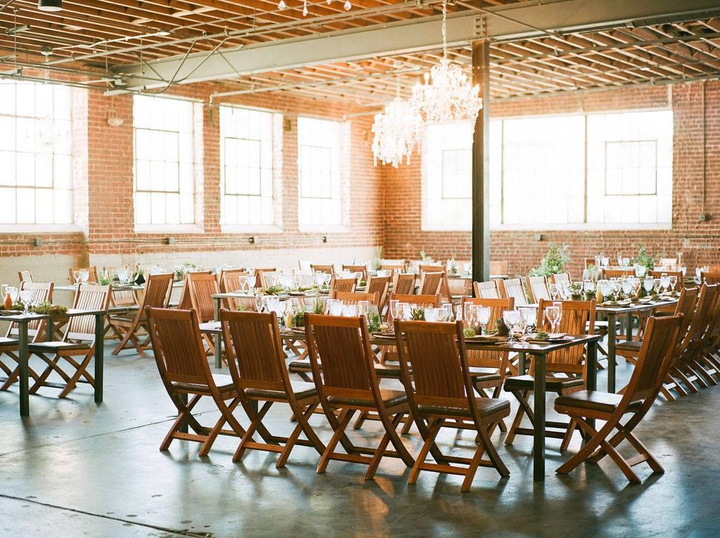 In the Chandelier Room, the back white wall becomes the perfect backdrop for a ceremony, to project images on, or to highlight floral and décor elements of your event. Featured throughout the building are windows, iconic to the Santa Fe Art District and original in style to the 1936 build, that allow natural light to stream through the spaces.