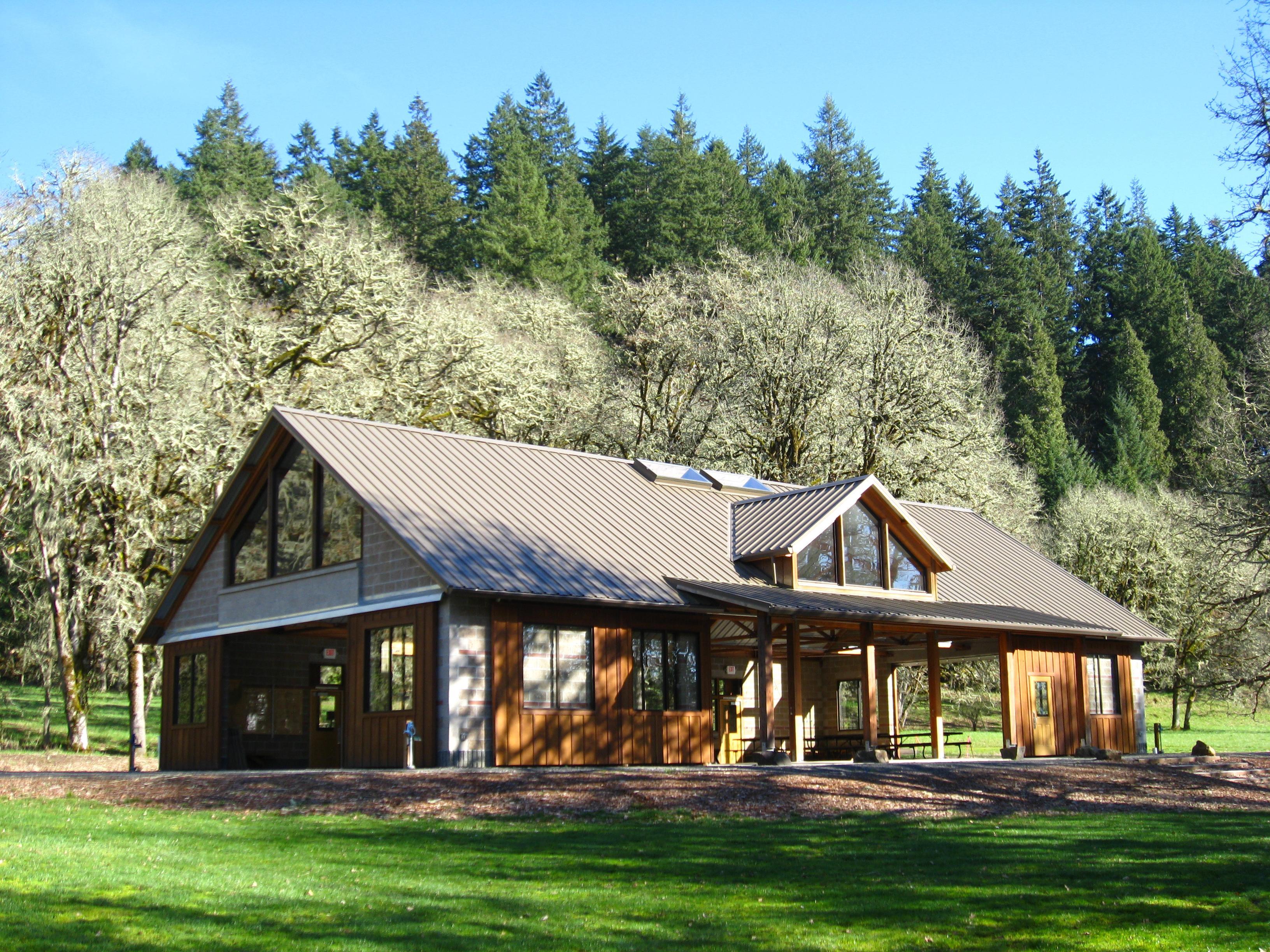 Mount Pisgah Arboretum’s beautiful White Oak Pavilion is a 3,000 sqft building with large wooden glassed-in sliding doors that open on all sides to reveal the peaceful scenery and oak savannah landscapes of the Arboretum. The building is easily accessible to caterers, musicians, and guests. Photo opportunities at the Arboretum include our vast Oak Savannah, the Great Meadows, large canopied forests, a lovely sandy beach along the Coast Fork River, the beautiful Adkison Footbridge in our Water Garden, our vintage, photogenic barn and over 200 acres of majestic trees, paths and nature. The Arboretum is a non-profit organization and our main mission is education. Your wedding rental fee goes directly into our children's education program. This helps the Arboretum bring out over 3,000 school children each year to discover nature on our guided field trips. This park is open to the public 365 days a year.