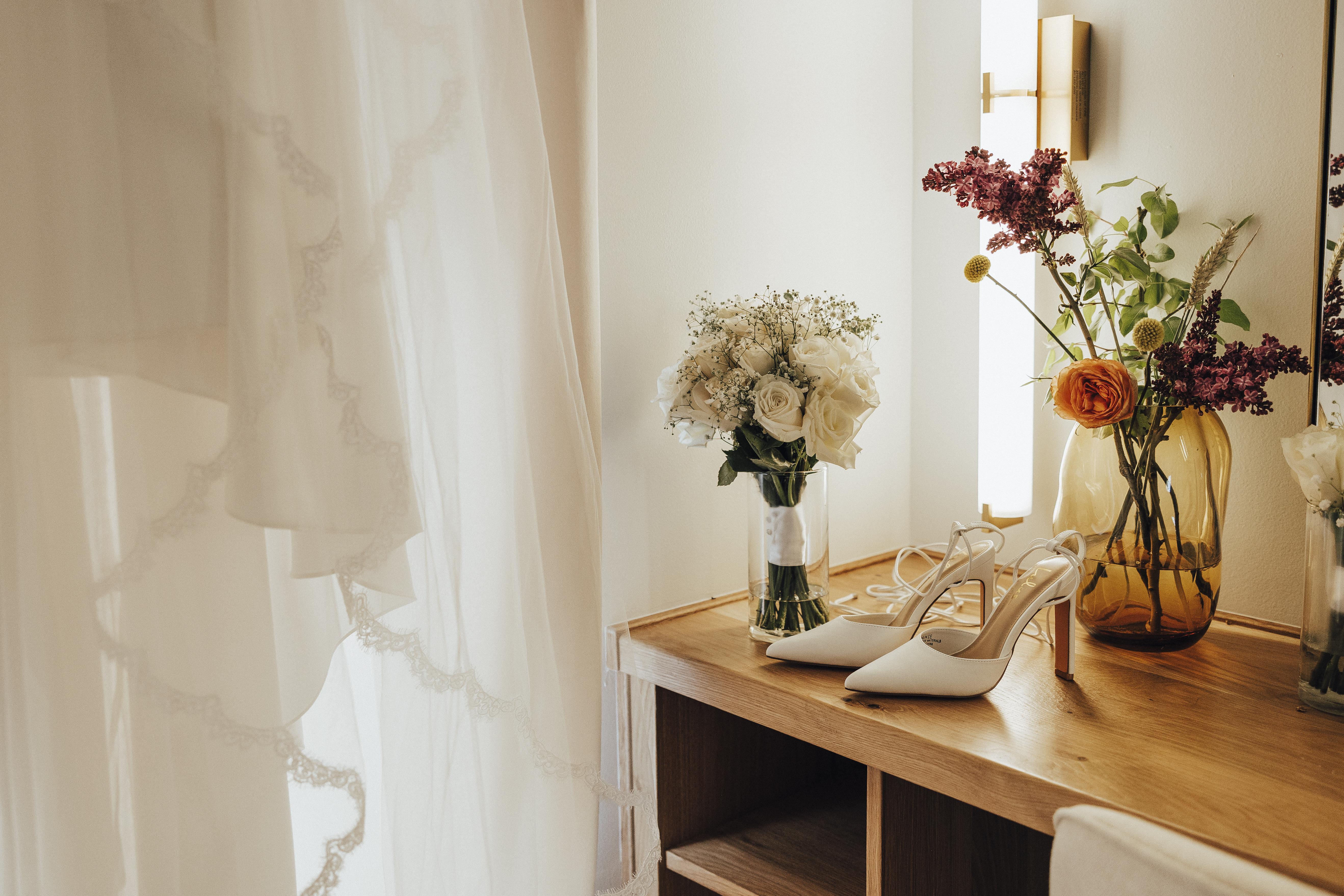 The Love Shack is our brand new sexy getting ready space! With 3 vanities, a bathroom, Juliette balcony, fully stocked wet bar, and the comfiest couch you'll ever sit on, you can hang here all morning prior to your ceremony!