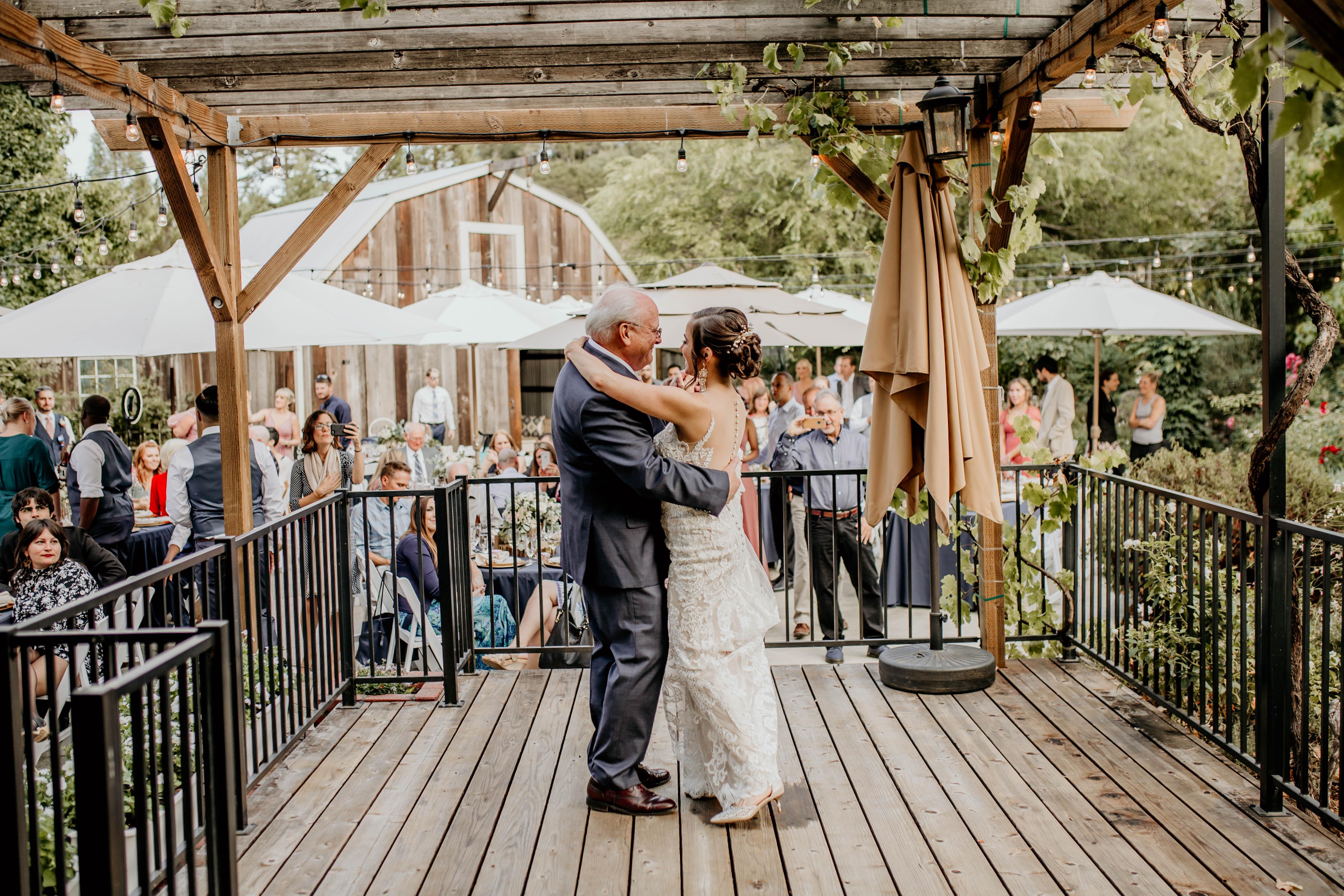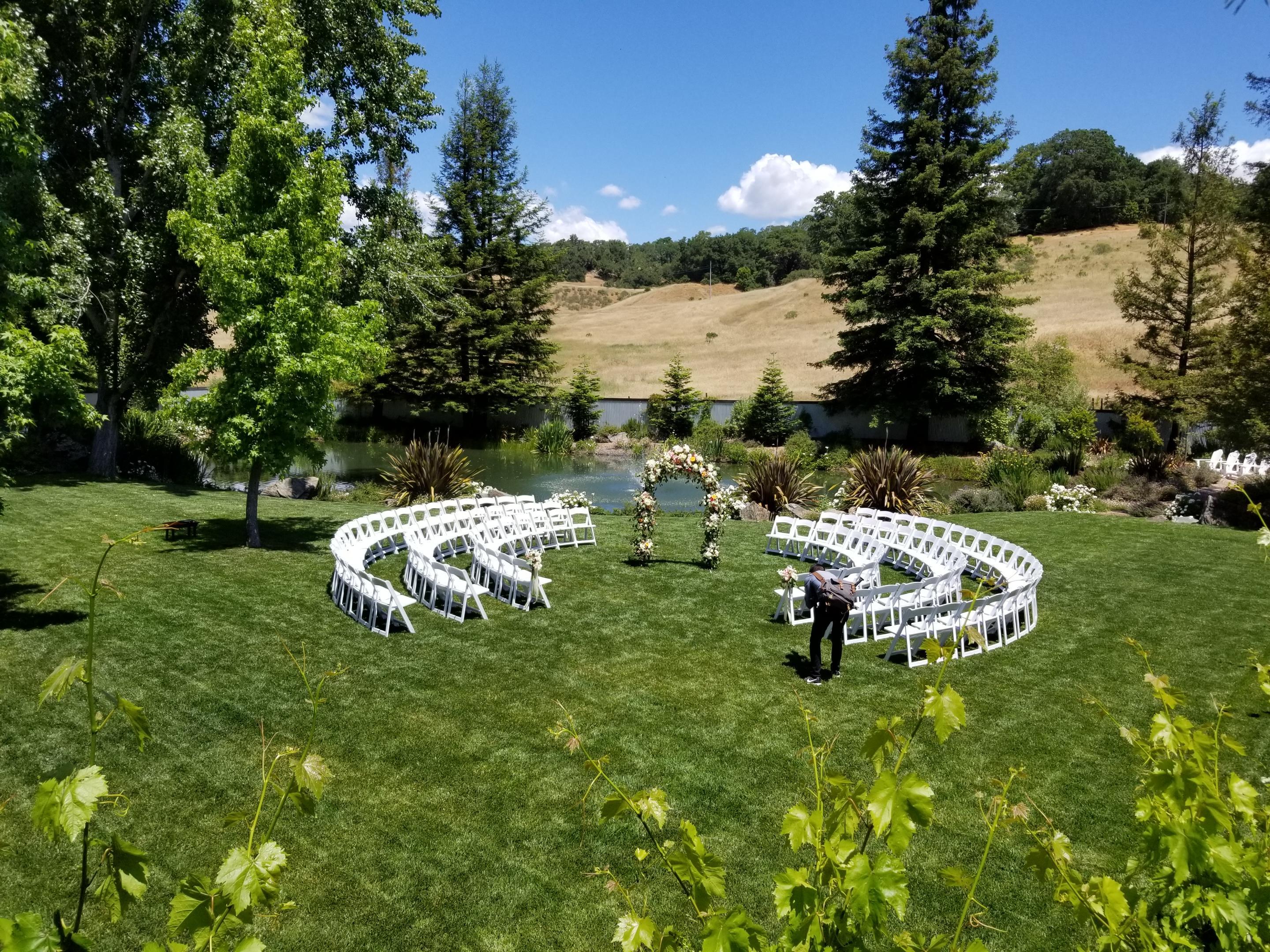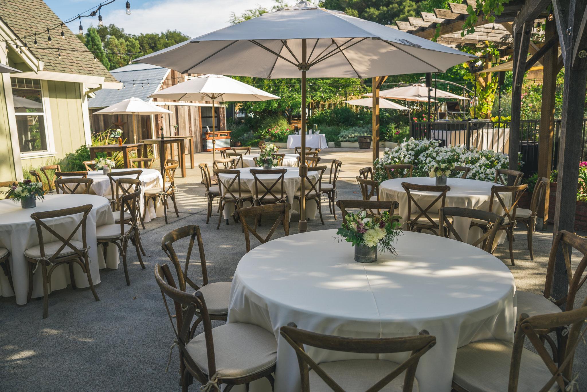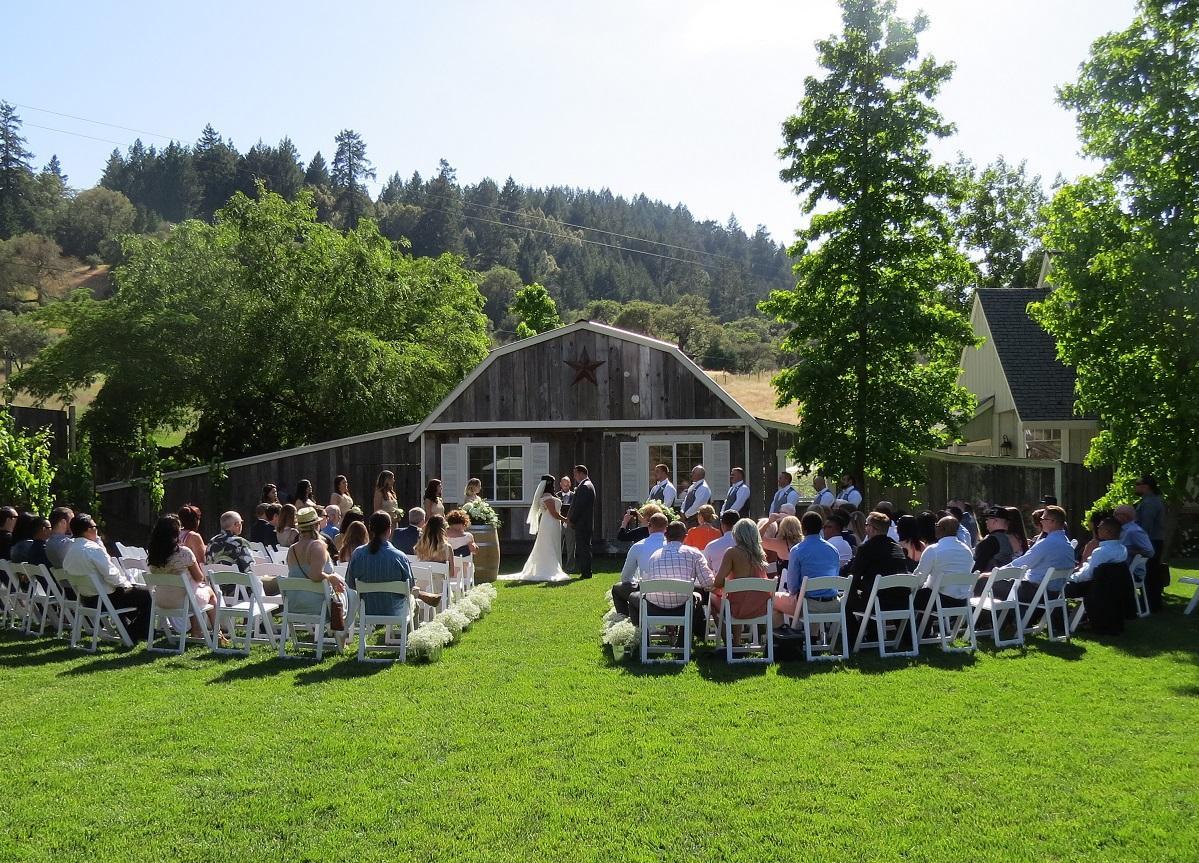 Versatility! Our passion is for you to have the wedding YOU want, so we've made that easy. You will have exclusive use of the entire venue on your wedding day with up to 6-hours of prep time and 6-hours for your event. Want to party later? We offer late hours until 2am if your heart desires. Enjoy your ceremony on the lawn with the pond as your backdrop, the redwood trees or the barn. Do you prefer the patio? The bandstand provides a perfect ceremony backdrop. Inside? Sure! Or, at Oak Tree Terrace with its stadium seating between two ancient oaks. Dinner on the lawn or patio with up to 250 during mild weather is awesome! The interior can seat up to 125 at tables for other times of the year. Enjoy dancing on the patio or in the ballroom. Both are great options. The bar - absolutely gorgeous - is inside, next to the ballroom. We have fabulous prep rooms - 1 included in every package but you can add on two more!