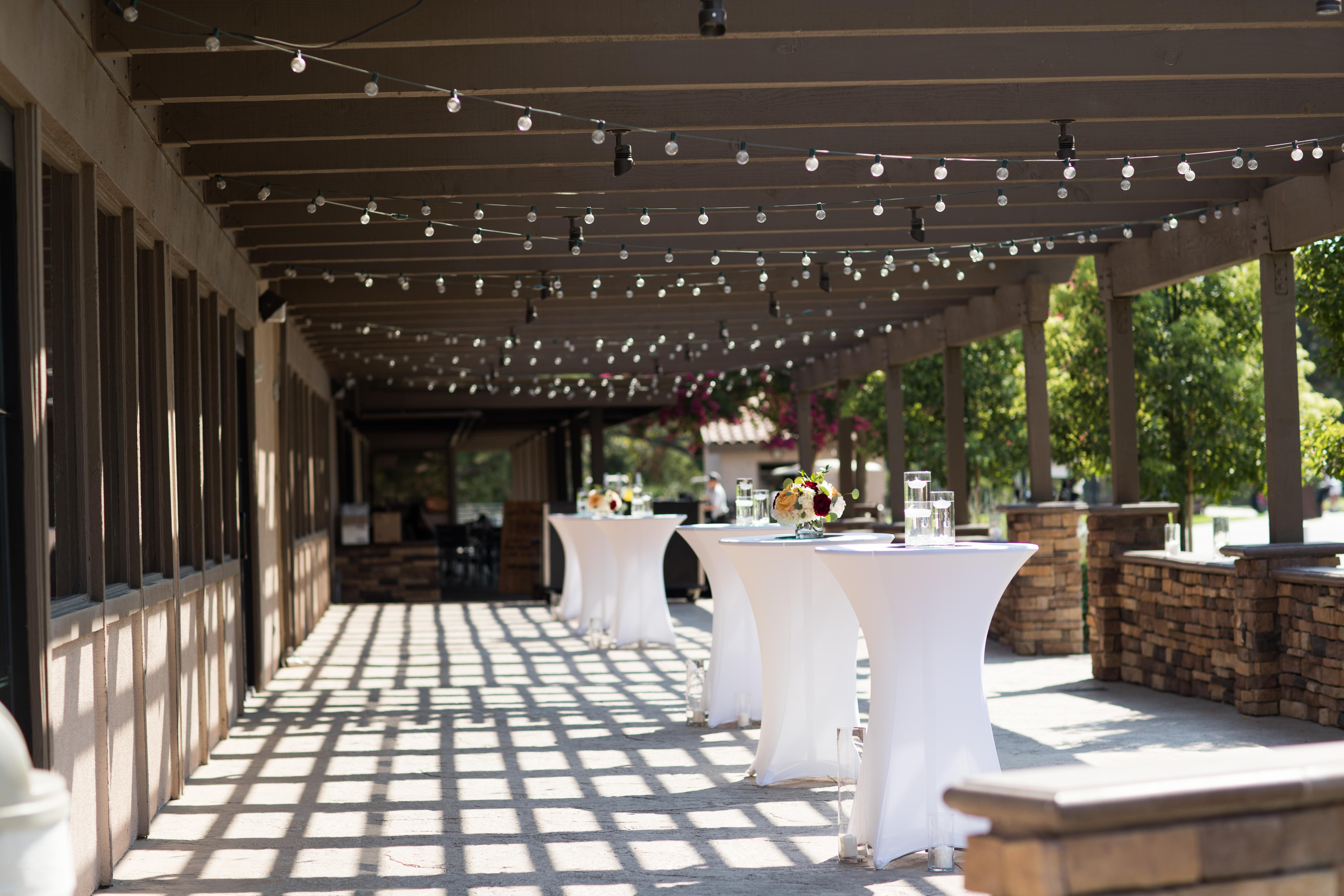 An elegant gazebo surrounded by colorful, blossoming flowers and majestic trees provides a charming outdoor location for weddings. Your guests will be seated near an impeccably manicured putting green where spotless, white chairs and an aisle runner complete the scene. Just steps away is the equally beautiful banquet room. Strategically located at the far end of the clubhouse with it’s own entrance, the space accommodates up to 320 guests with its high open-beam ceilings and adjoining veranda. A wall of windows fills the room with natural light and provides guests with appealing views of the lush landscaping outside. At night, the room is decorated with sparkling lights intertwined with tulle, to create a soft, romantic glow for your wedding reception. Our premier event facilities are complemented by our experienced team of on-site catering and event specialists available to help you plan and host your event.