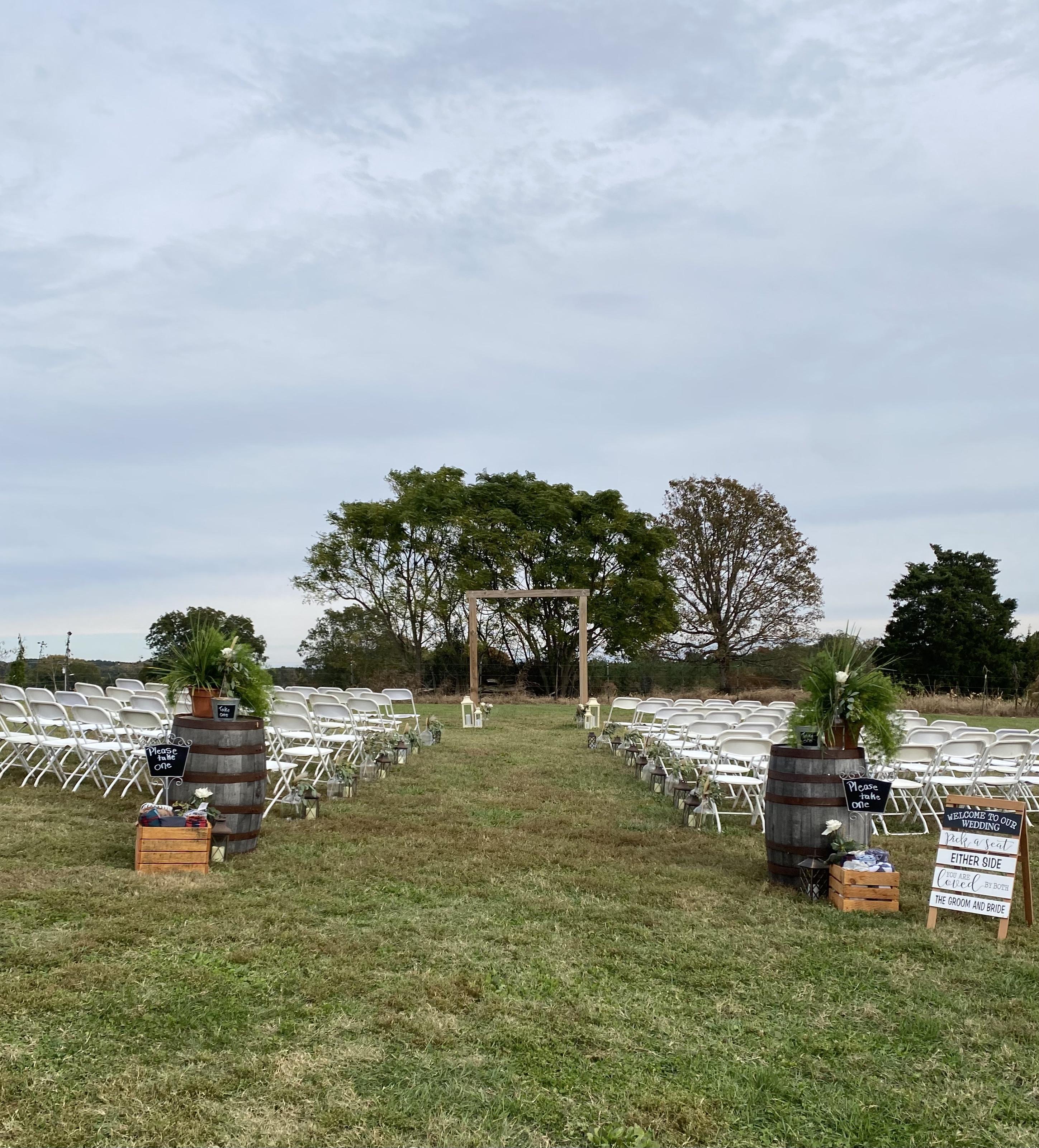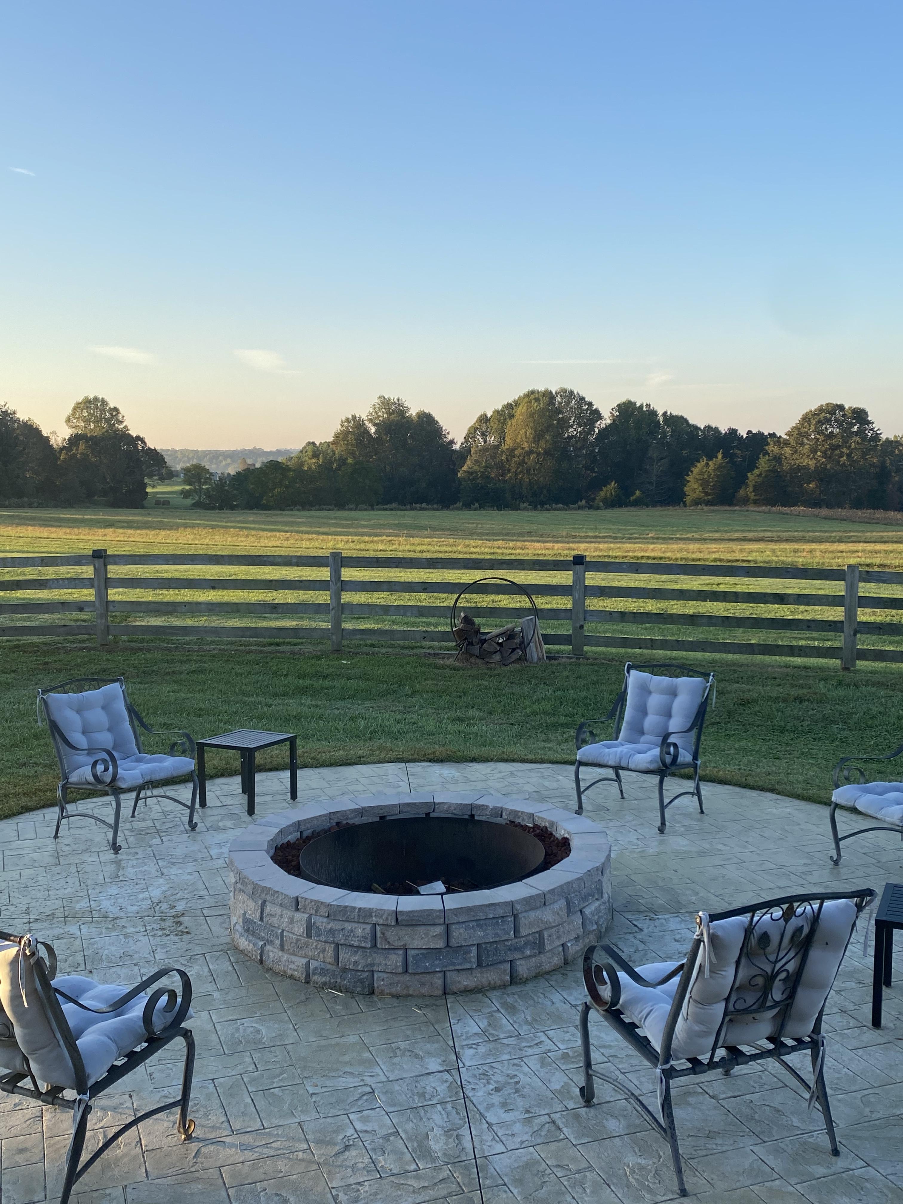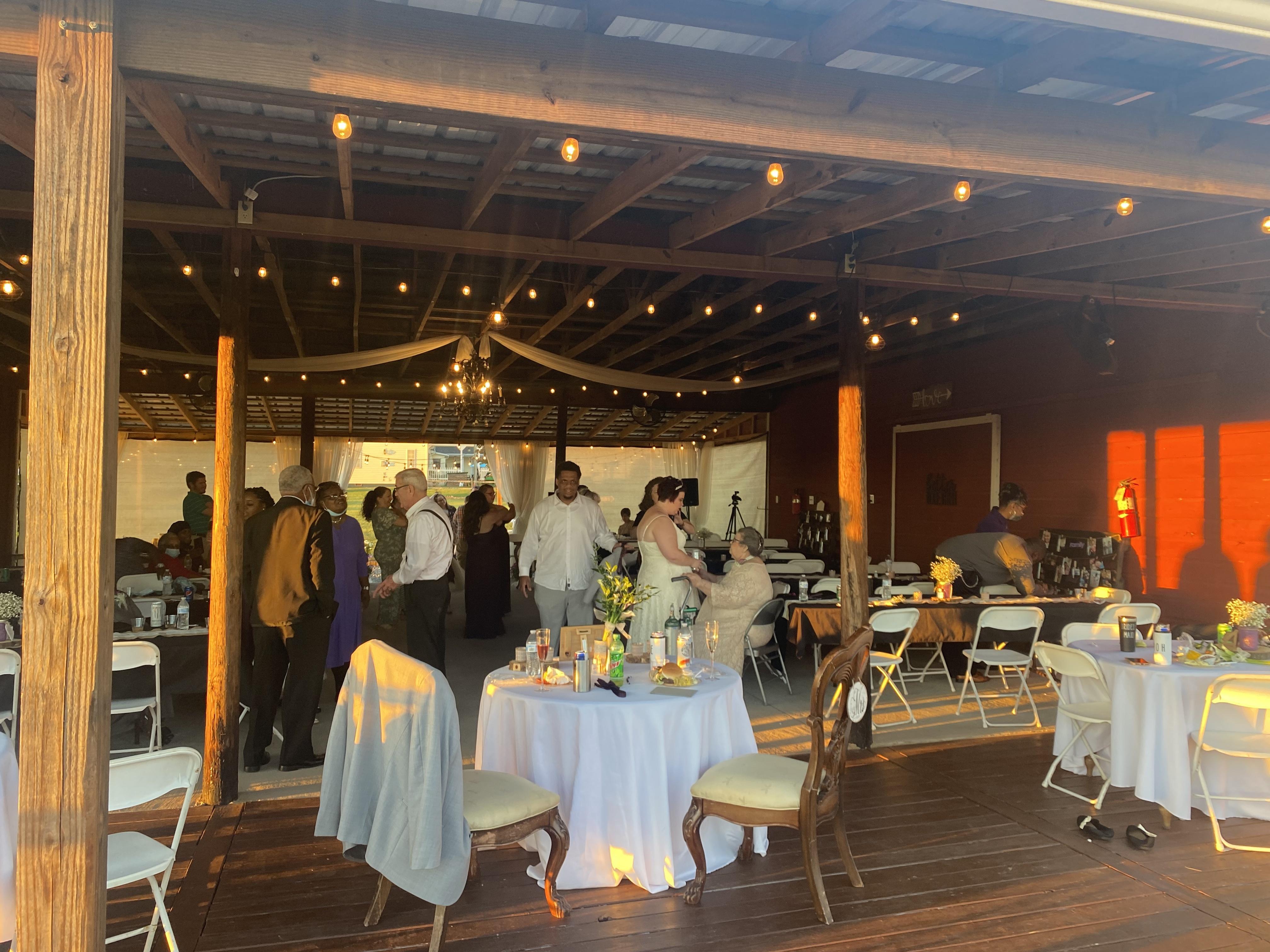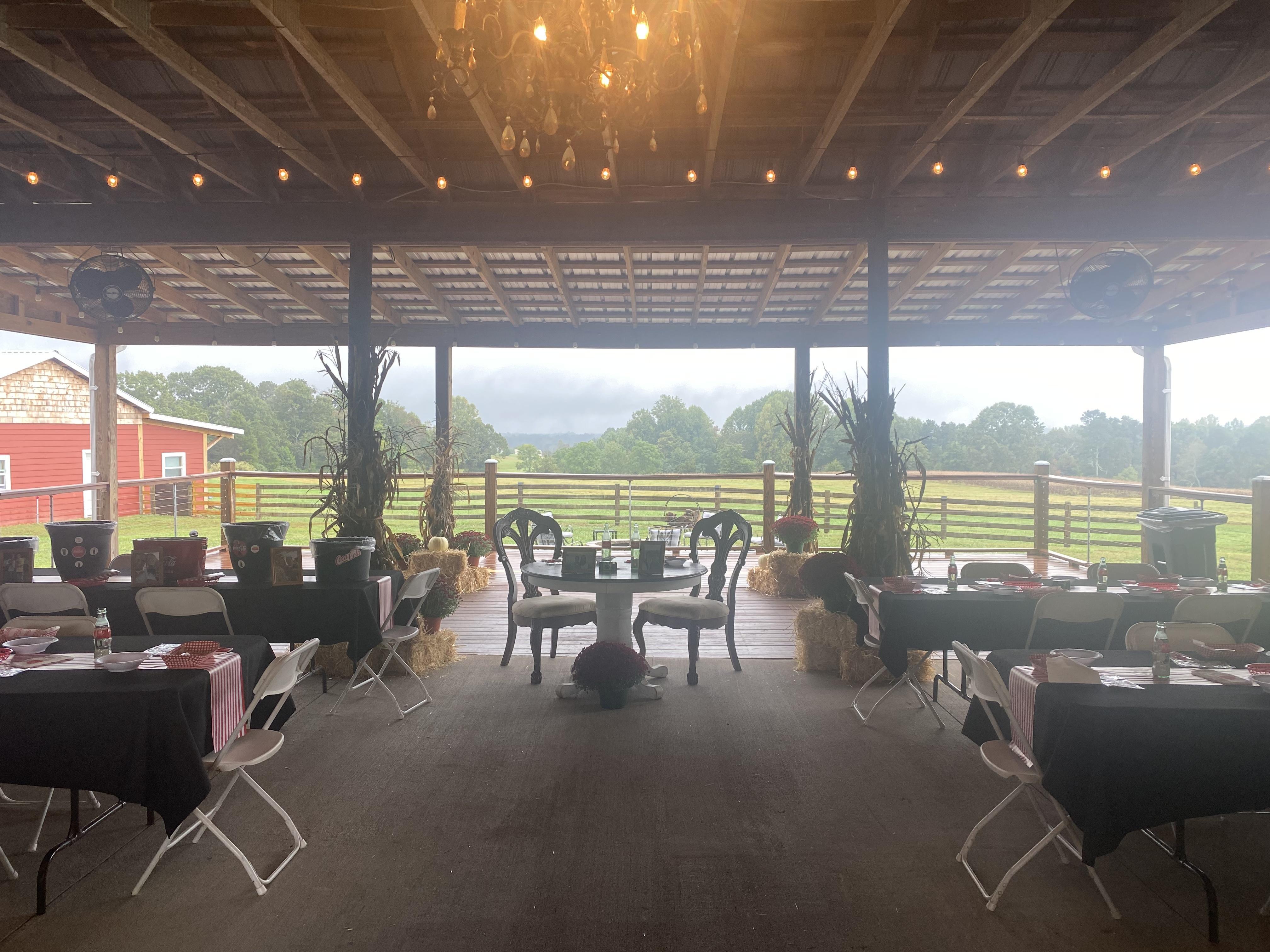 We are a small to medium sized barn venue. The authentic circa 1950 cattle barn and reception pavilion have been renovated into a useable, rustic, yet charming facility for weddings, vow renewals, showers, retirement parties, anniversary parties, etc. We opened in 2017 and have received Cleveland County’s Best of the Best Wedding Venue Award from the Shelby Star each year since that time. We have three ceremony sites to choose from: inside the barn, on the front lawn of the barn (weather permitting), and on the lawn slightly south of the barn (weather permitting). We also have had ceremonies inside the reception pavilion. The panoramic view from the reception pavilion deck is a favorite spot for photos and gatherings. This area overlooks the firepit, as well as the highly photographed views of the gorgeous sunsets.